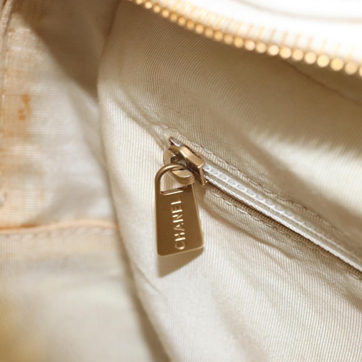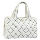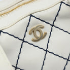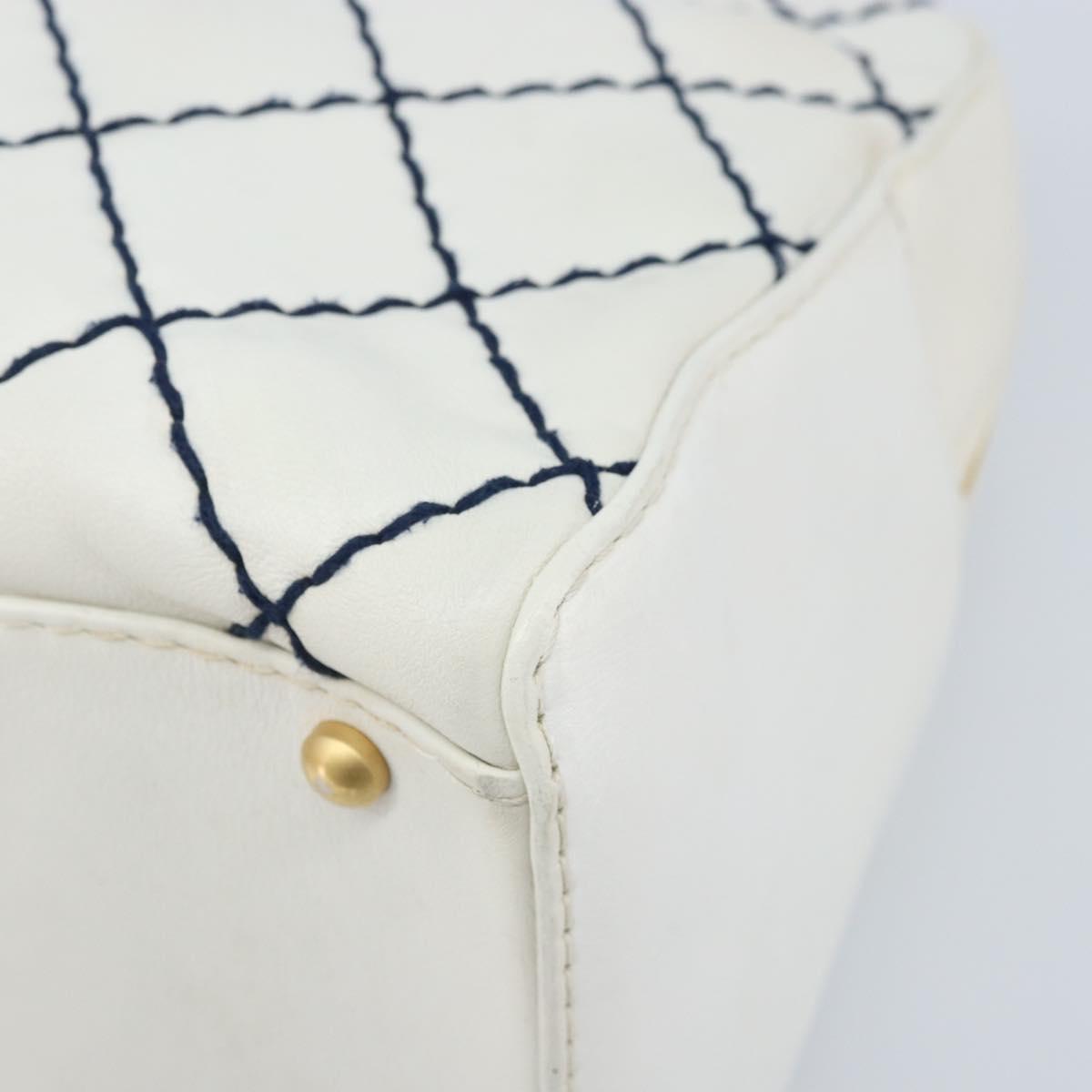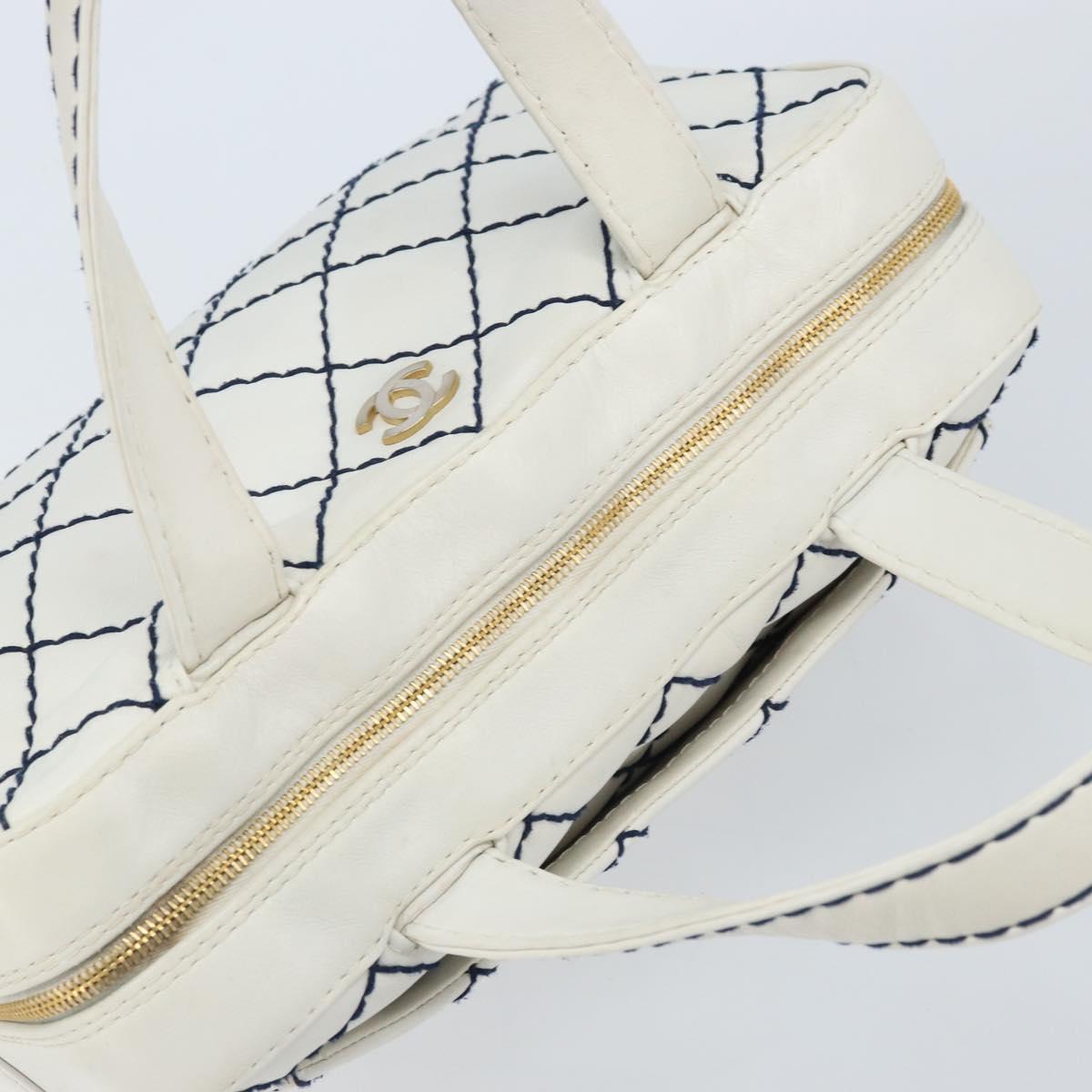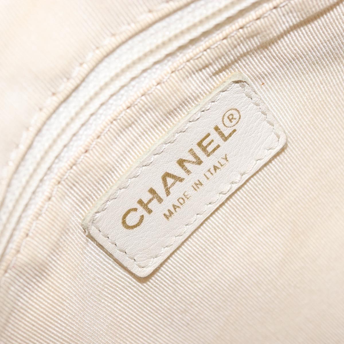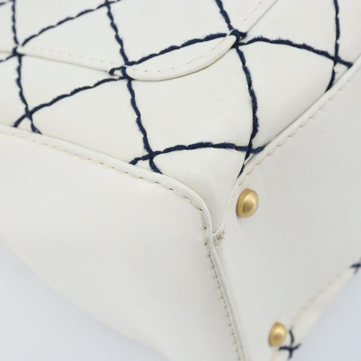 CHANEL Wild Stitch Hand Bag Leather White Gold CC Auth BAZ253A
