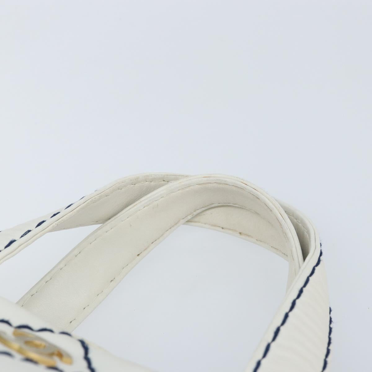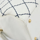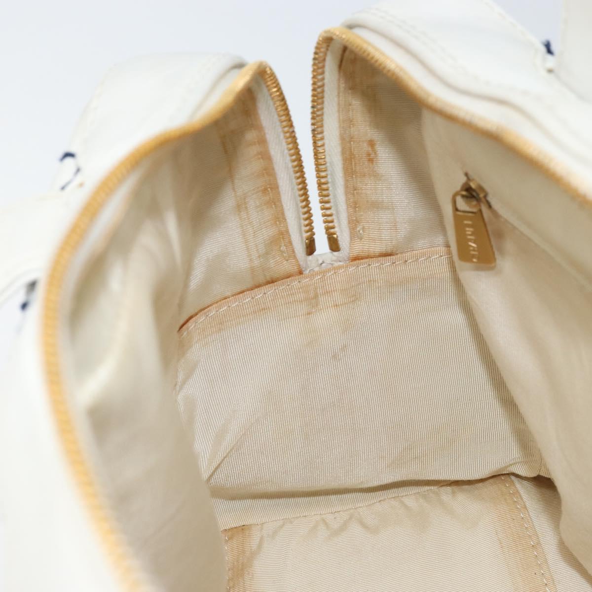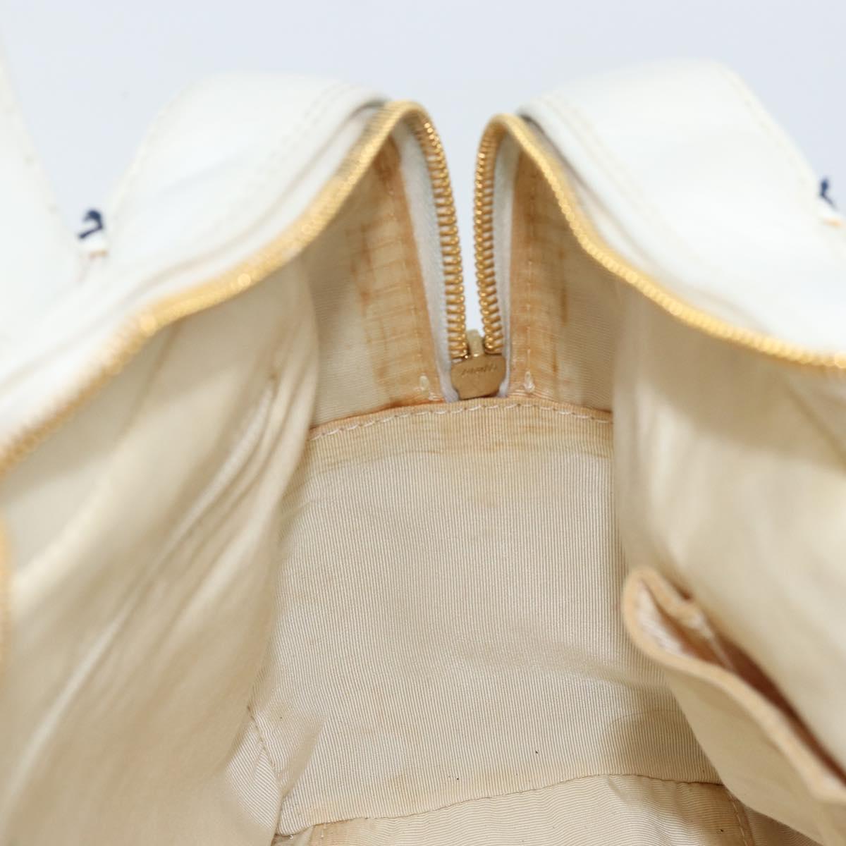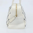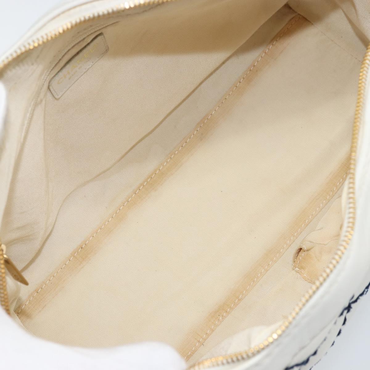 CHANEL Wild Stitch Hand Bag Leather White Gold CC Auth BAZ253A