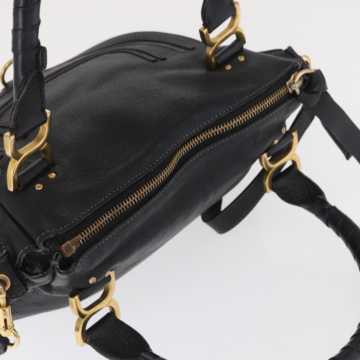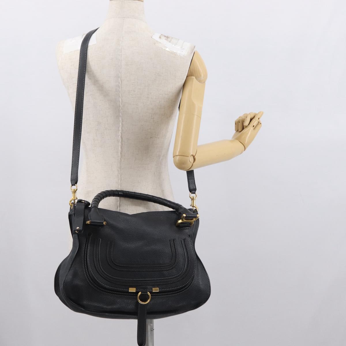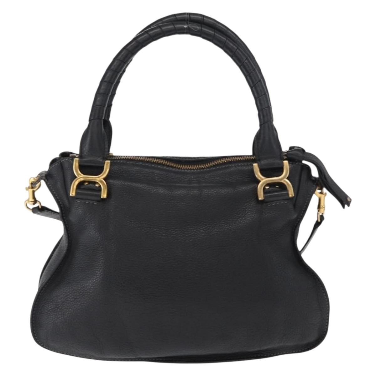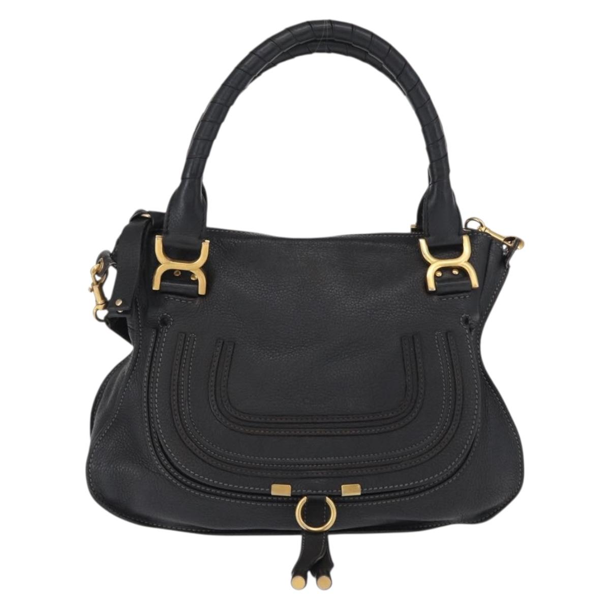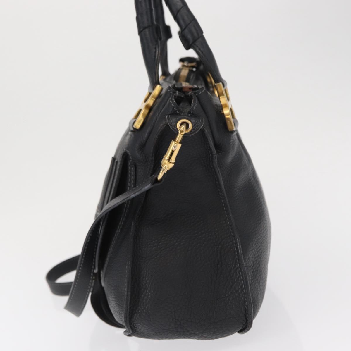 Chloe Mercy Hand Bag Leather 2way Black Gold Auth 166182