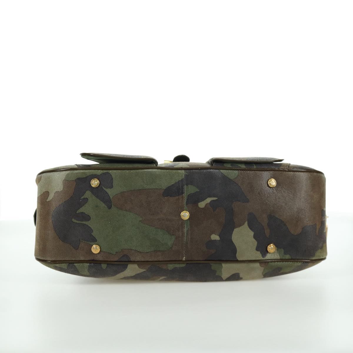 Christian Dior Double Saddle Camouflage Bag Leather Green Gold Auth 172789SAV