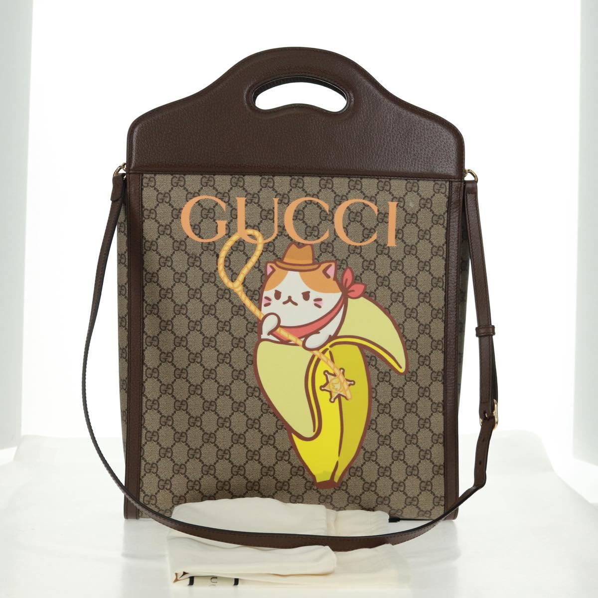 GUCCI GG Supreme Bananya Collaboration Bag PVC 2way Beige 703793 Auth 168359M