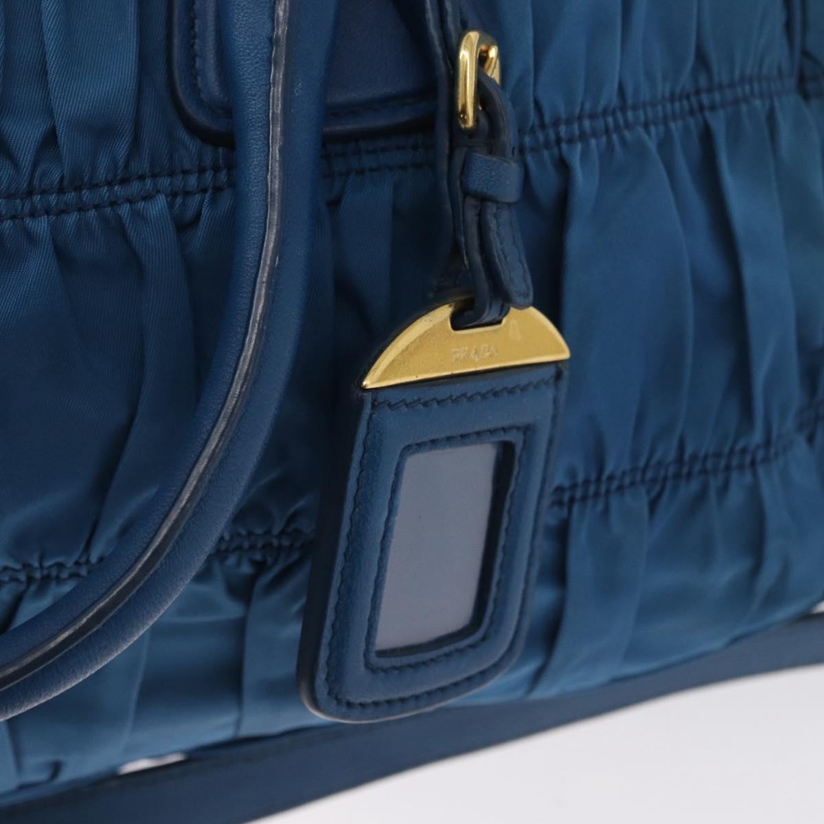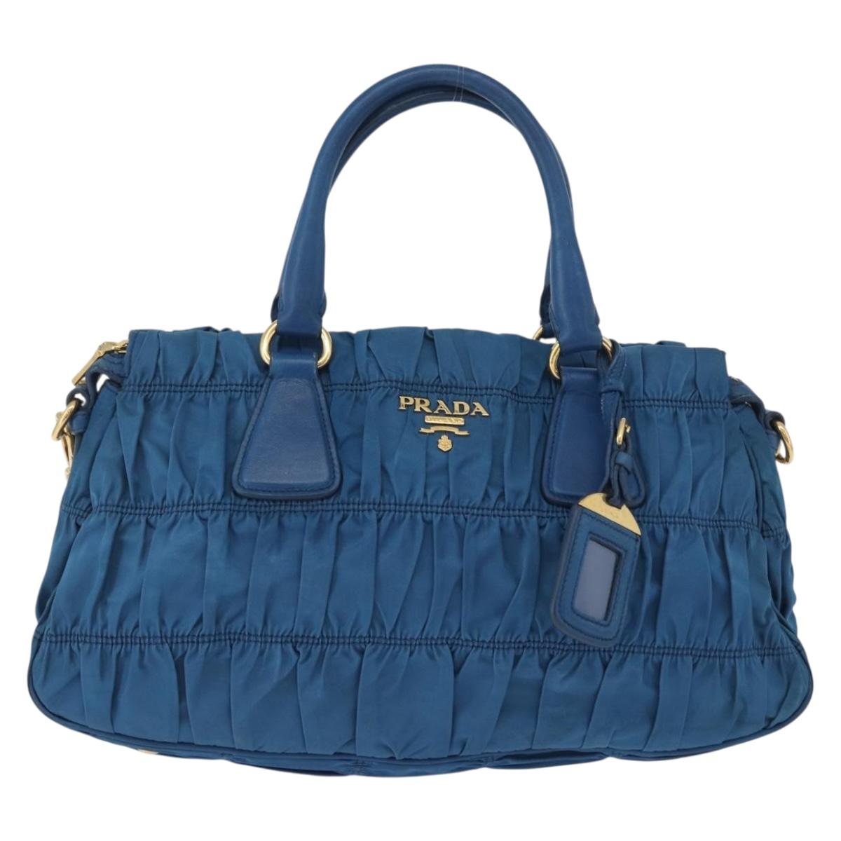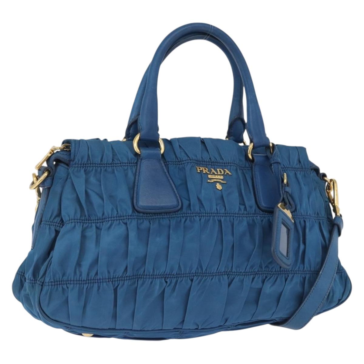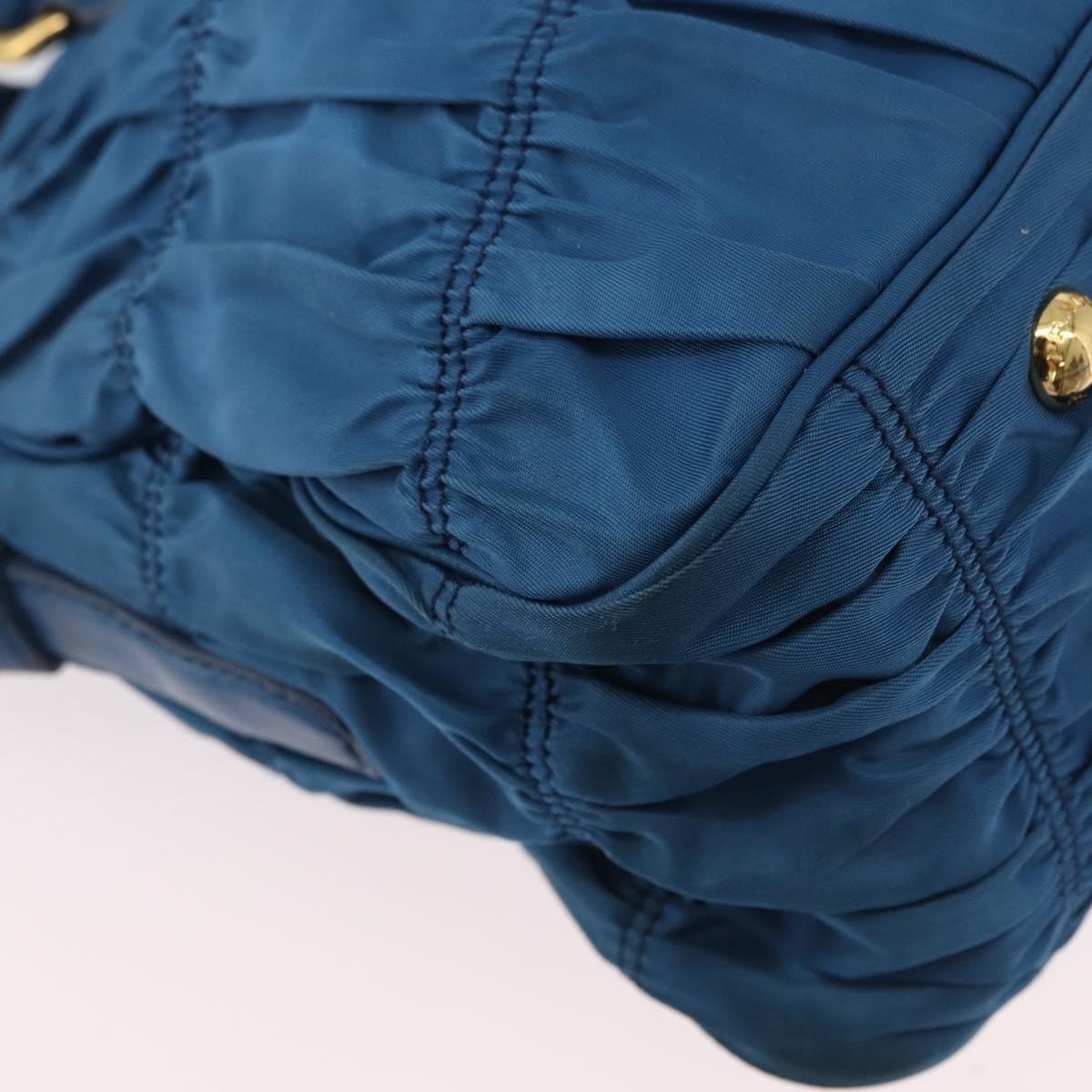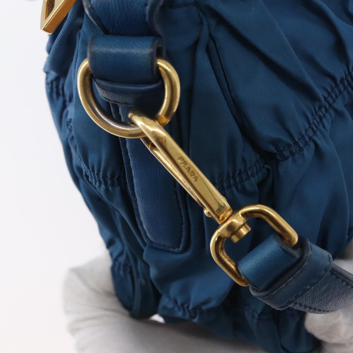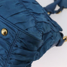 PRADA Gathered Hand Bag Nylon 2way Blue Gold Auth 173244A