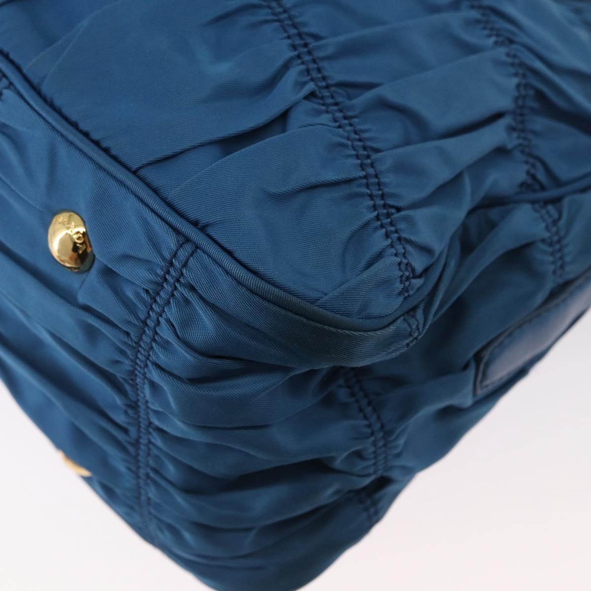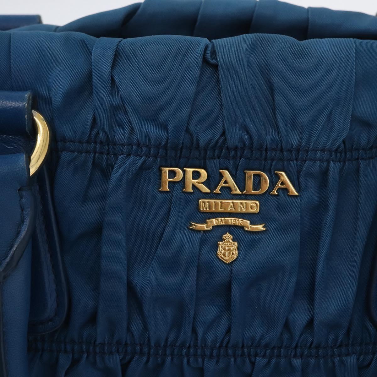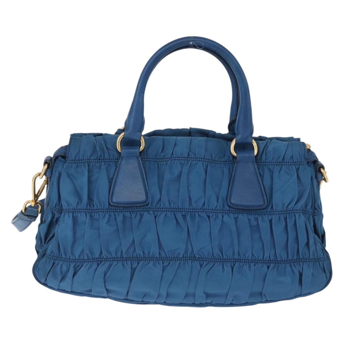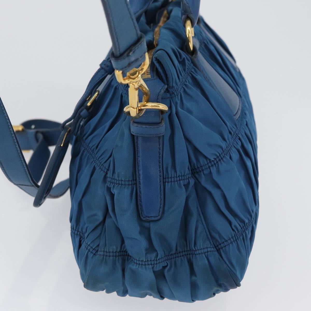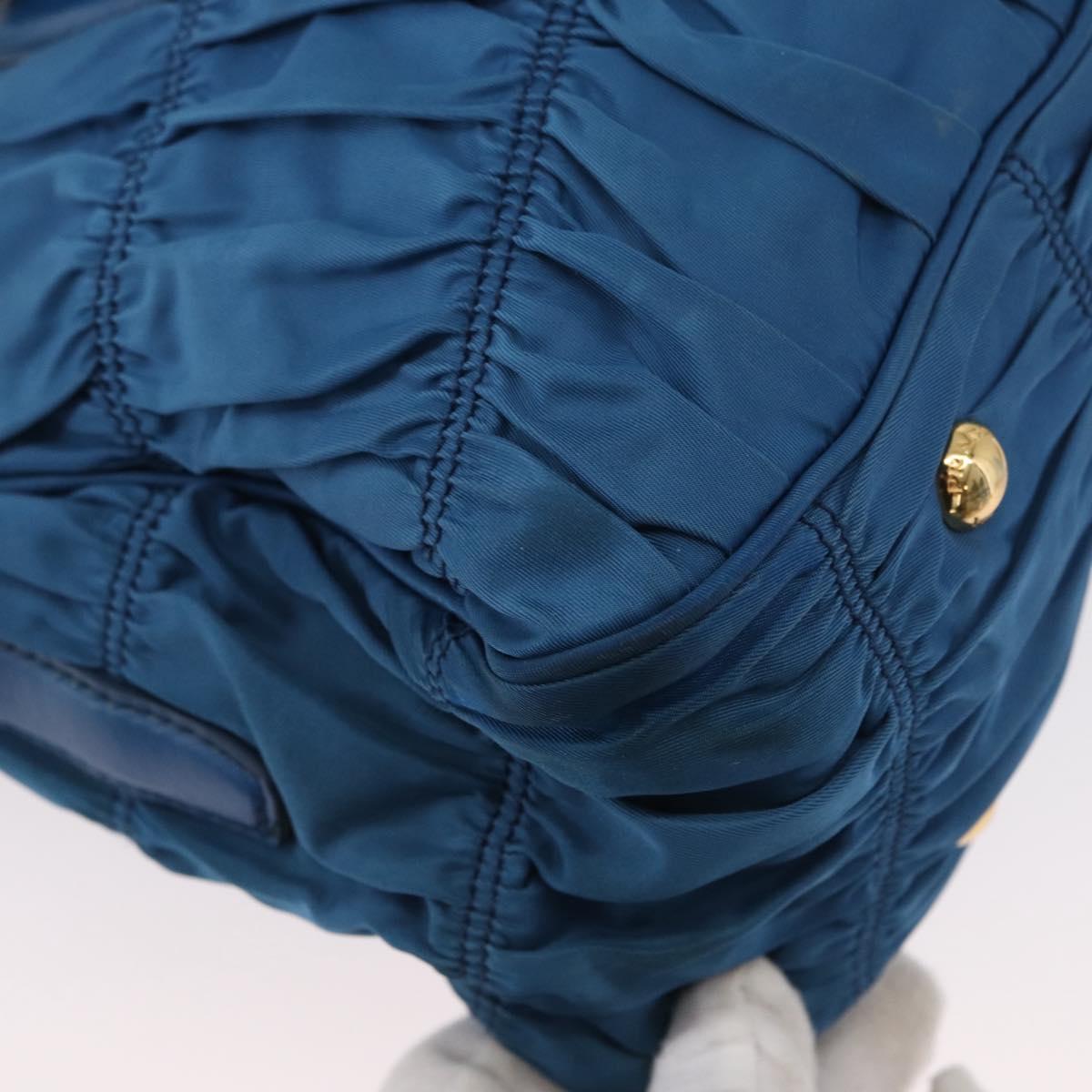 PRADA Gathered Hand Bag Nylon 2way Blue Gold Auth 173244A