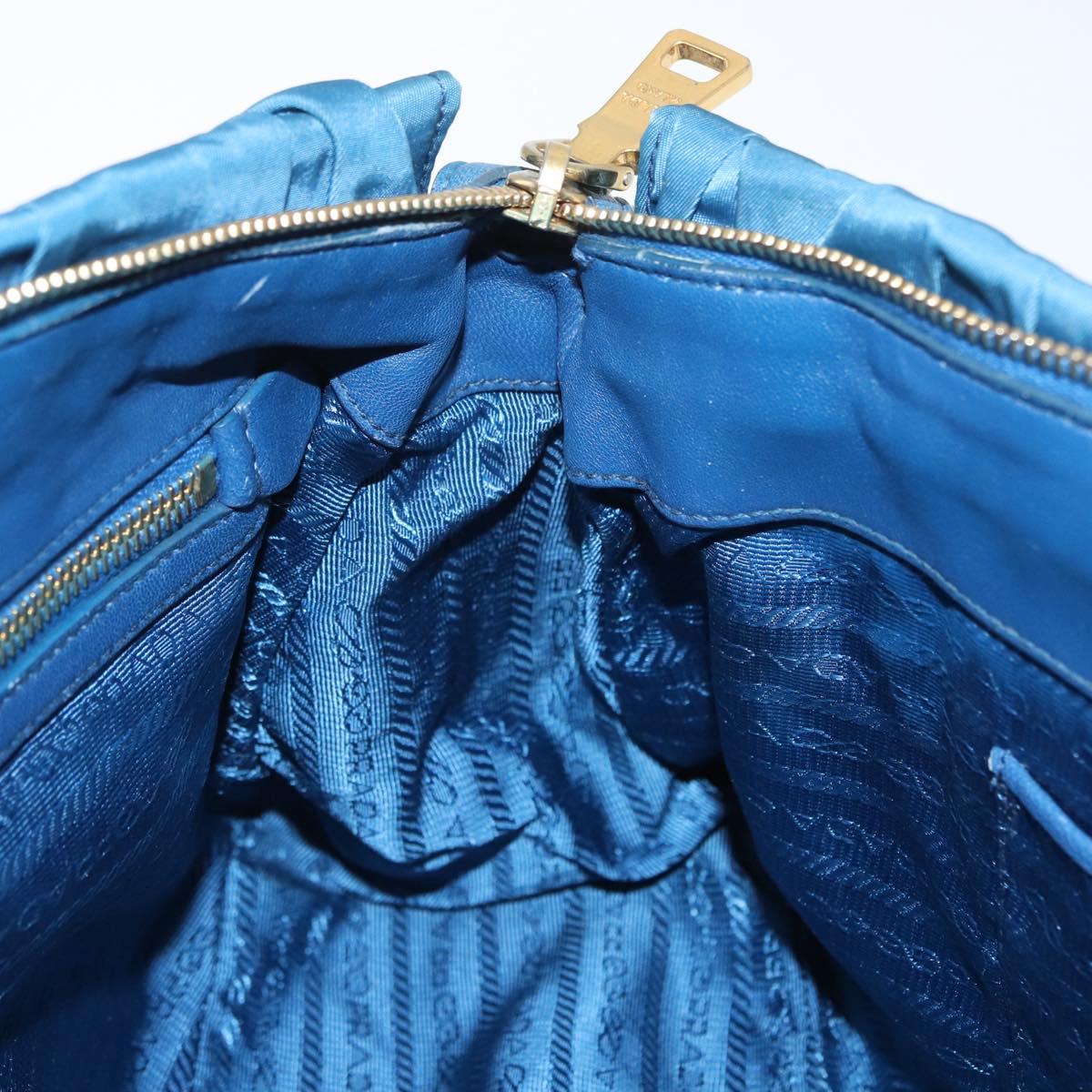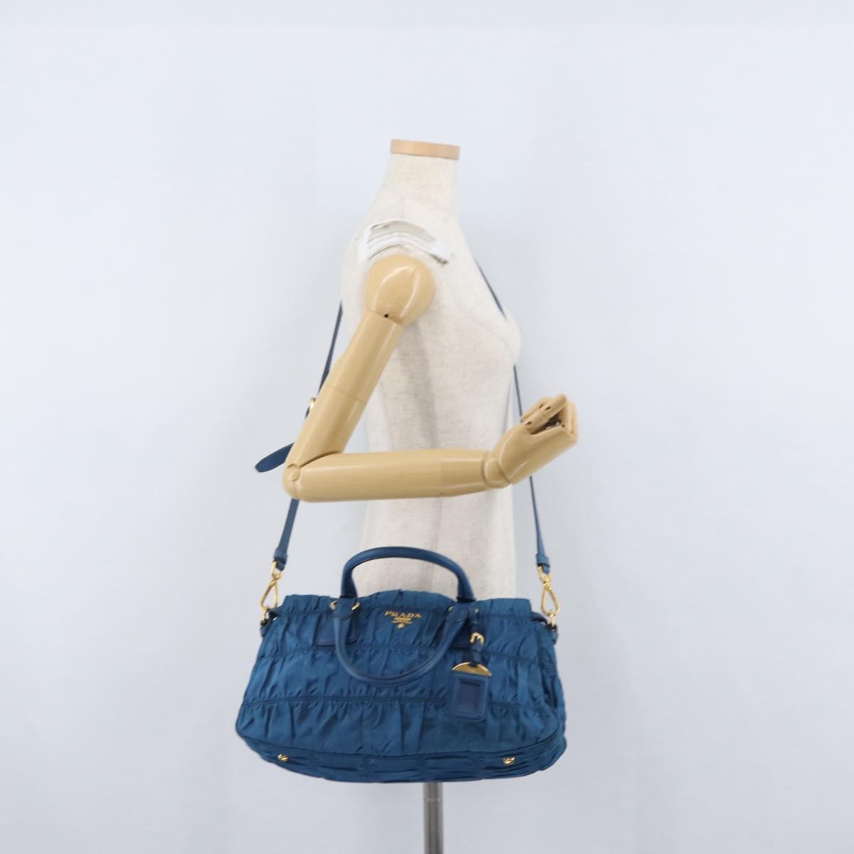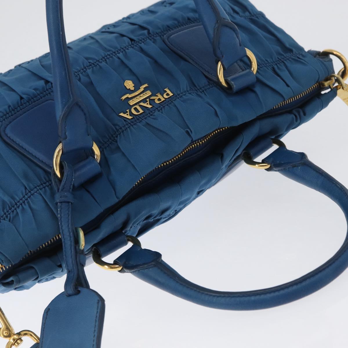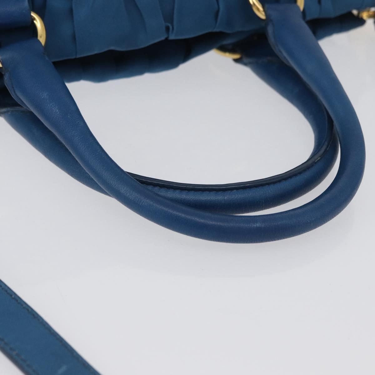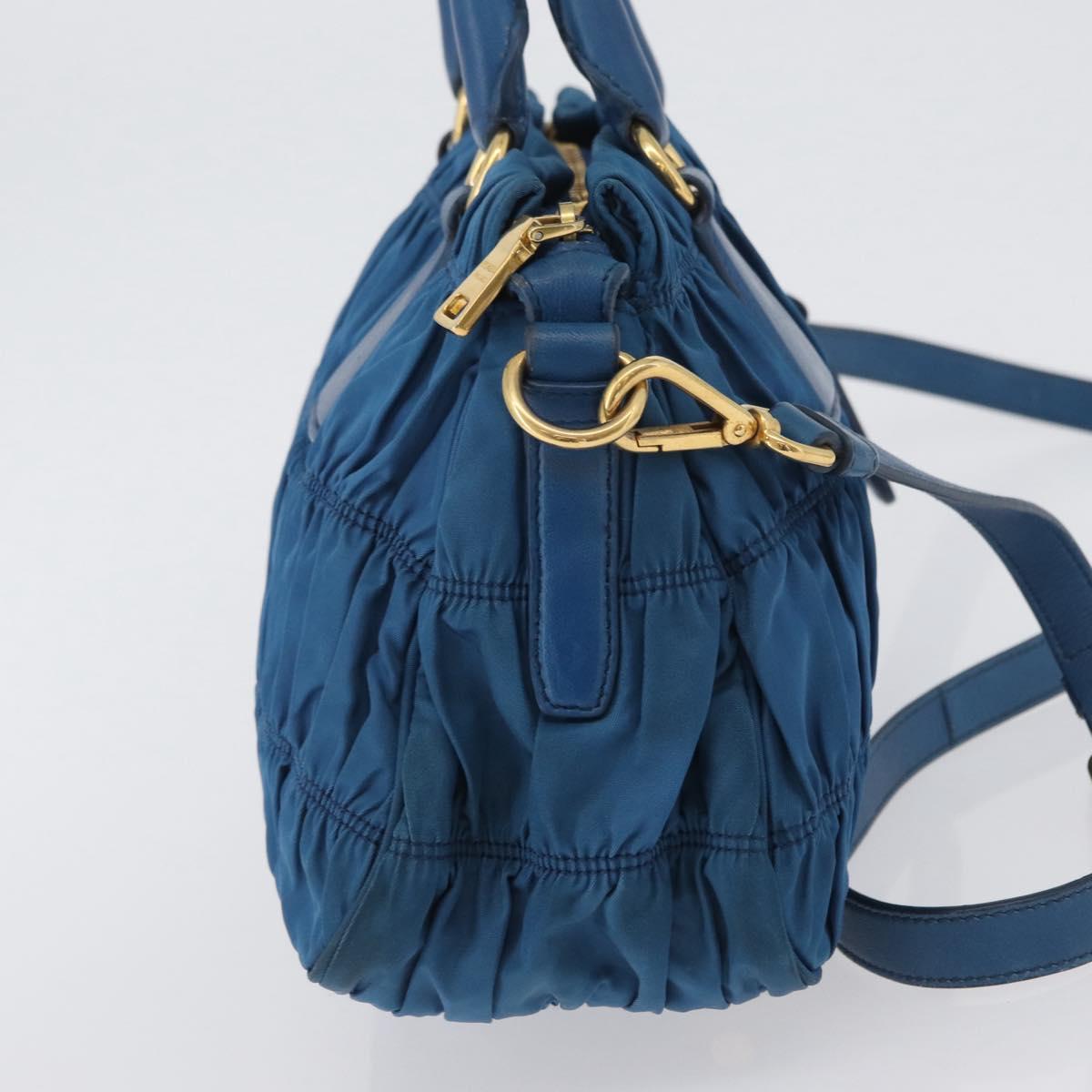 PRADA Gathered Hand Bag Nylon 2way Blue Gold Auth 173244A