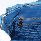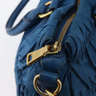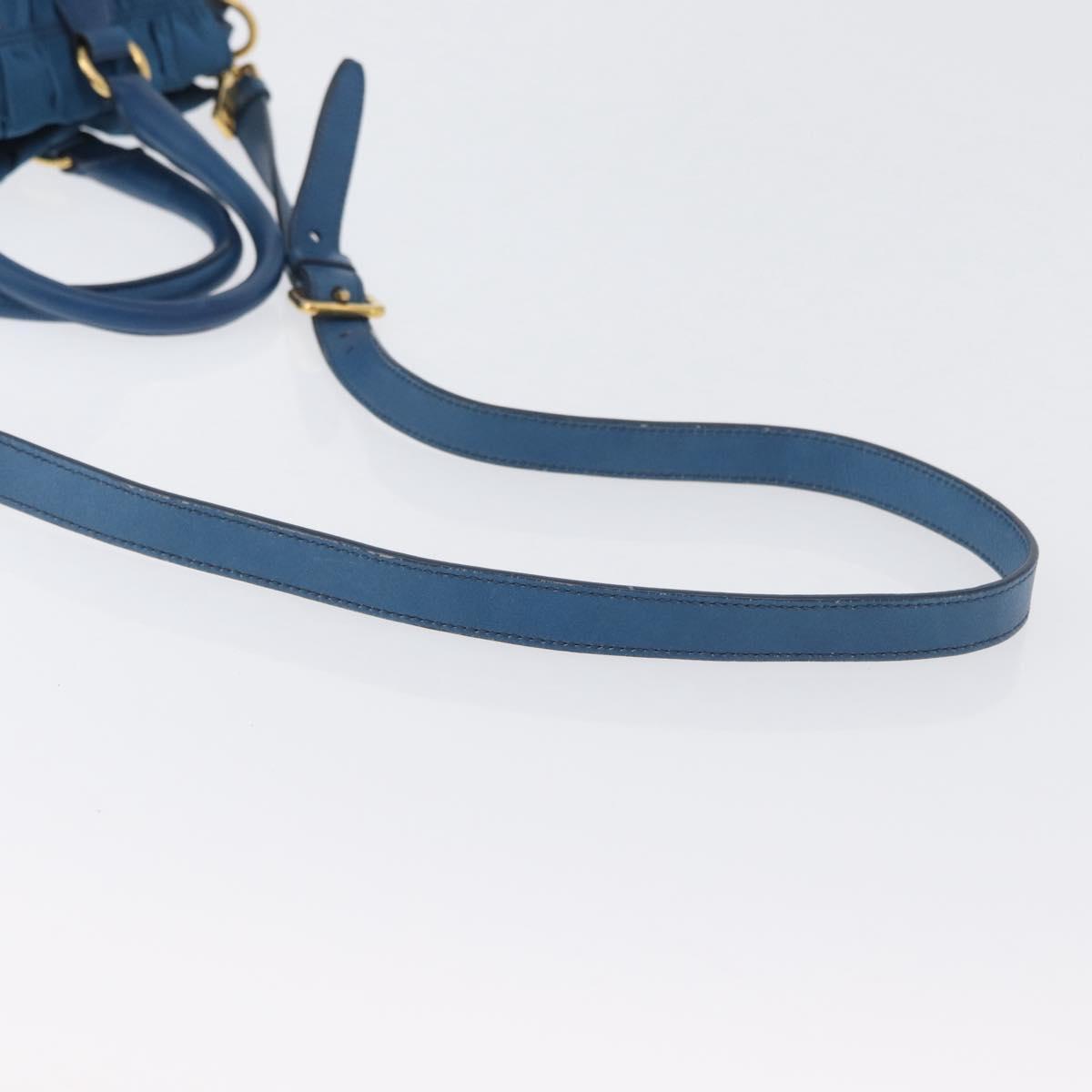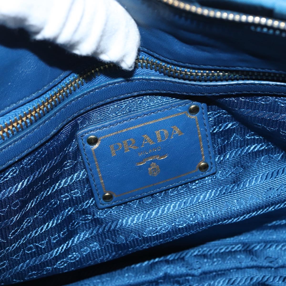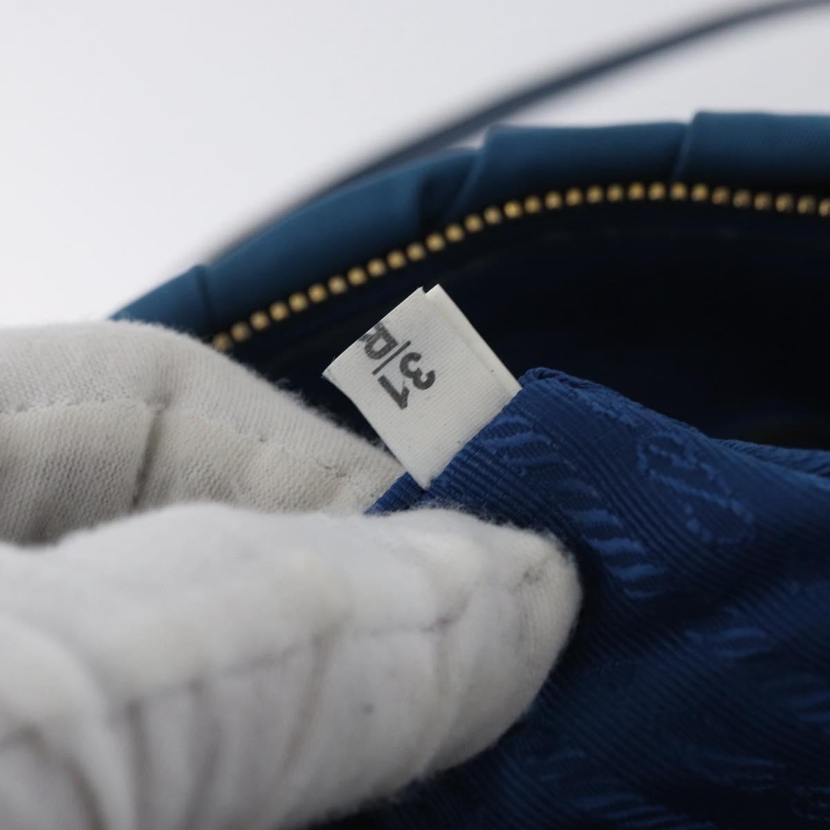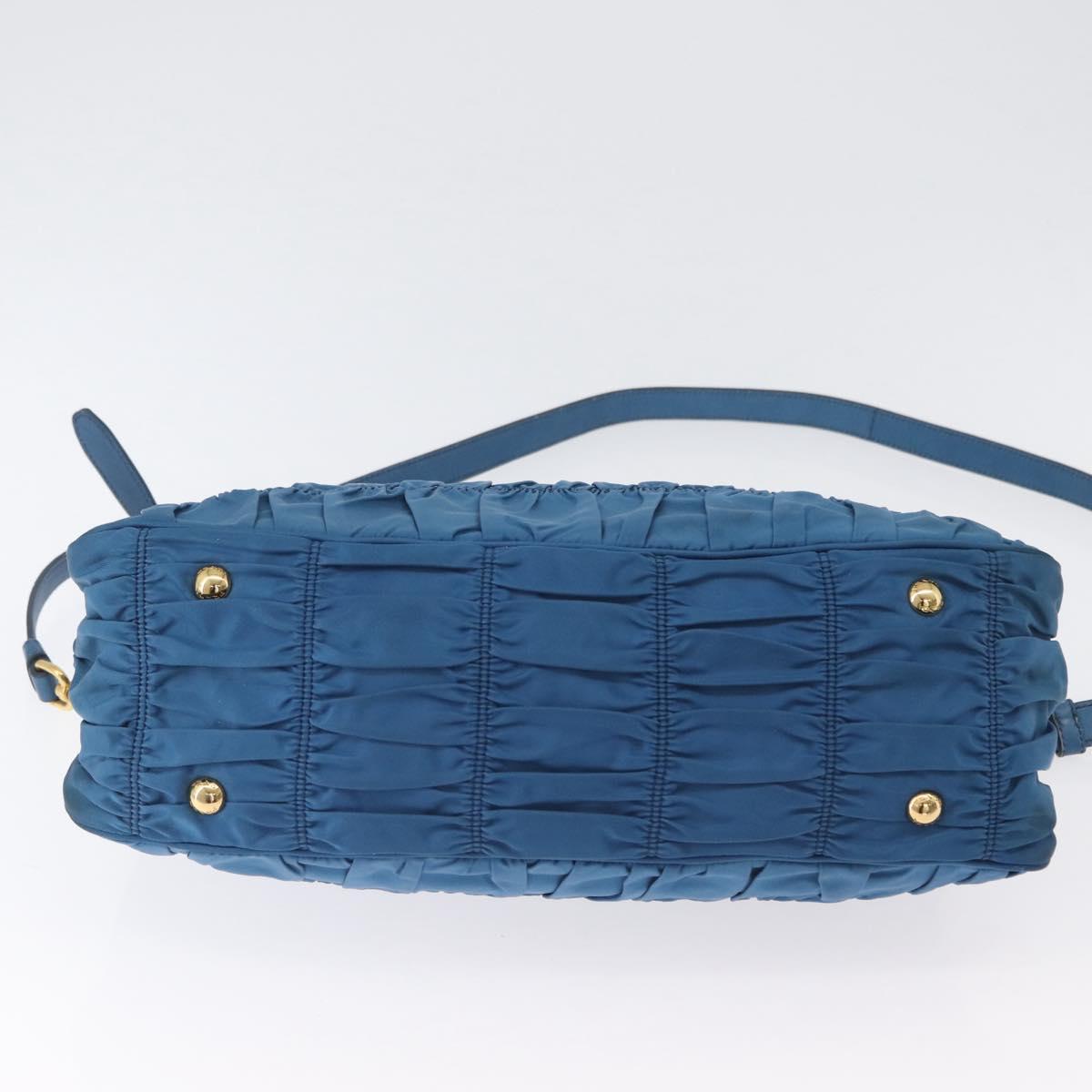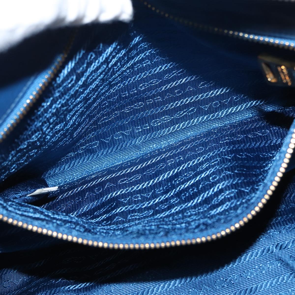 PRADA Gathered Hand Bag Nylon 2way Blue Gold Auth 173244A