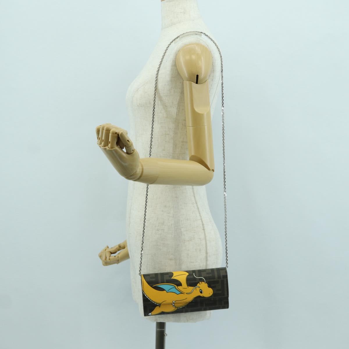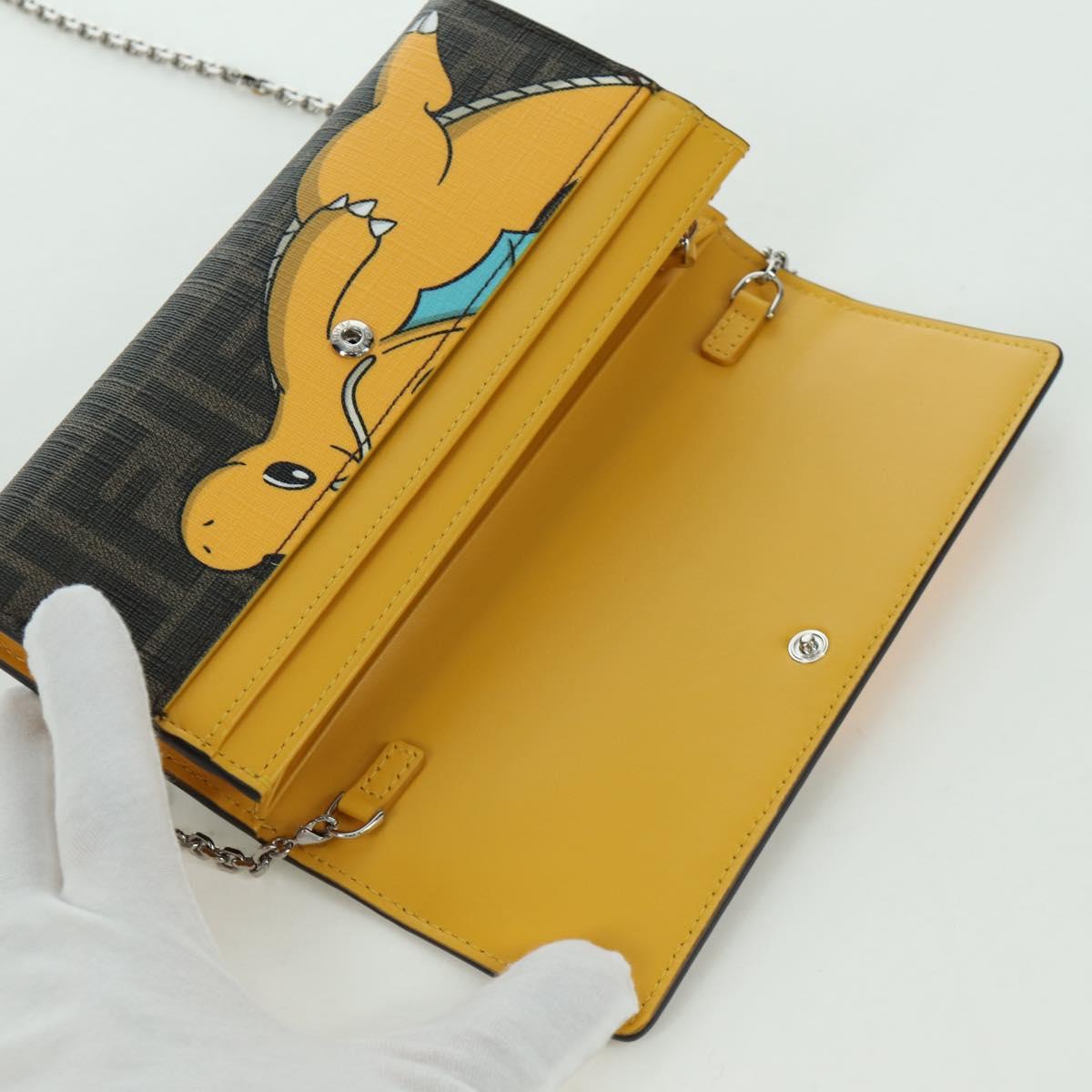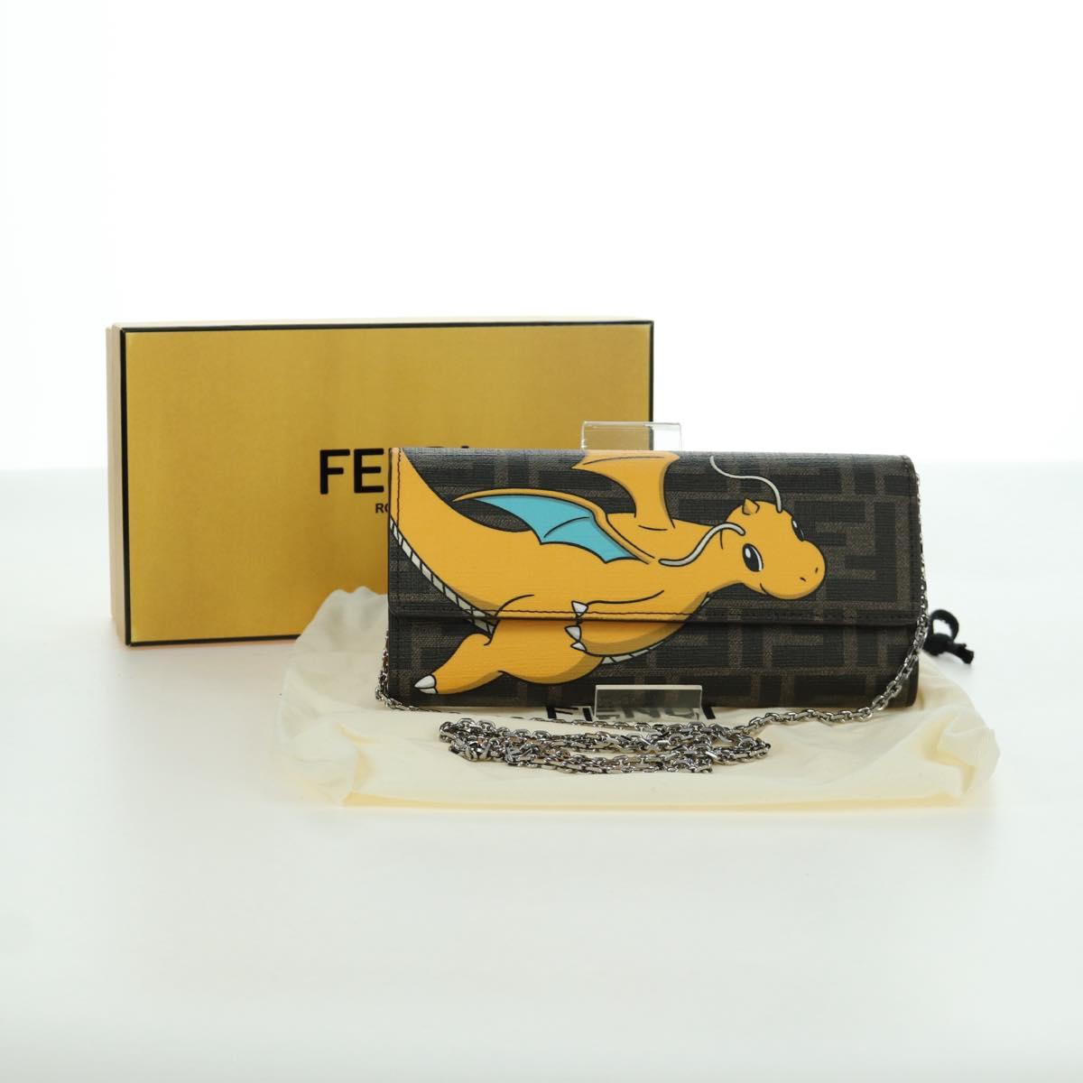 FENDI xFRGMTxPOKEMON Zucca Canvas Chain Wallet Dragon Bag Black Auth 166959SM