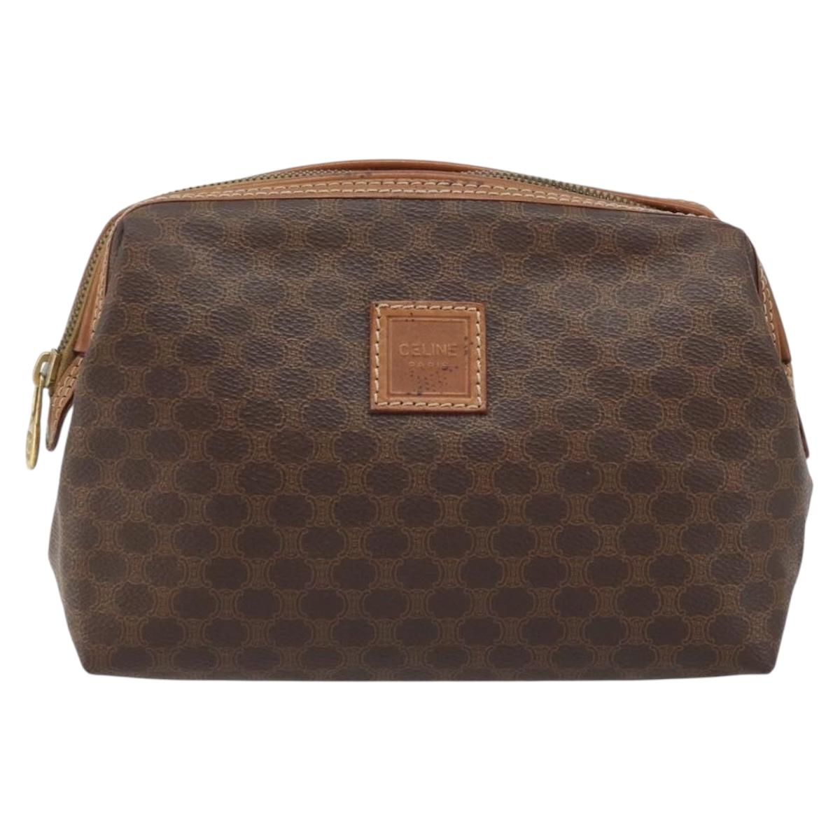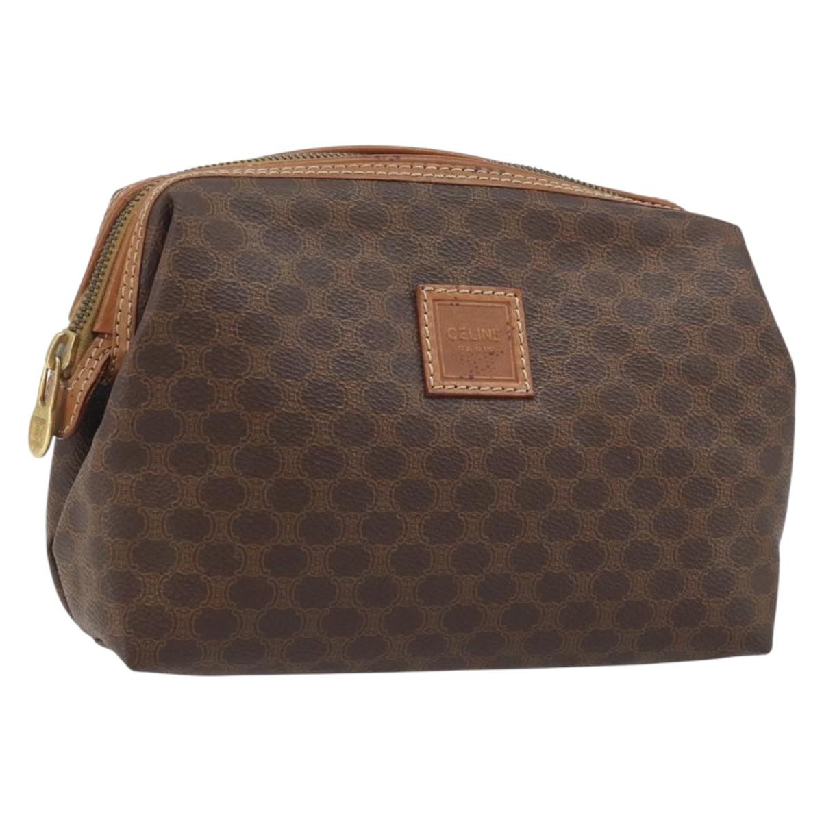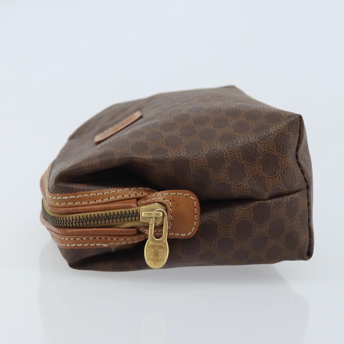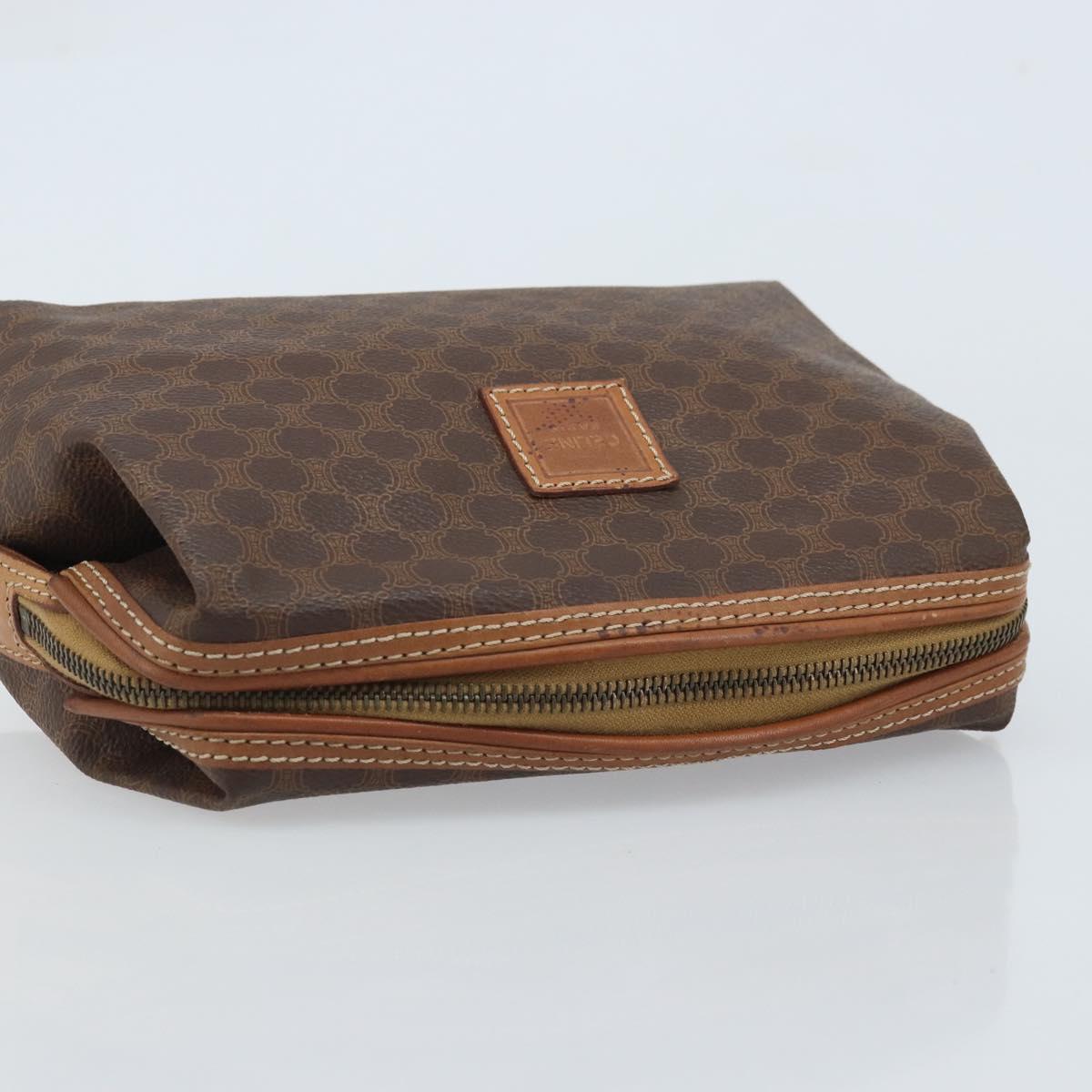CELINE Macadam Canvas Pouch PVC Leather Brown Gold Auth mr2257