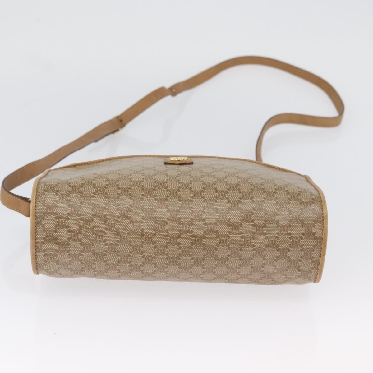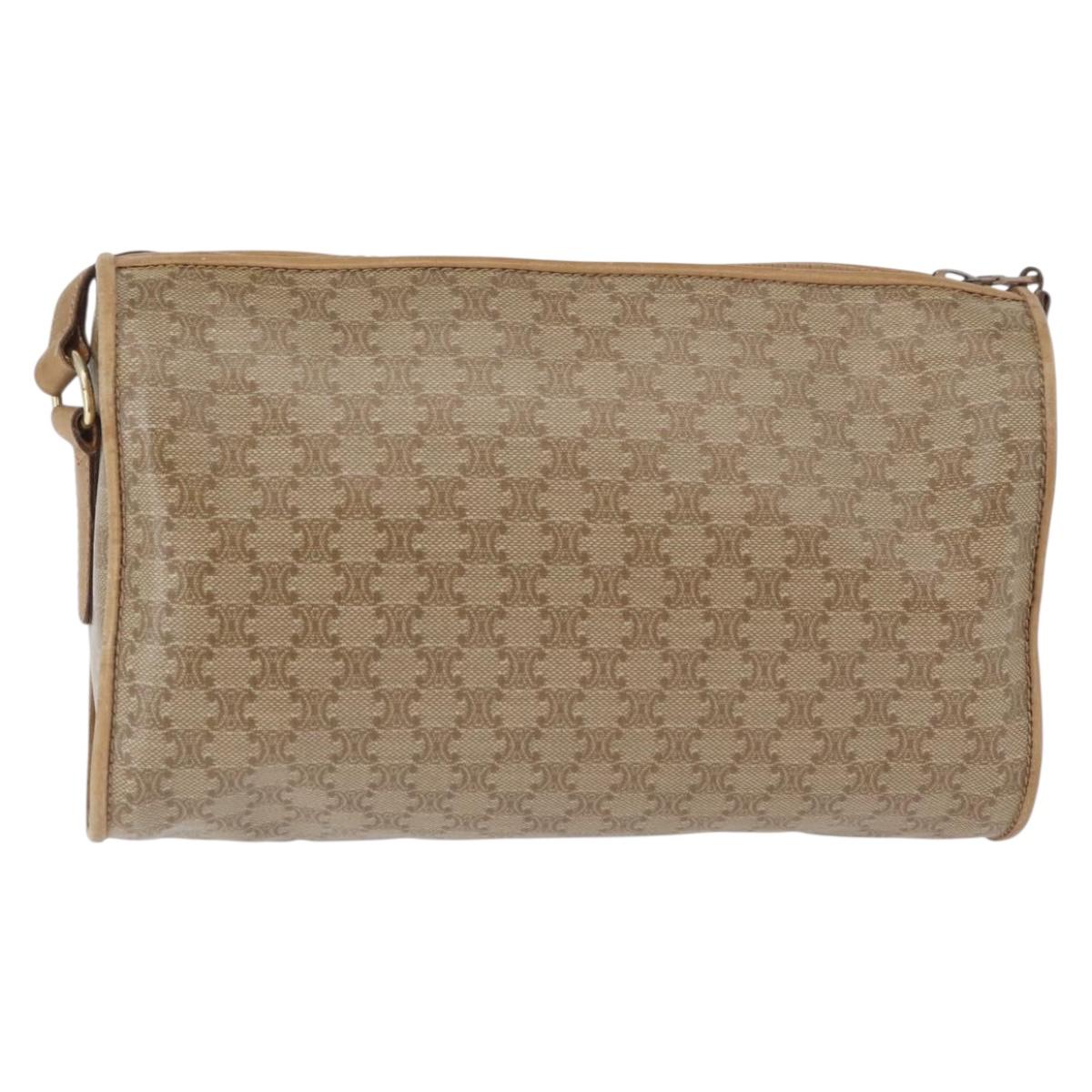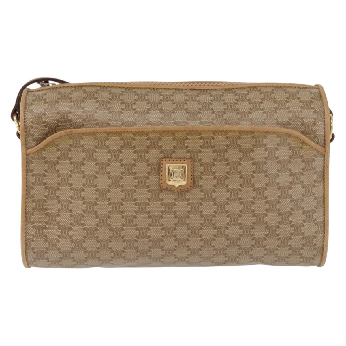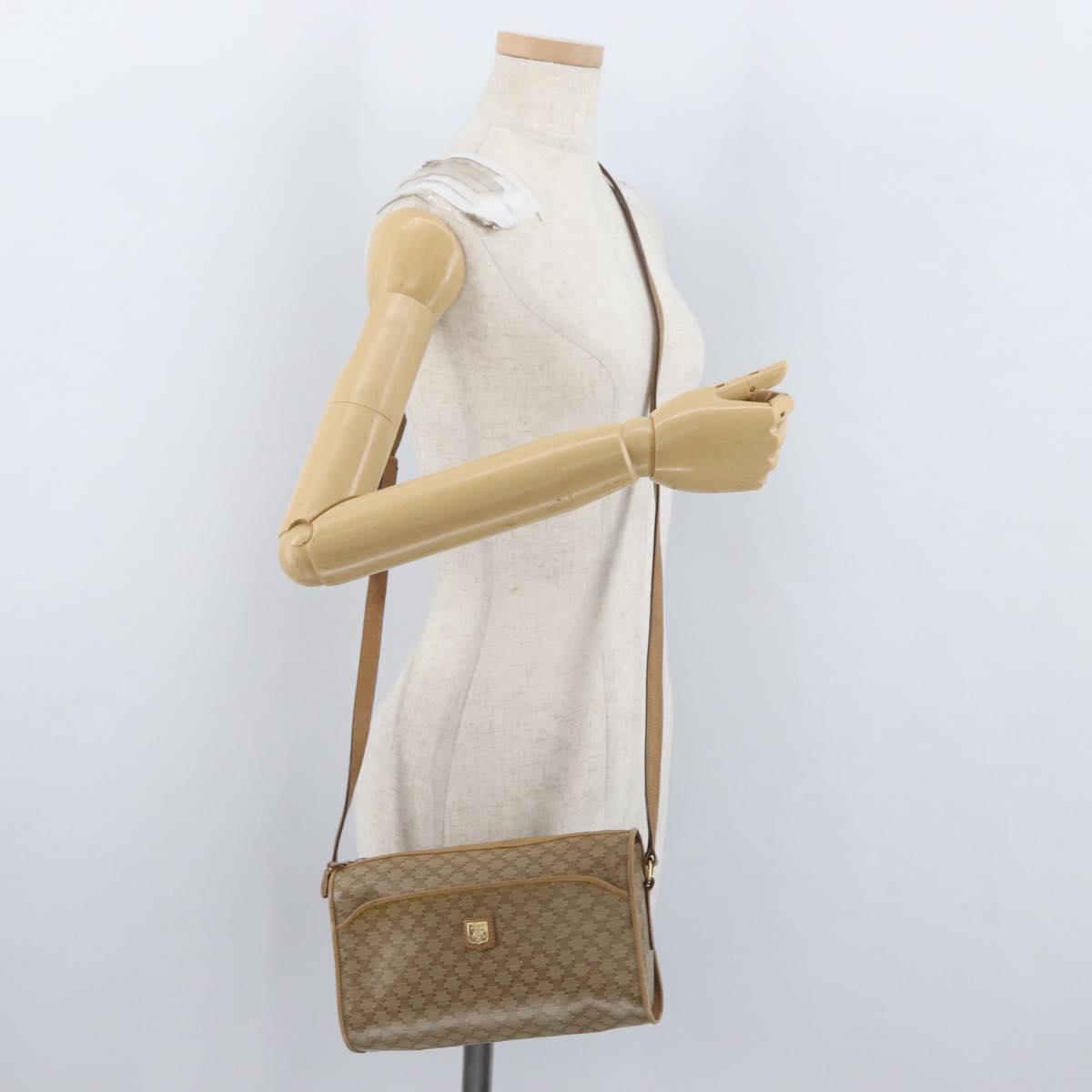 CELINE Macadam Canvas Shoulder Bag Beige Gold Auth bs33904