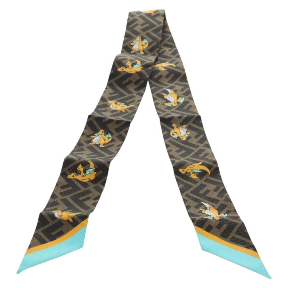 FENDI x FRGMT x POKEMON Zucca Canvas Rappy Dragonite Necktie Black Auth 167108SM