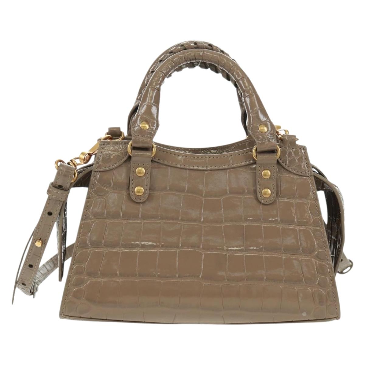 BALENCIAGA Neo Classic City Hand Bag Patent 2way Gray Gold 638524 Auth am10547SAM