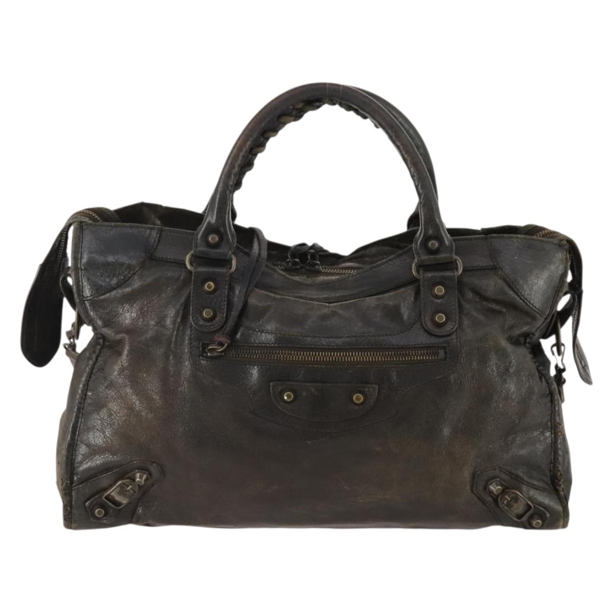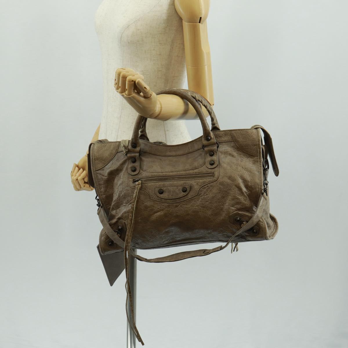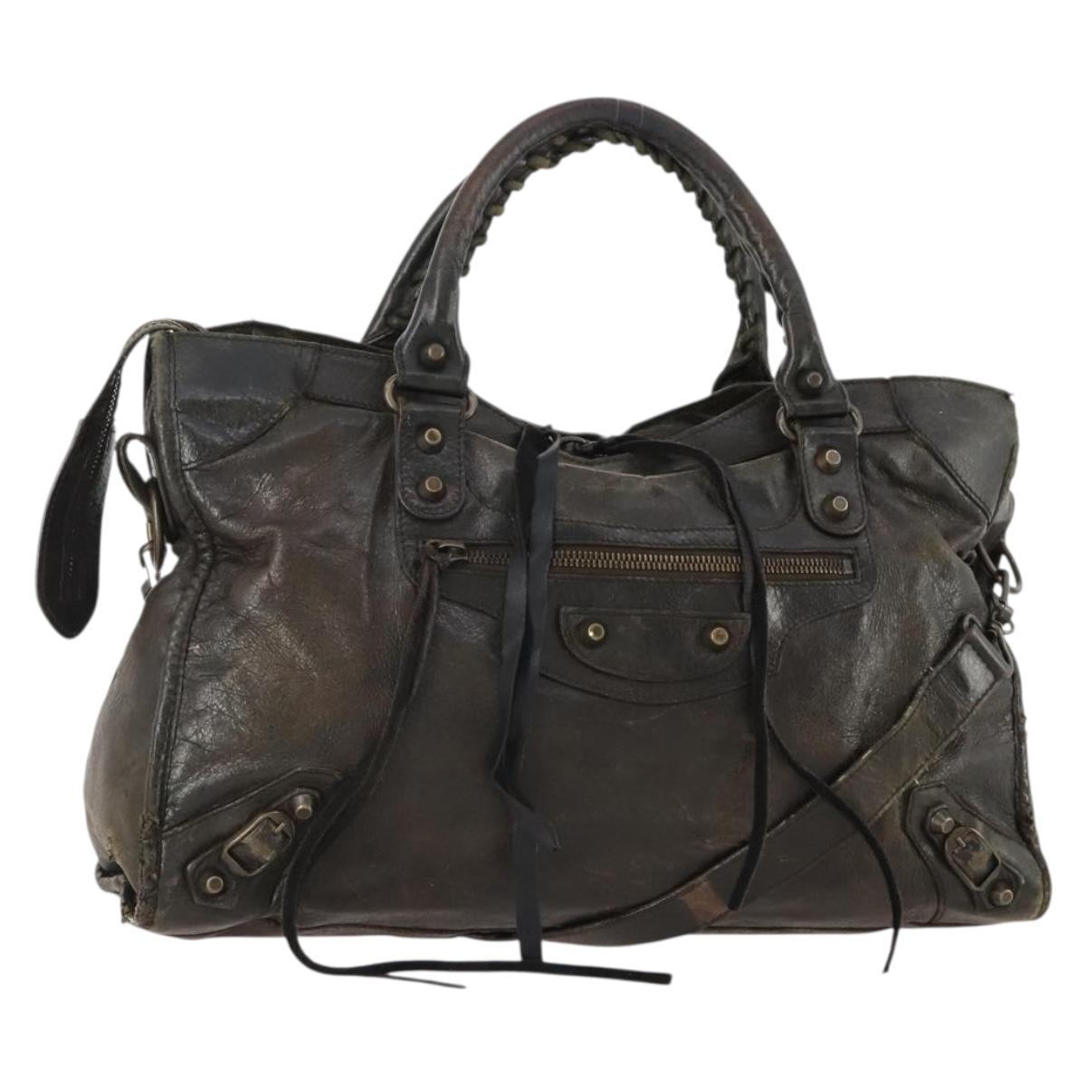 BALENCIAGA The City Hand Bag Leather 2way Brown 115748 Auth YKZ094