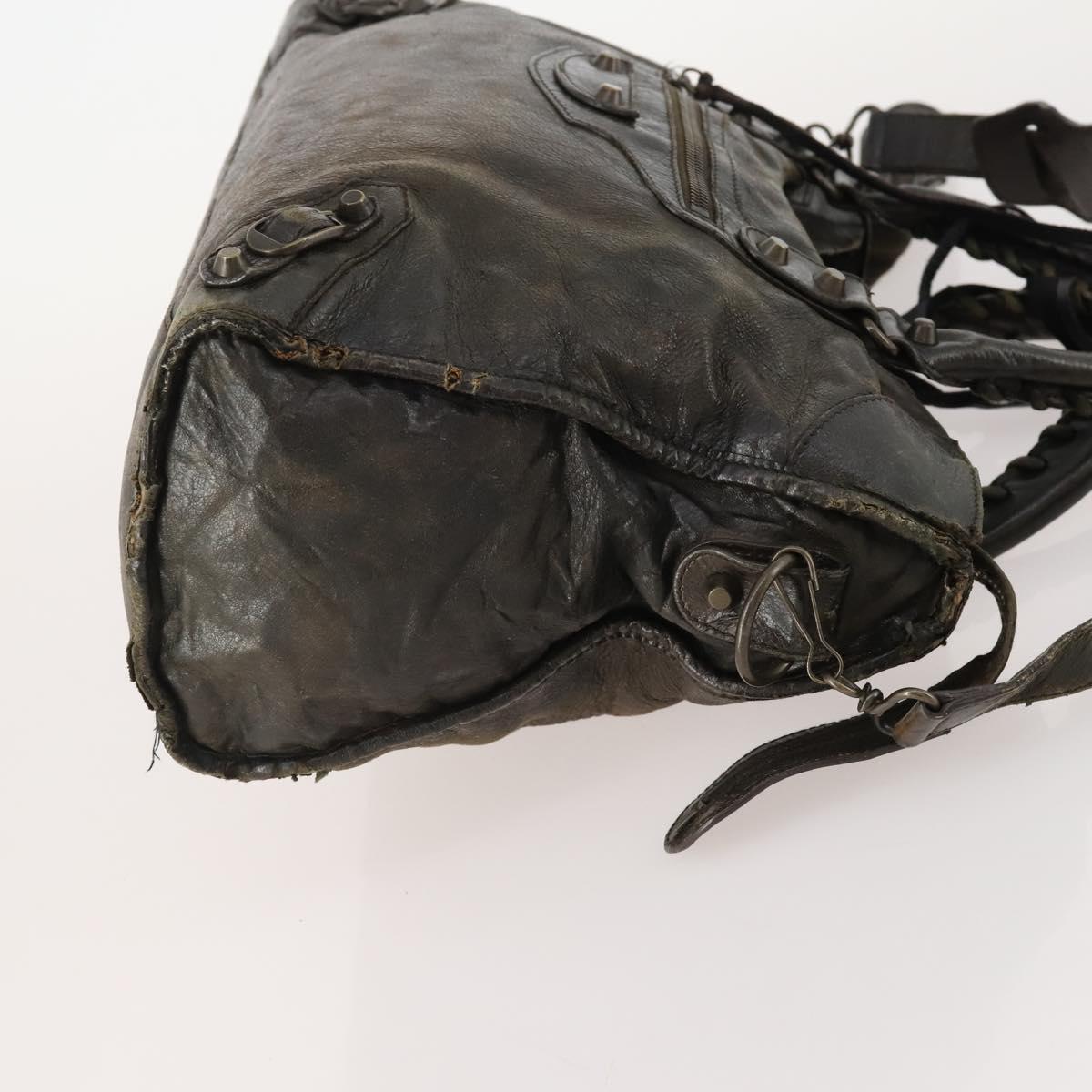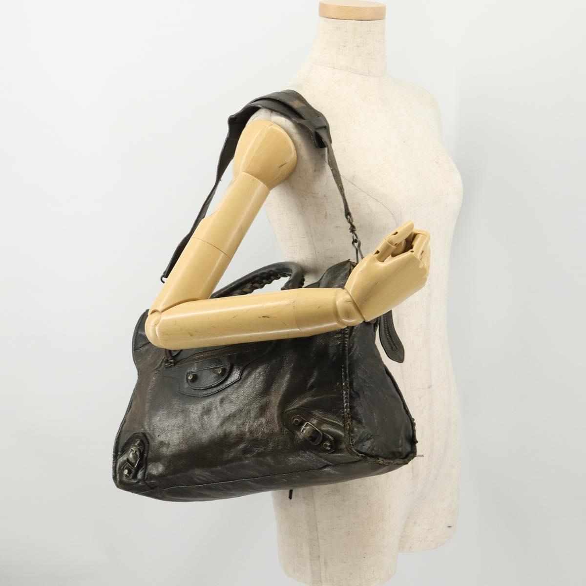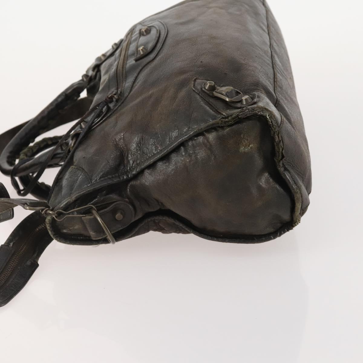BALENCIAGA Giant City Hand Bag Leather 2way Black Silver 281770 Auth YKZ099SAV