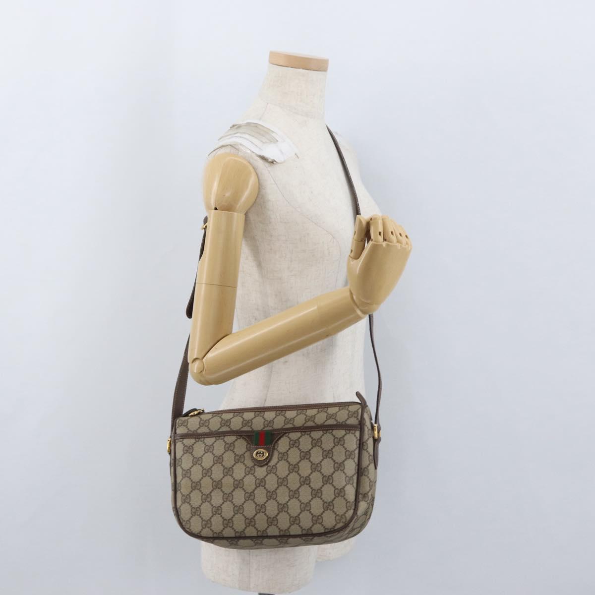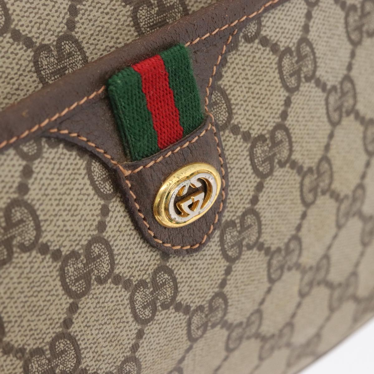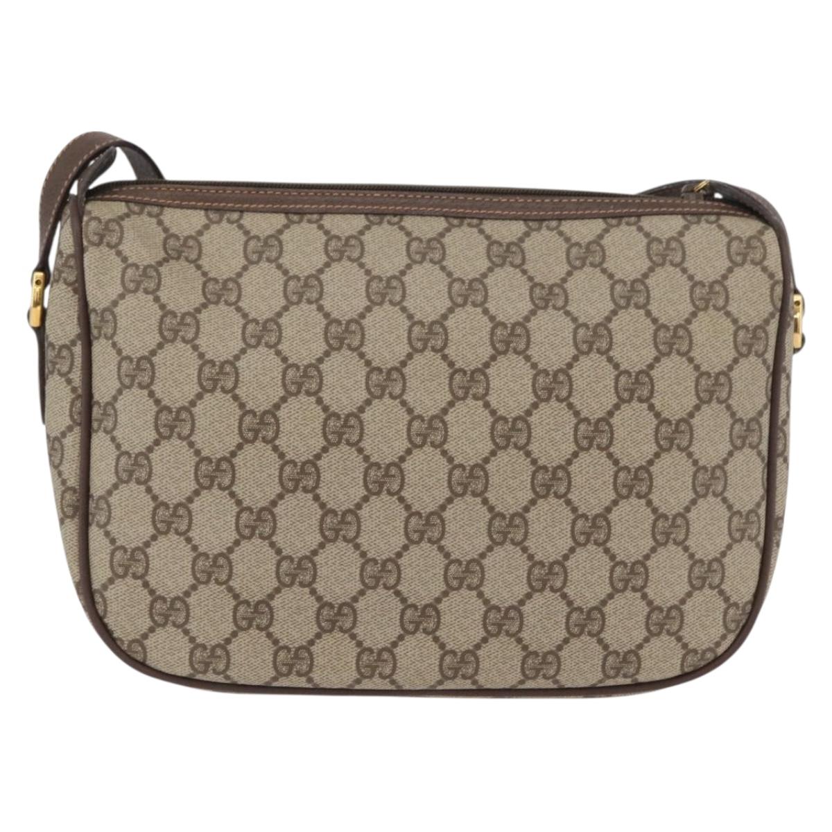 GUCCI GG Supreme Web Sherry Line Bag PVC Beige Gold 89 02 077 Auth ep13690A