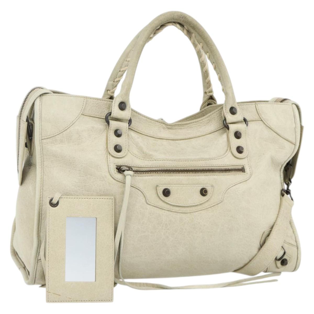 BALENCIAGA The City Hand Bag Leather 2way Ivory 115748 Auth 175528A