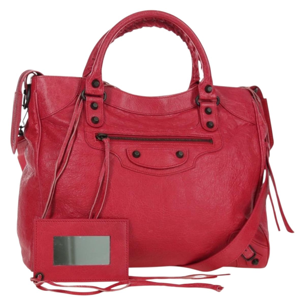 BALENCIAGA The City Hand Bag Leather 2way Red 235216 Auth AMZ544V