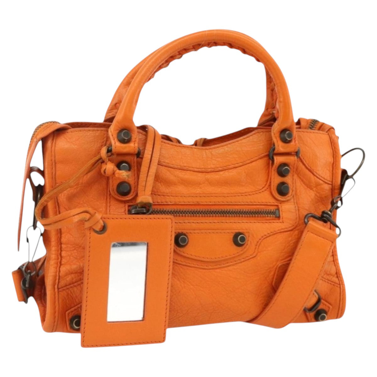 BALENCIAGA LuCity Hand Bag Leather 2way Orange 300295 Auth ka3266M