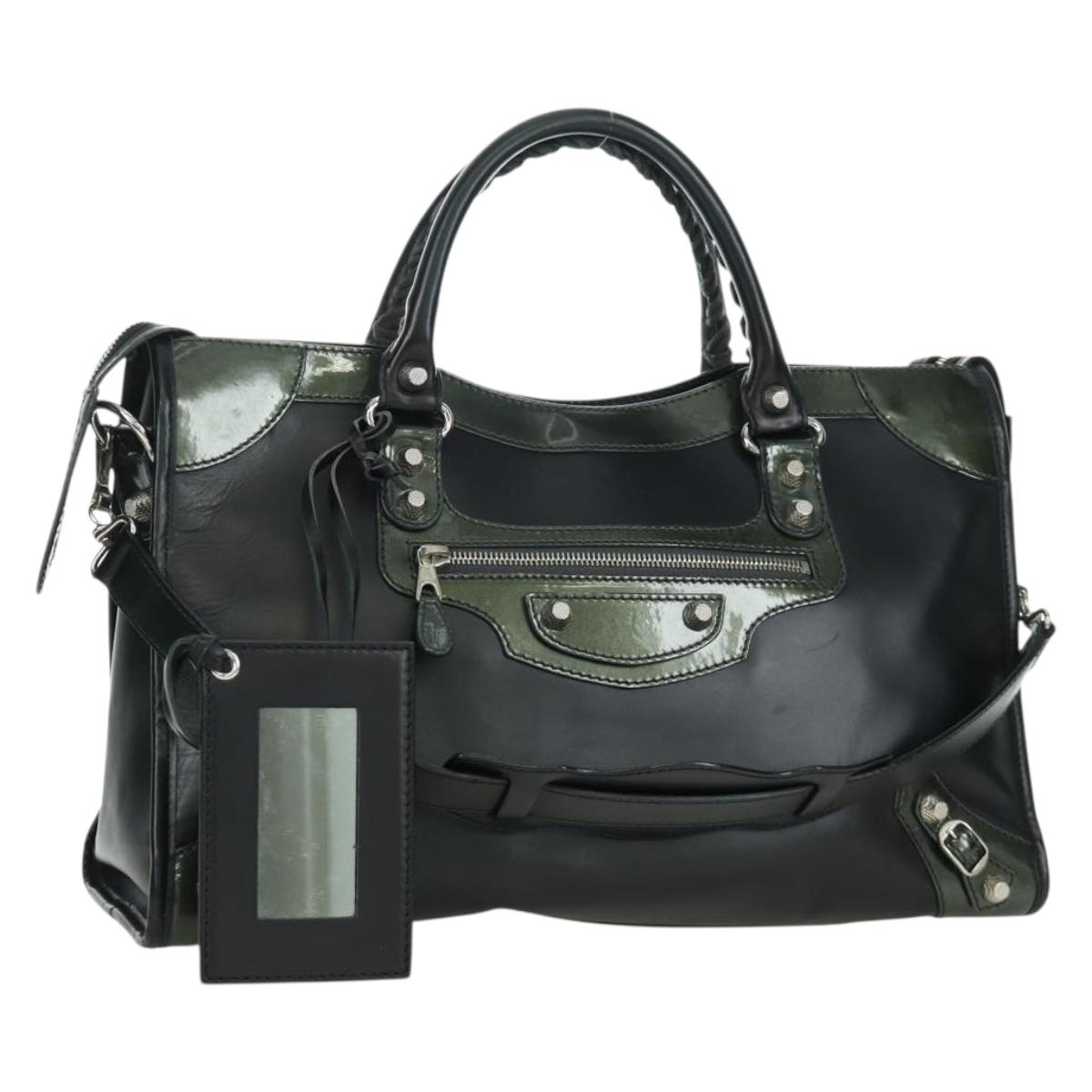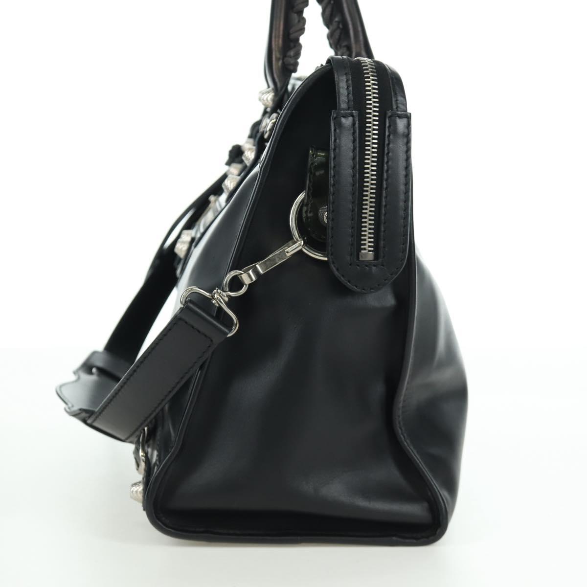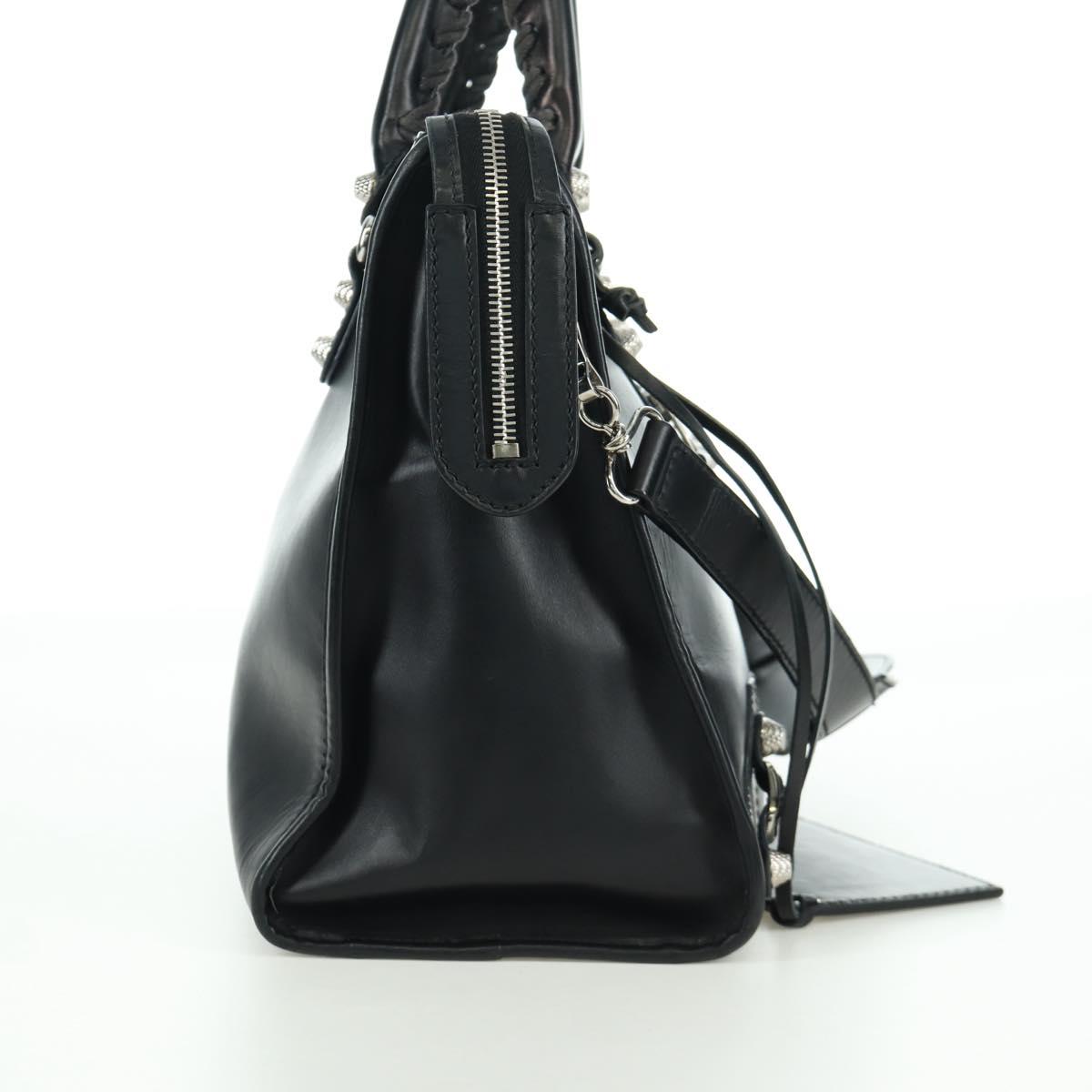 BALENCIAGA Giant City Hand Bag Leather 2way Black Silver 281770 Auth YKZ099SAV