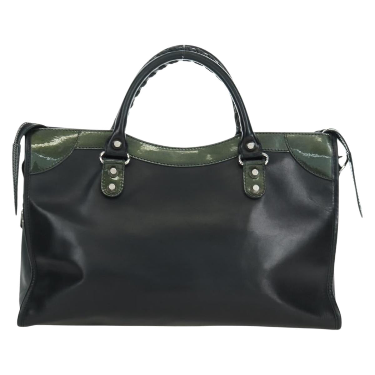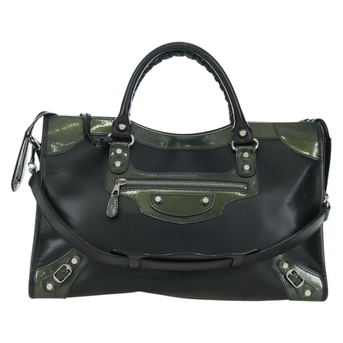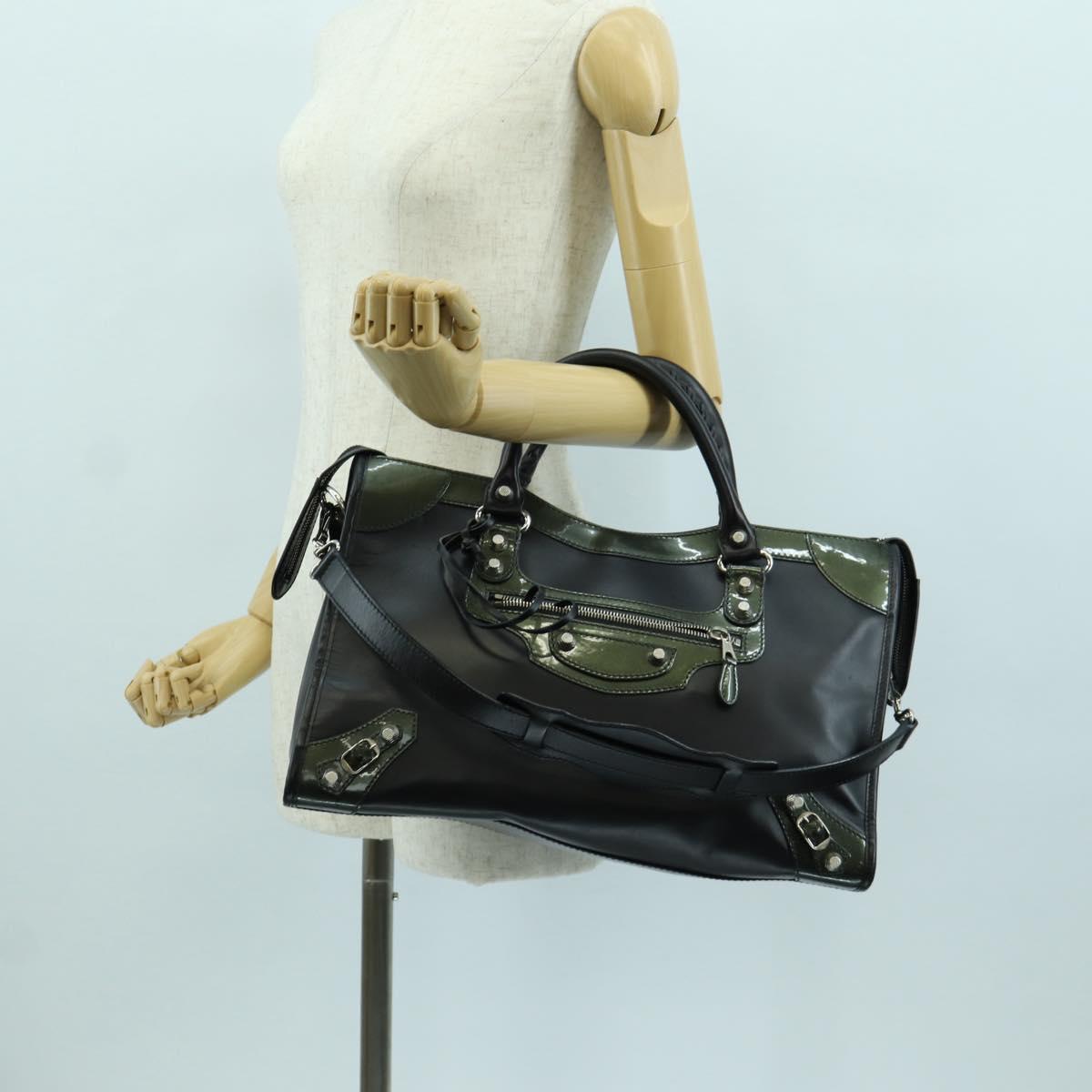 BALENCIAGA Giant City Hand Bag Leather 2way Black Silver 281770 Auth YKZ099SAV