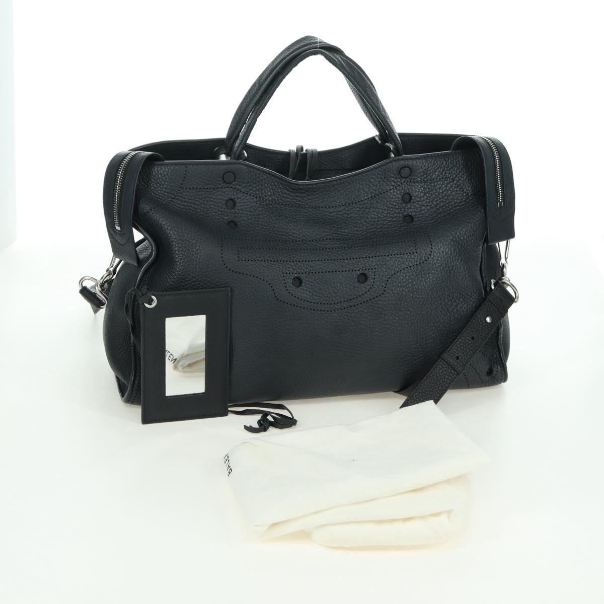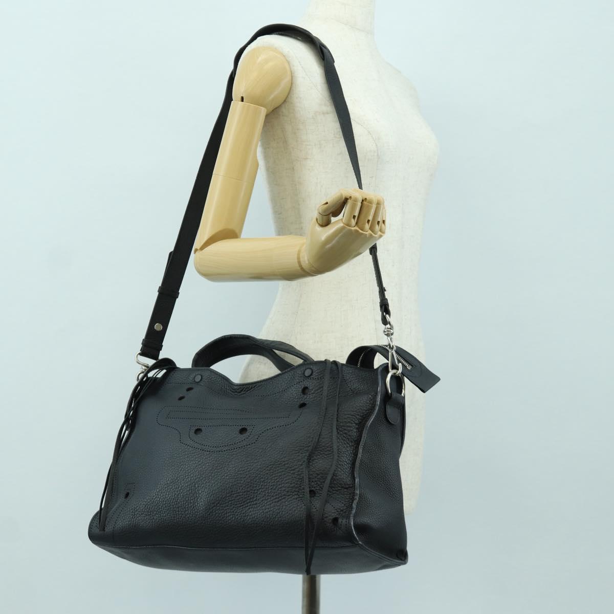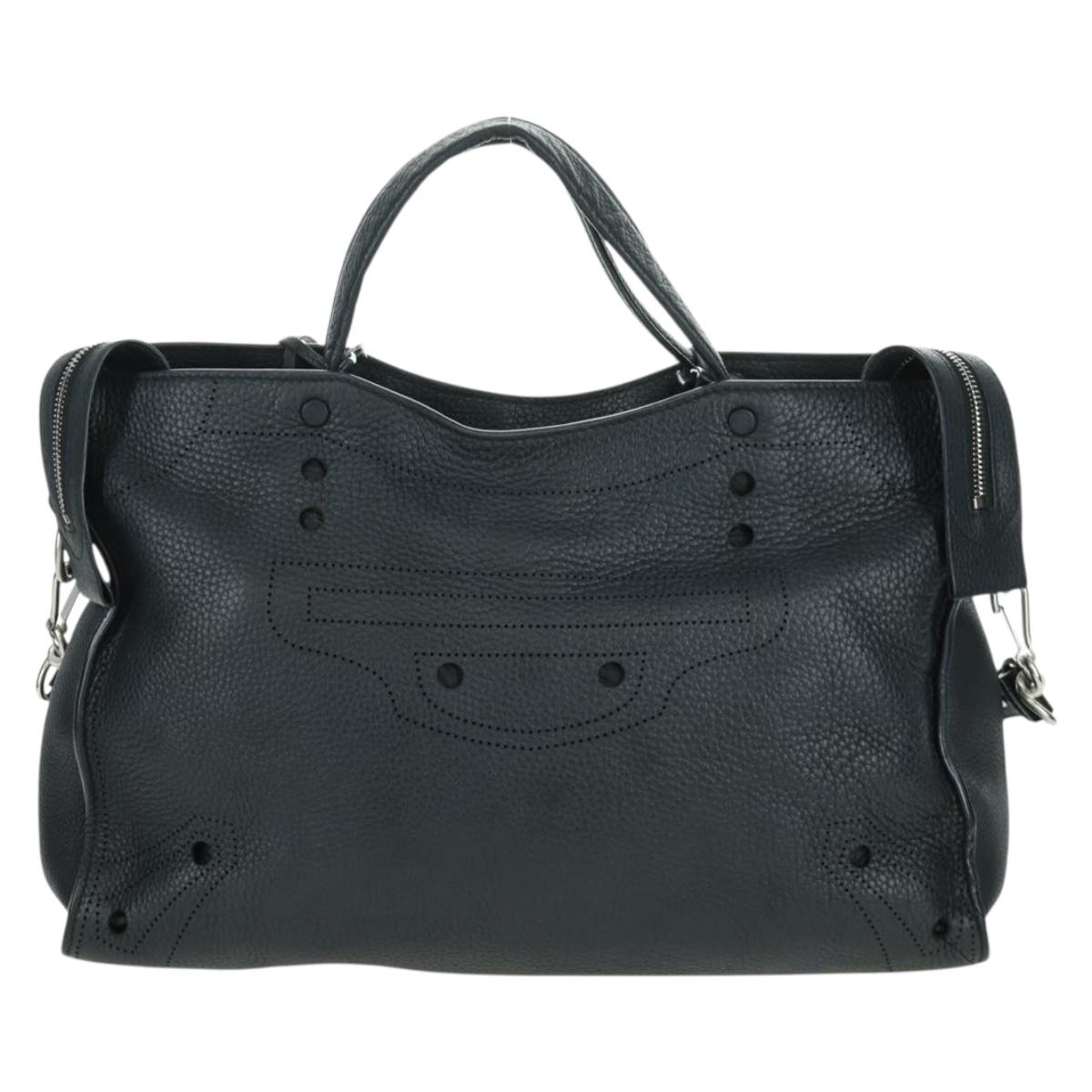 BALENCIAGA Blackout City Hand Bag Leather 2way Black Silver 443514 am11187SAM