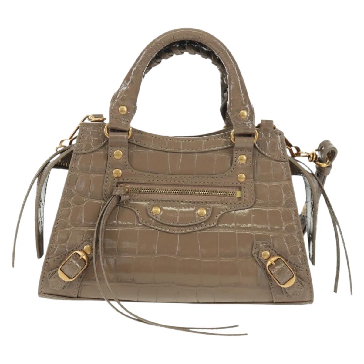 BALENCIAGA Neo Classic City Hand Bag Patent 2way Gray Gold 638524 Auth am10547SAM