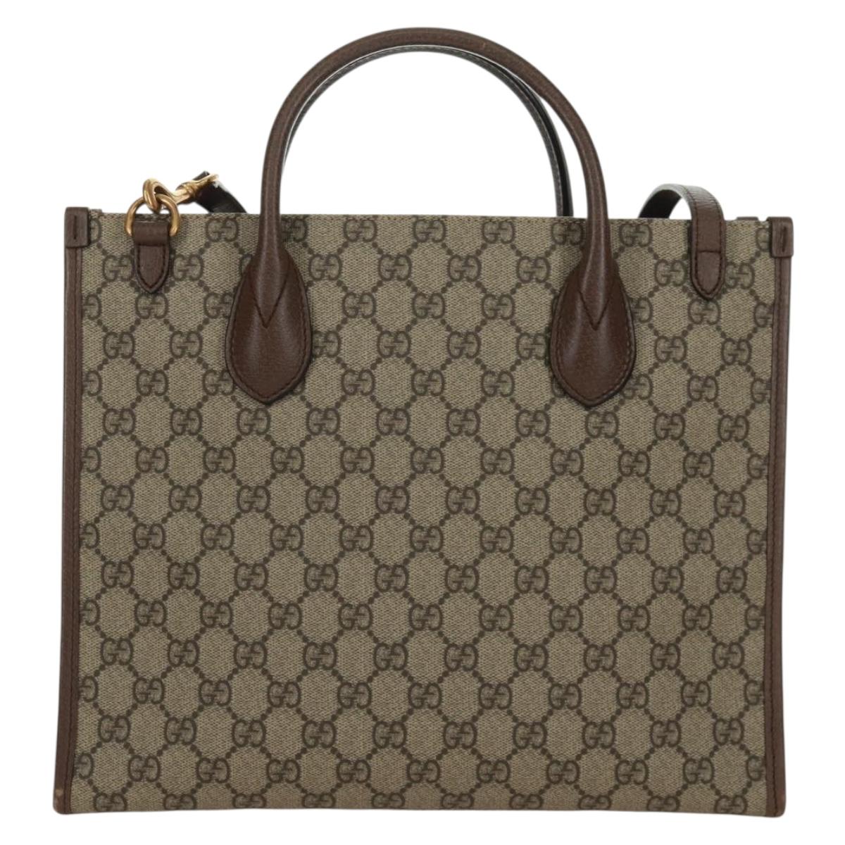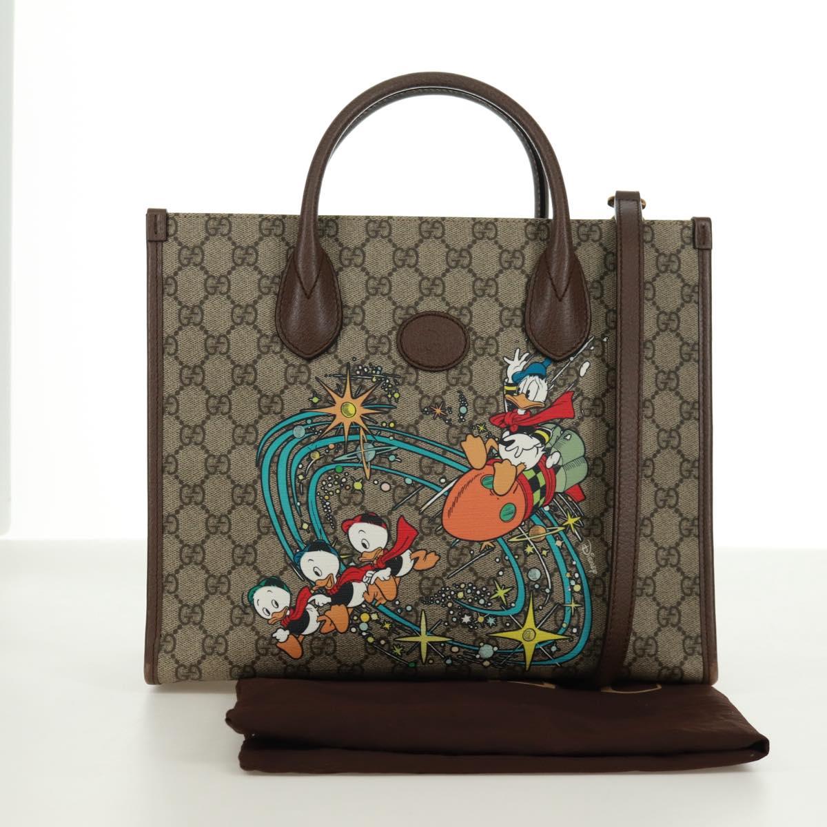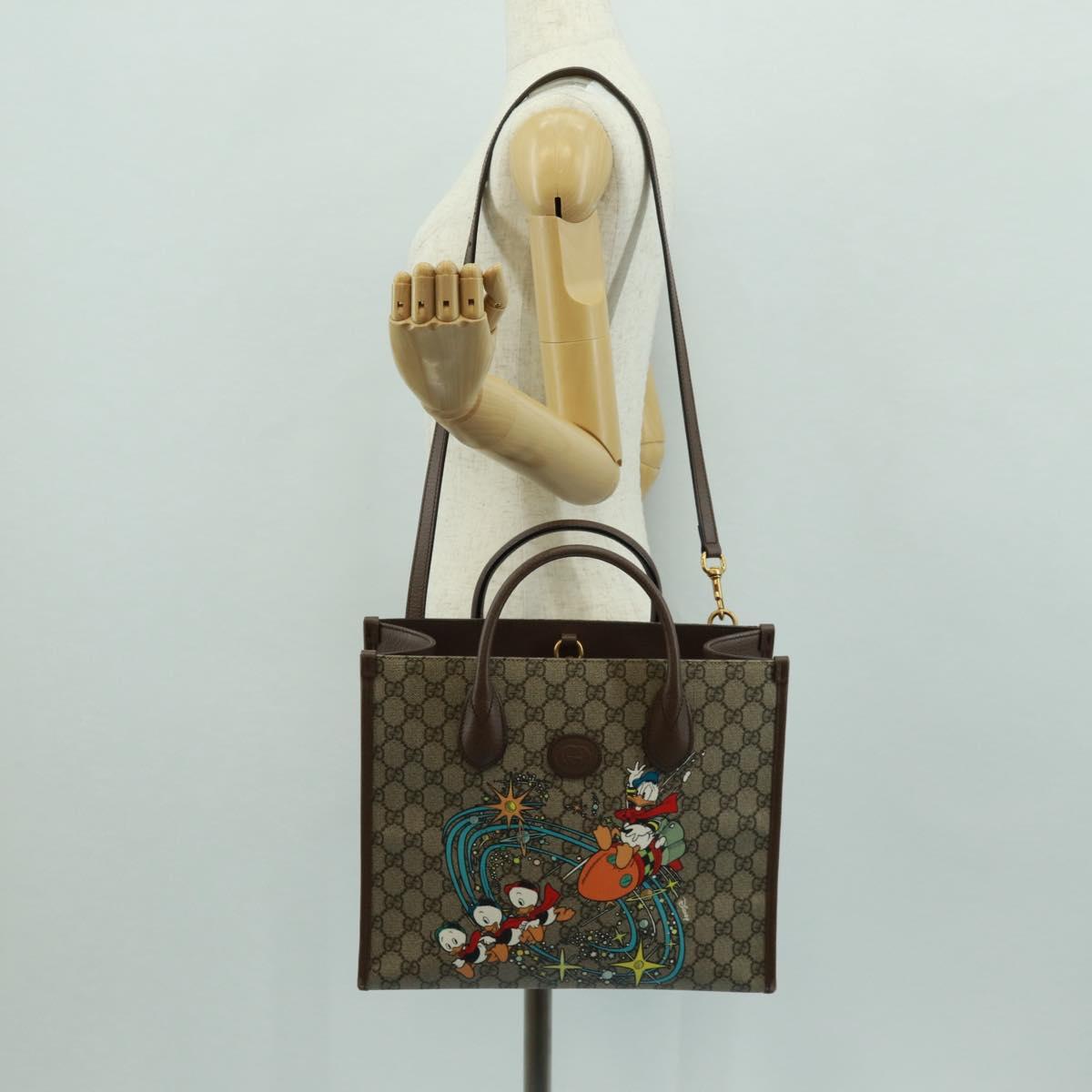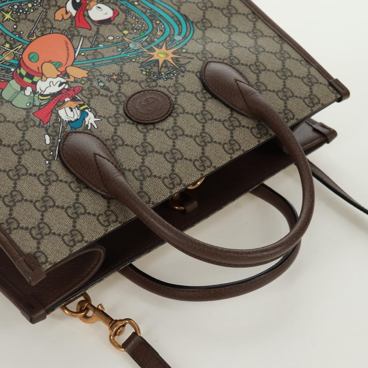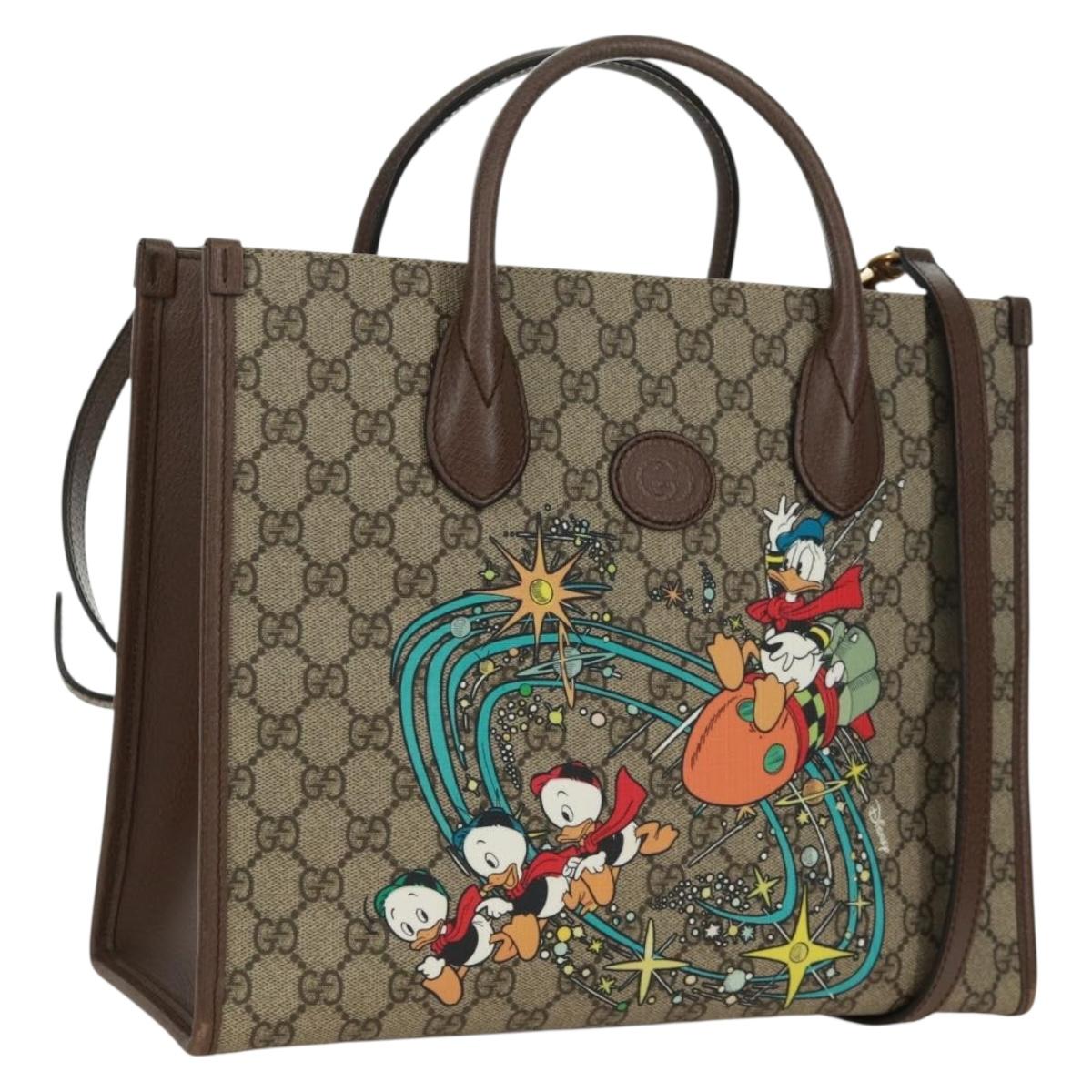 GUCCI GG Supreme Donald duck Hand Bag PVC 2way Beige Gold 648134 Auth 161733SAM