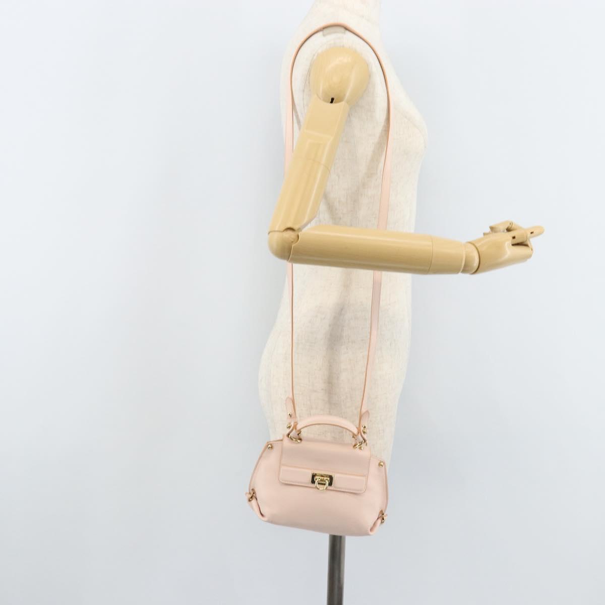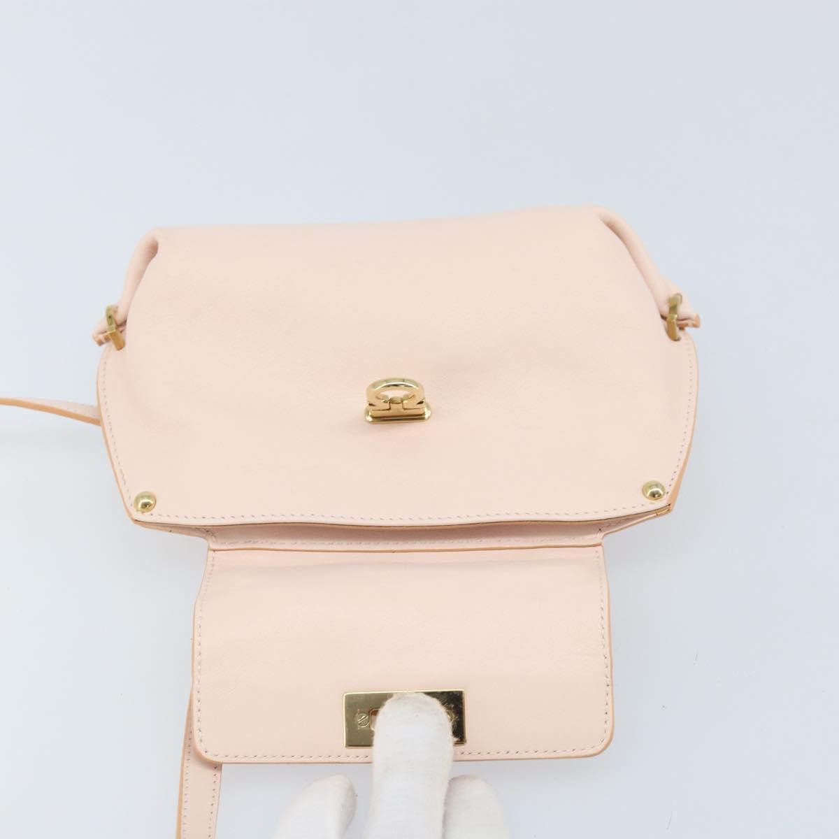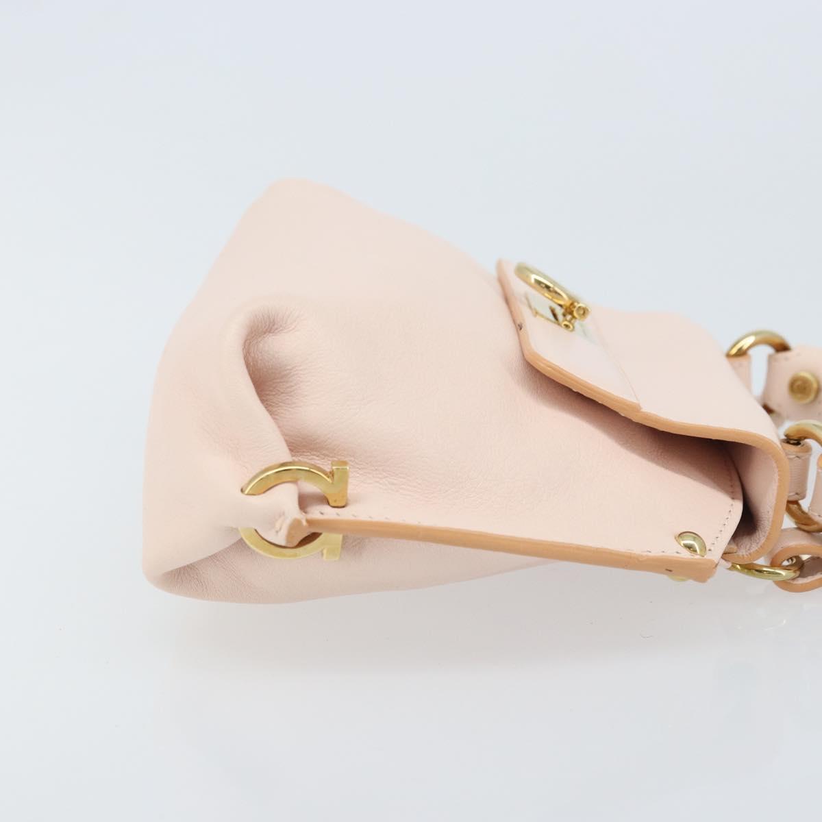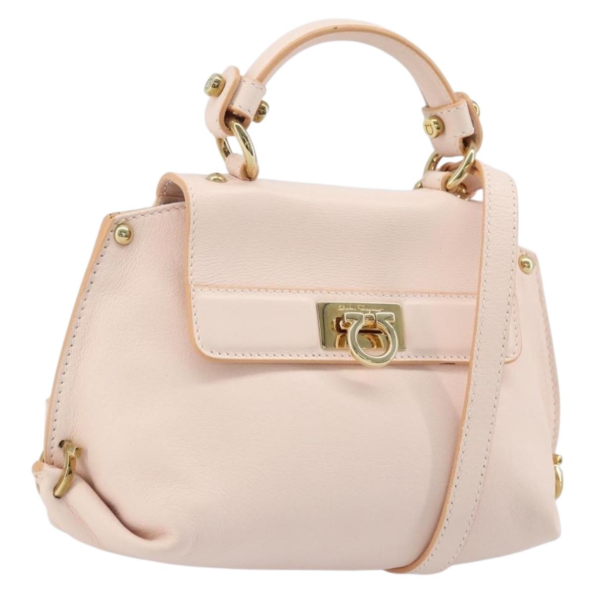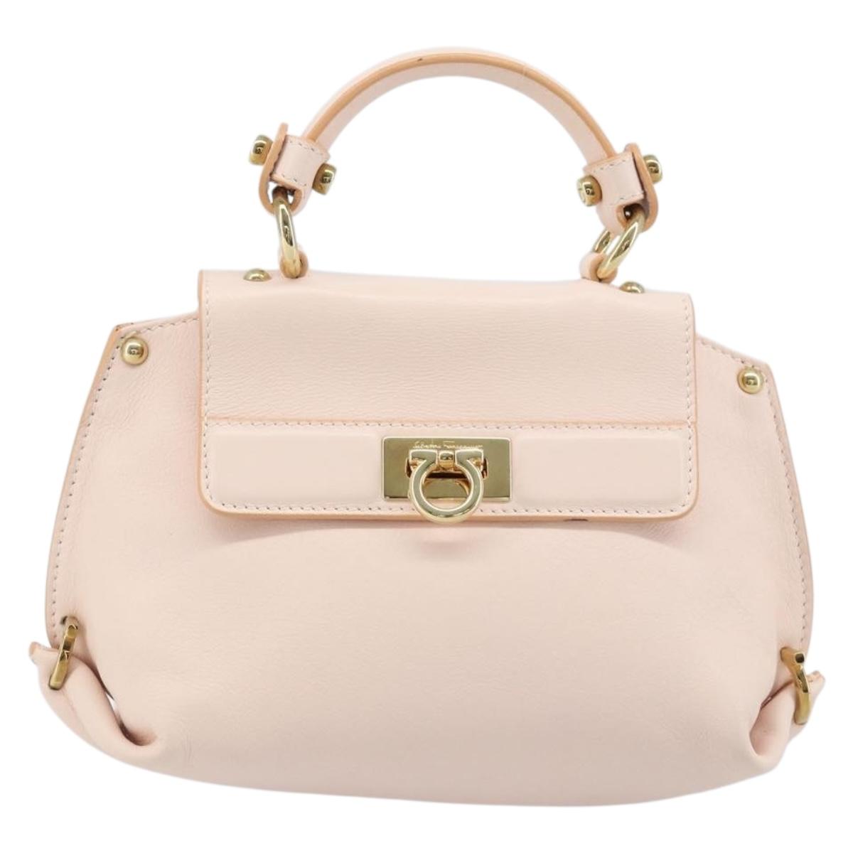 Salvatore Ferragamo Gancini Hand Bag Leather 2way Pink Gold Auth AMZ564A