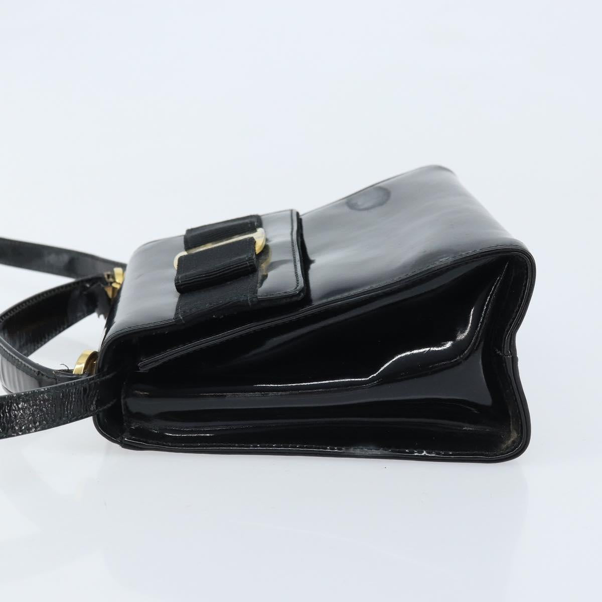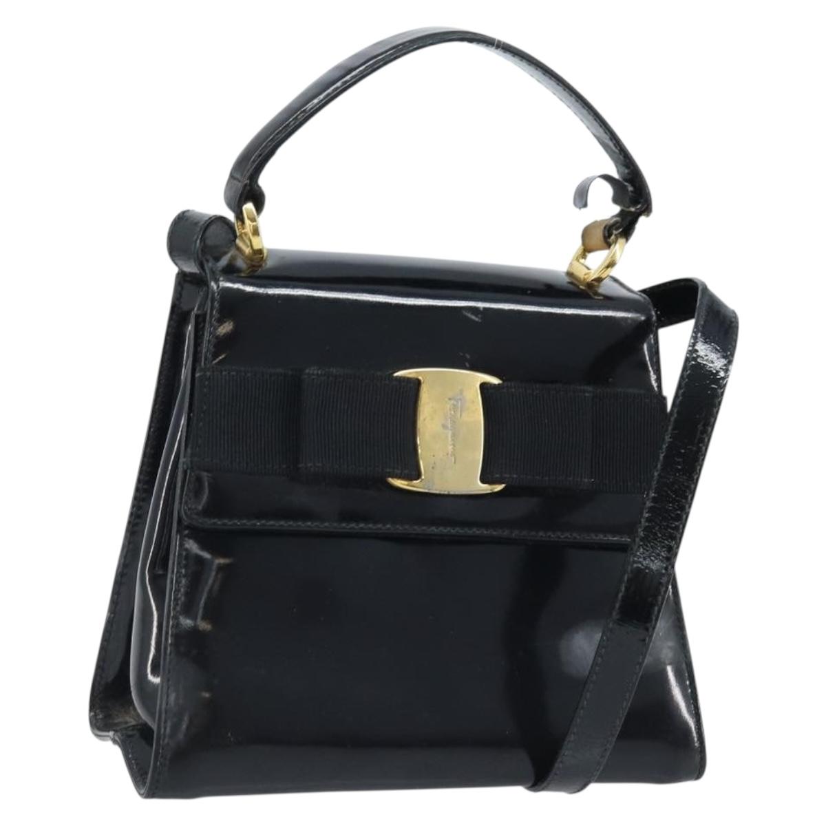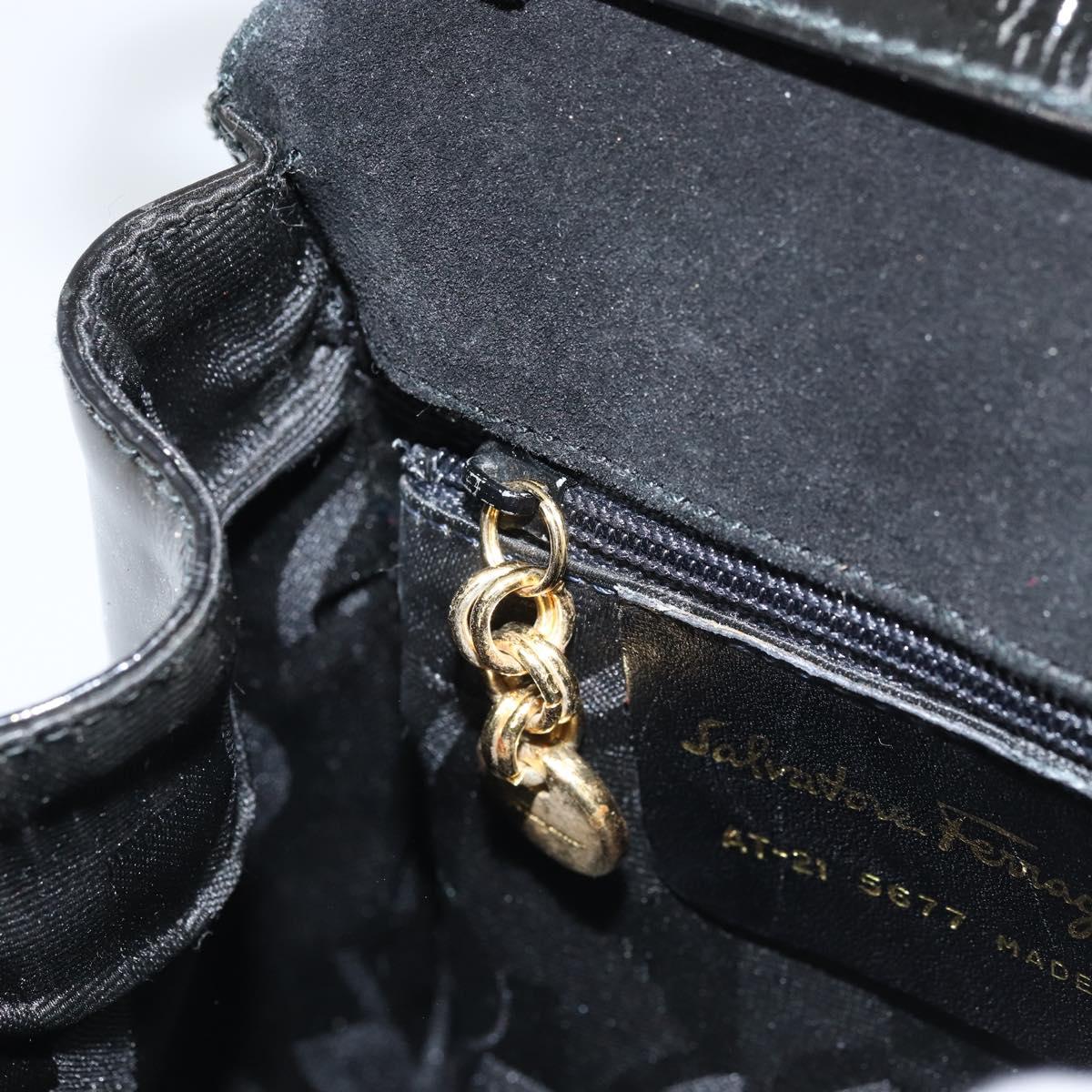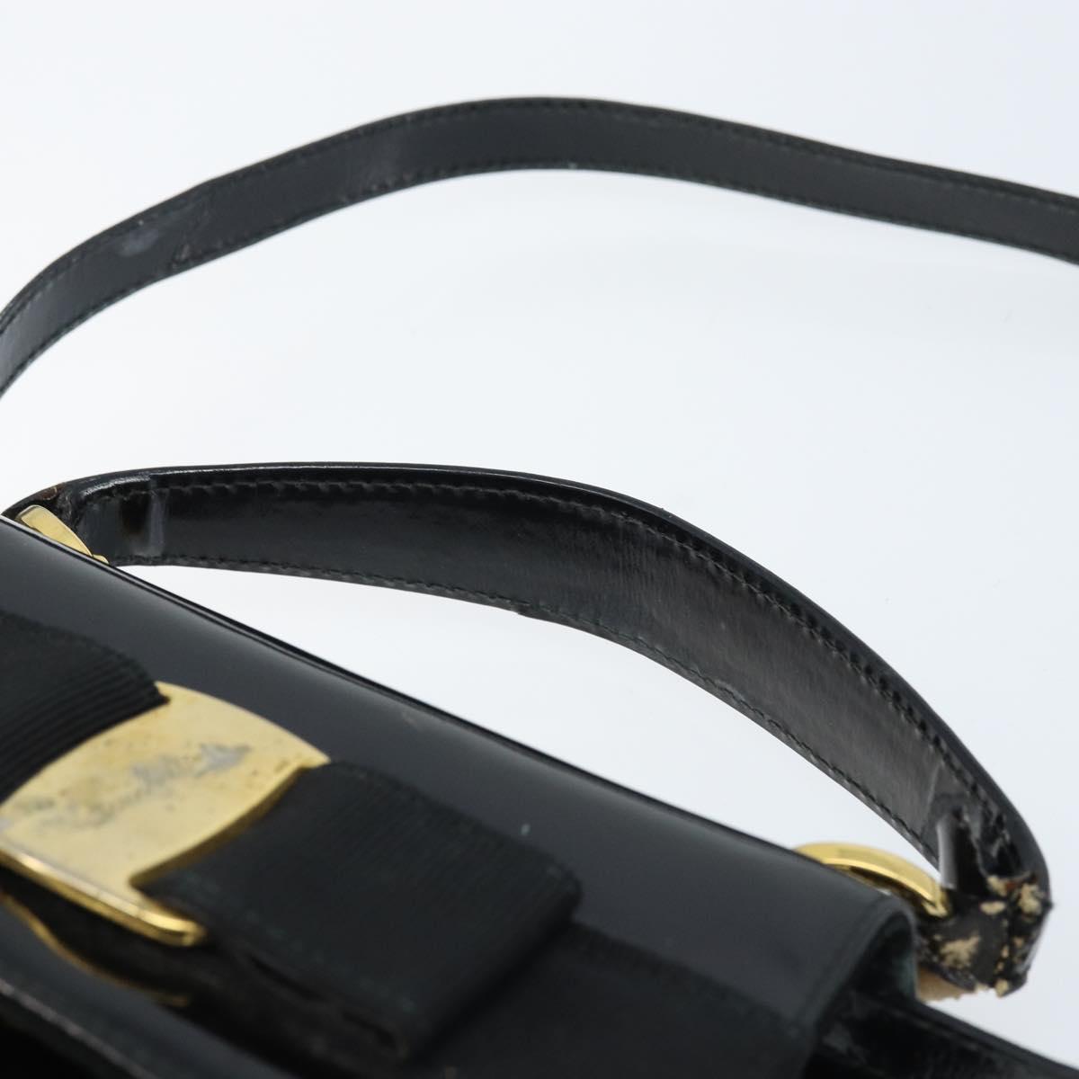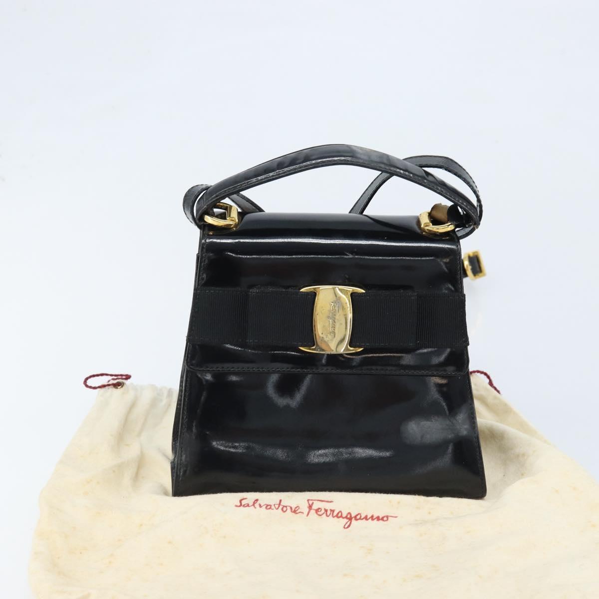 Salvatore Ferragamo Vala Hand Bag Patent leather 2way Black Gold Auth LNZ738
