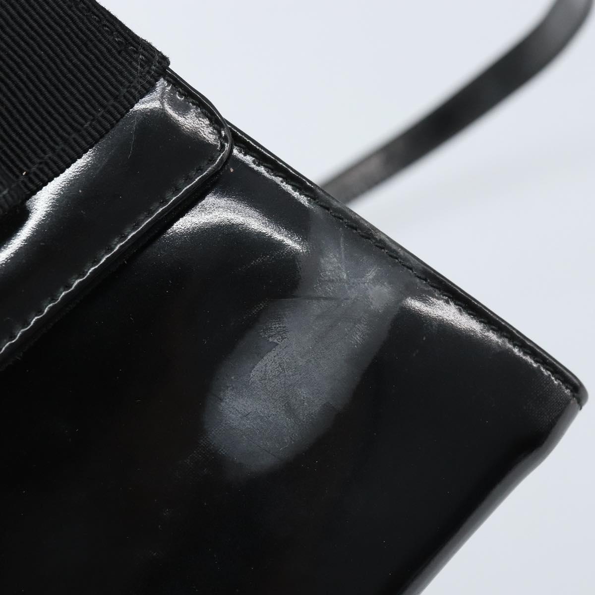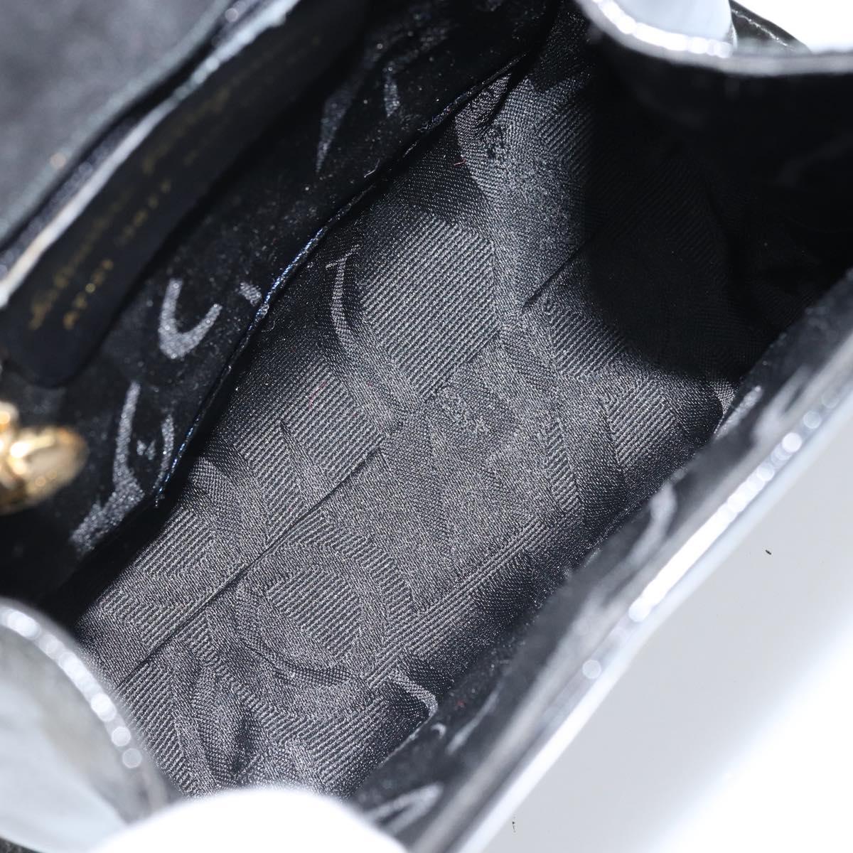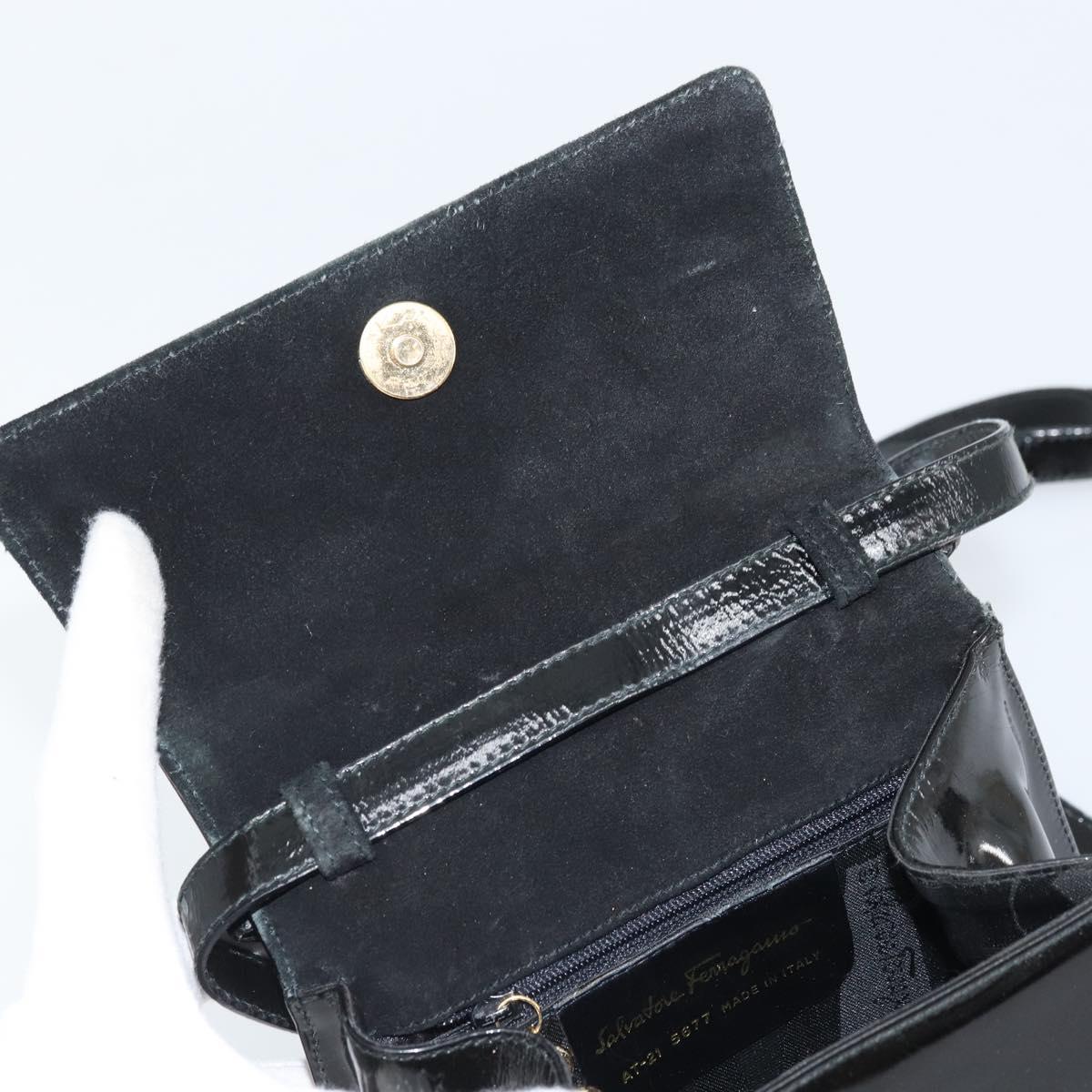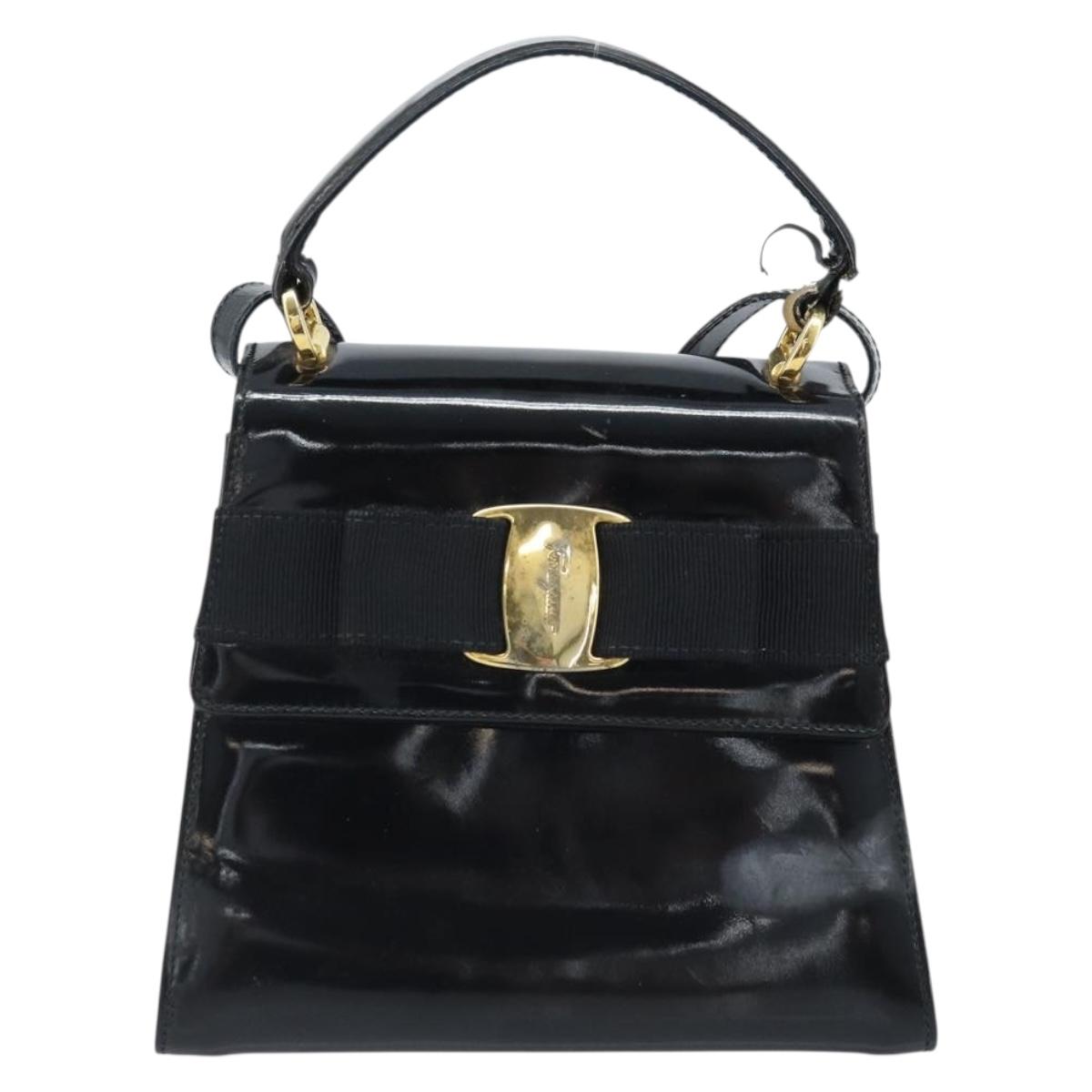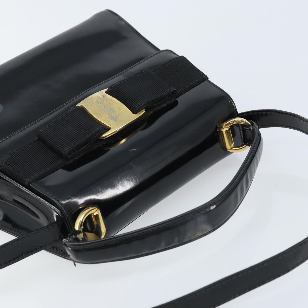 Salvatore Ferragamo Vala Hand Bag Patent leather 2way Black Gold Auth LNZ738