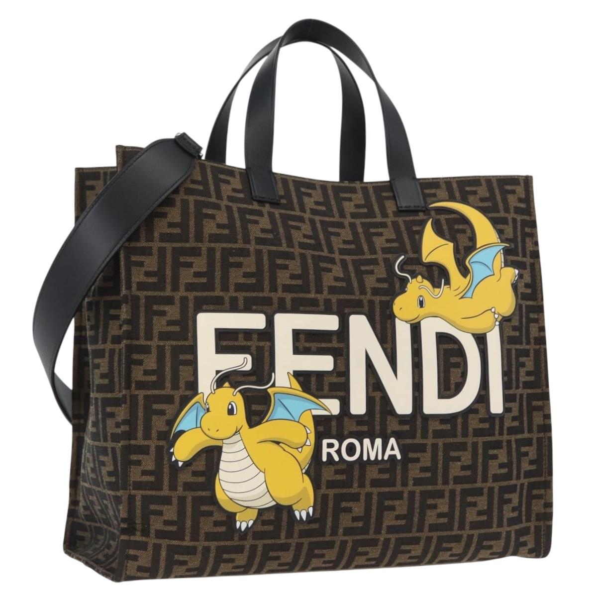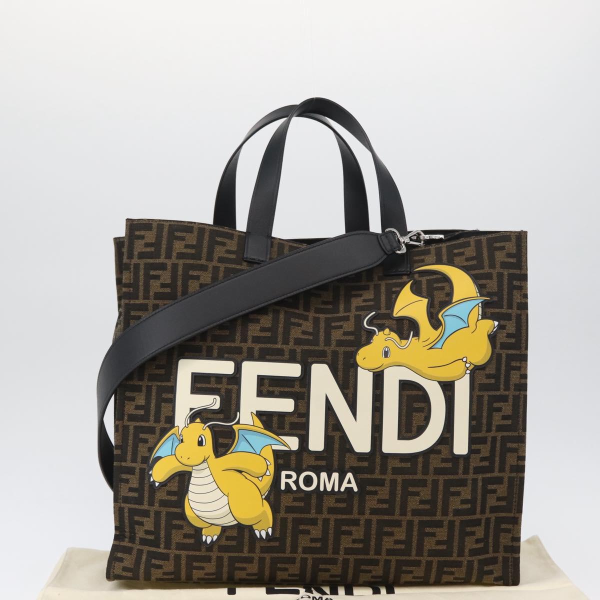 FENDI Zucca Canvas Fragment x Pokemon Hand Bag 2way Brown Black Auth 171492SM