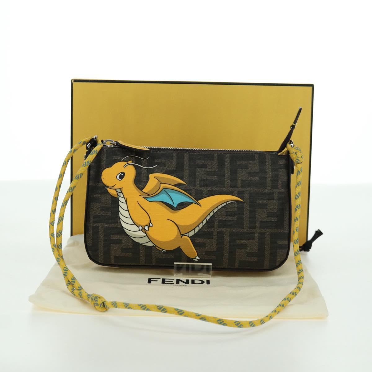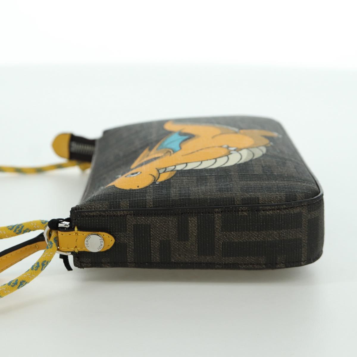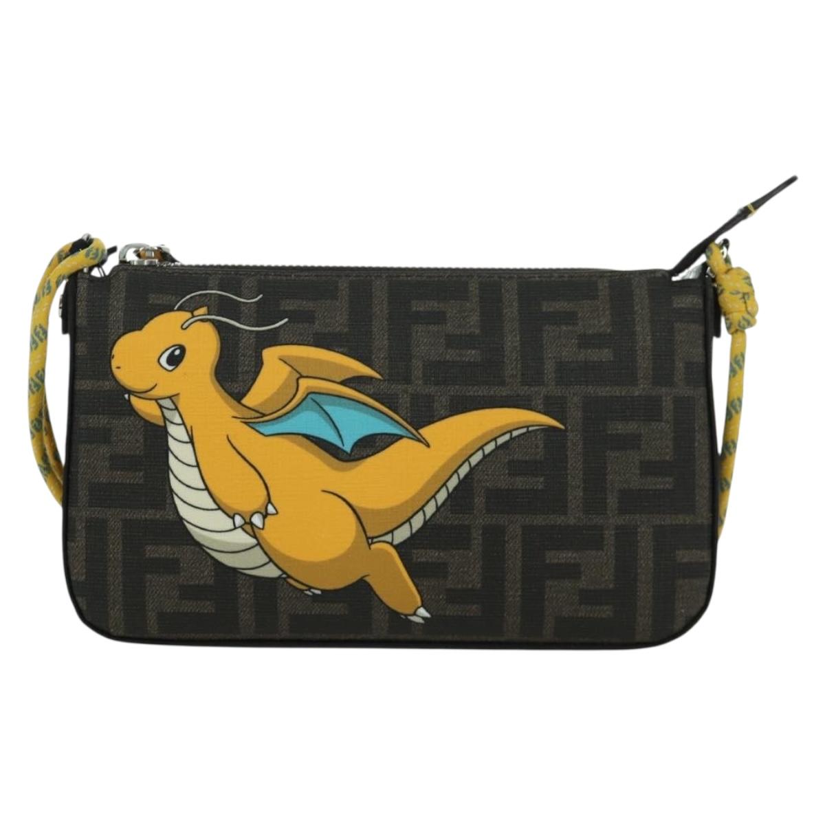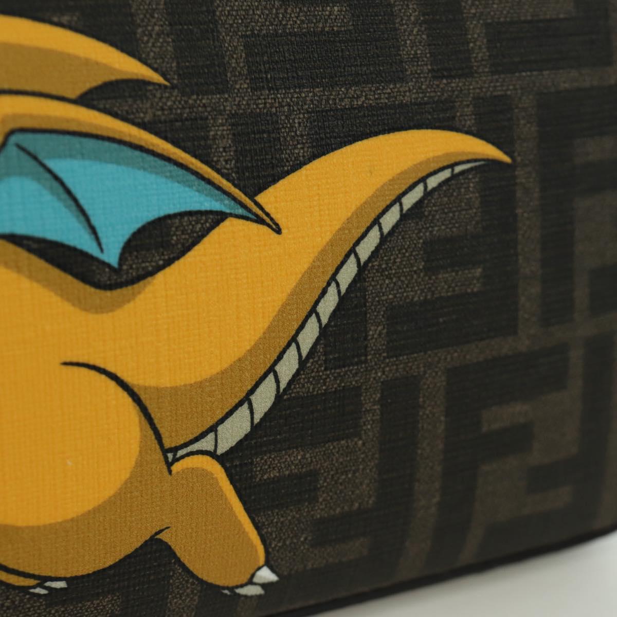 FENDI x FRGMT x POKEMON Zucca Canvas Dragonfly Bag Black Brown Auth 167097SM