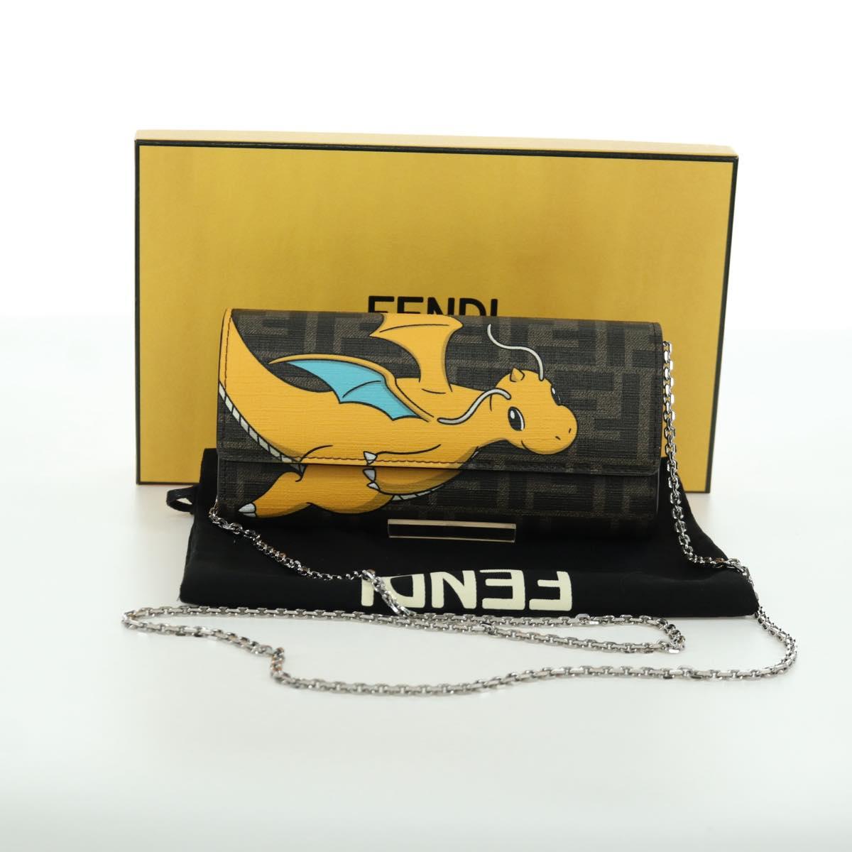 FENDI xFRGMTxPOKEMON Zucca Canvas Chain Wallet Dragon Bag Black Auth 167109SM