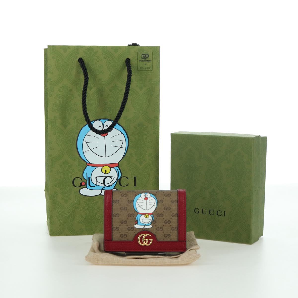 GUCCI Micro GG Supreme Doraemon Compact Wallet PVC Beige 647788 Auth ARZ168SAM
