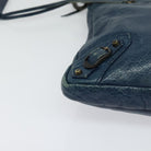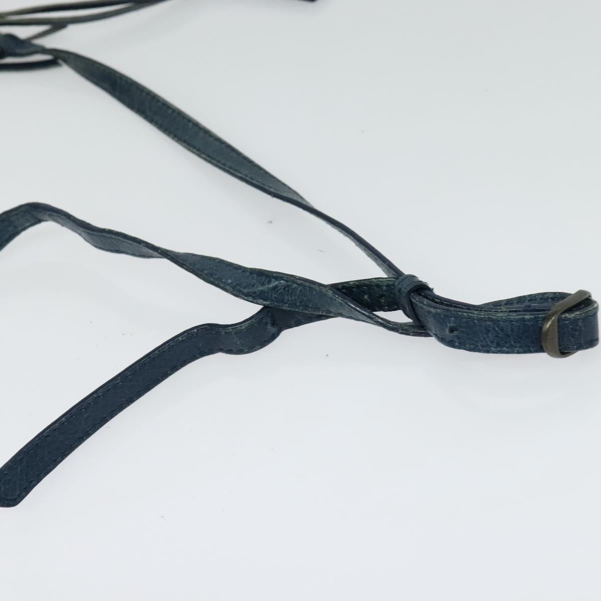 BALENCIAGA Classic Flat Shoulder Bag Leather Blue Auth bs24746