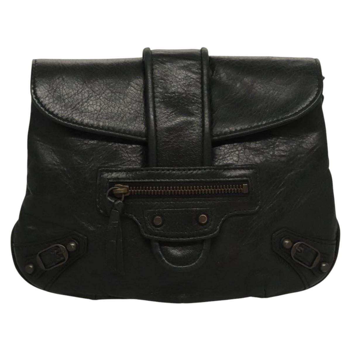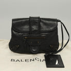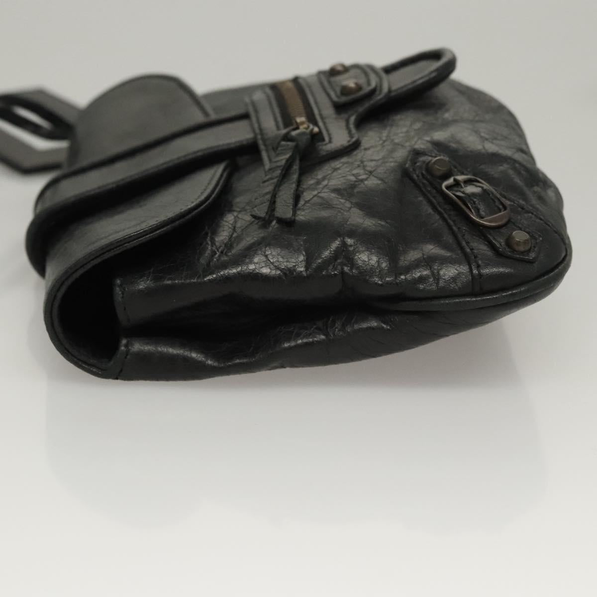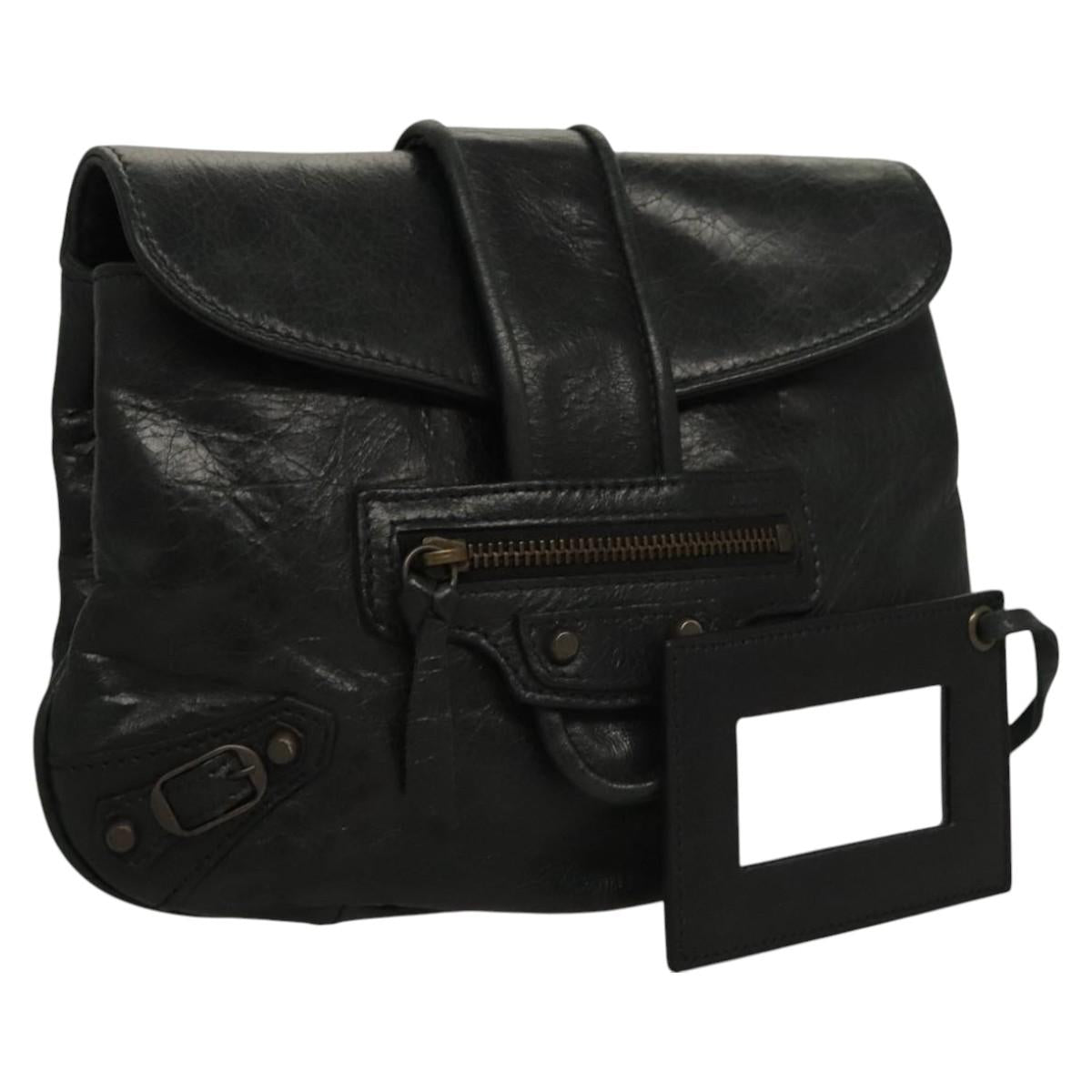 BALENCIAGA Classic Pouch Leather Black Auth fm4496V