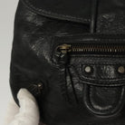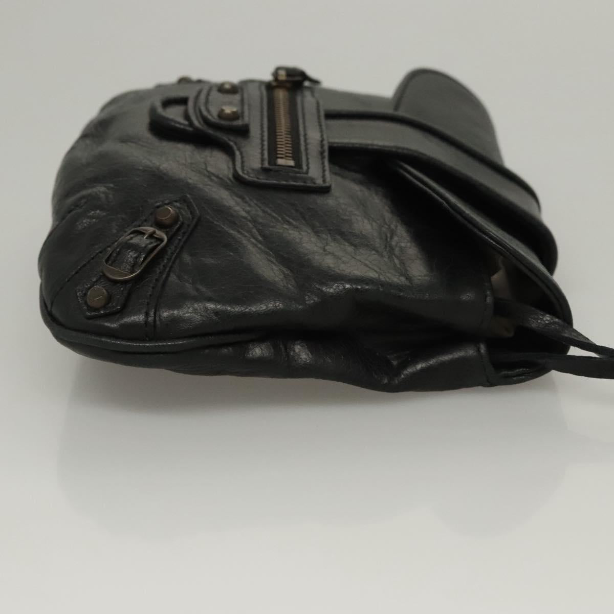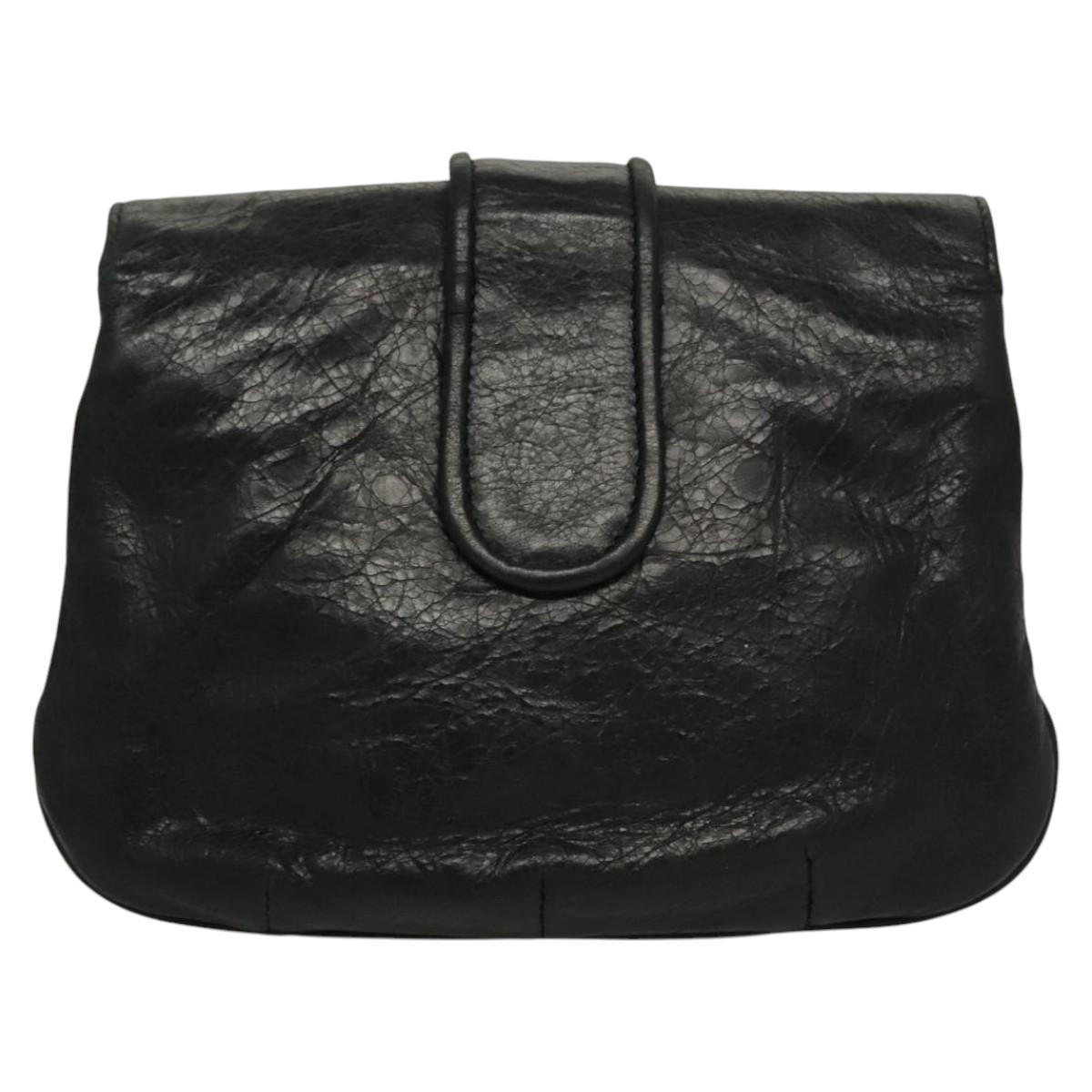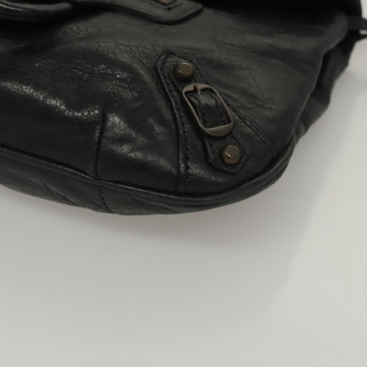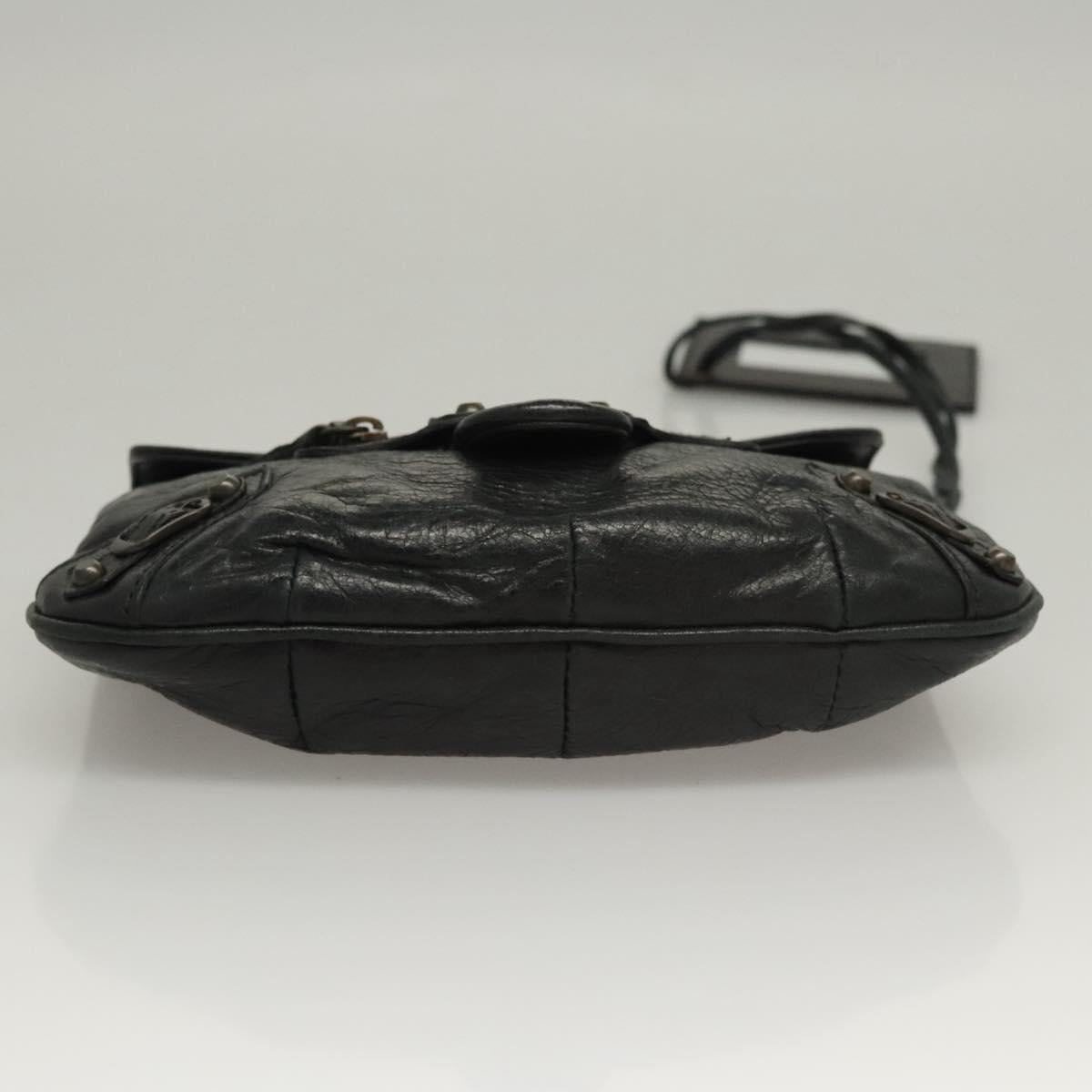 BALENCIAGA Classic Pouch Leather Black Auth fm4496V