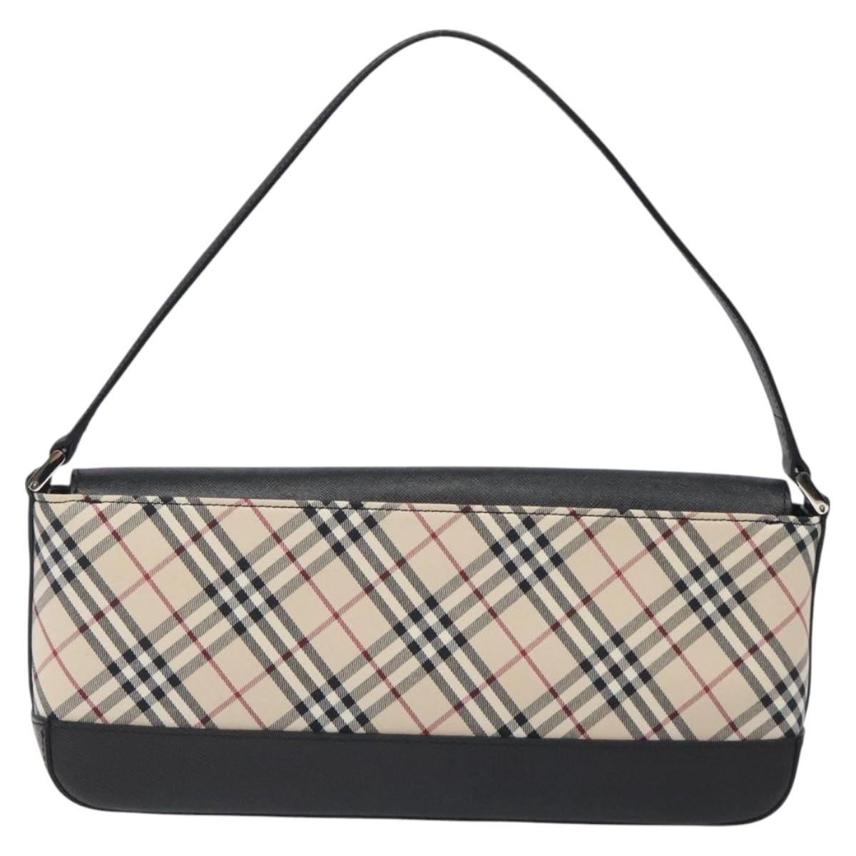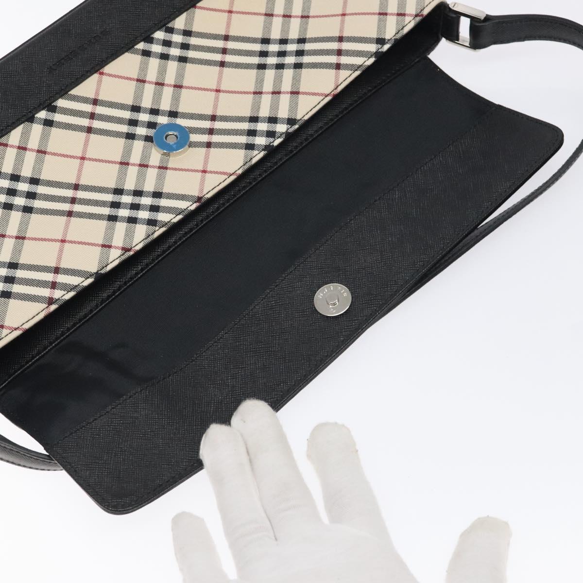 BURBERRY Nova Check Shoulder Bag Canvas Leather Beige Silver Auth 126873V