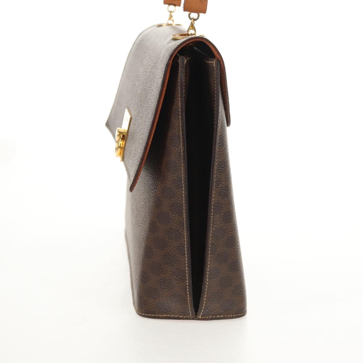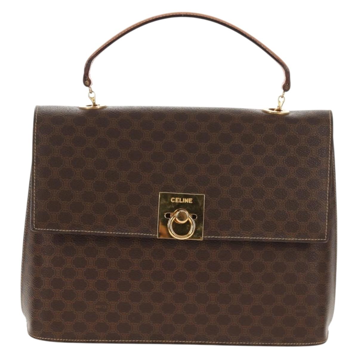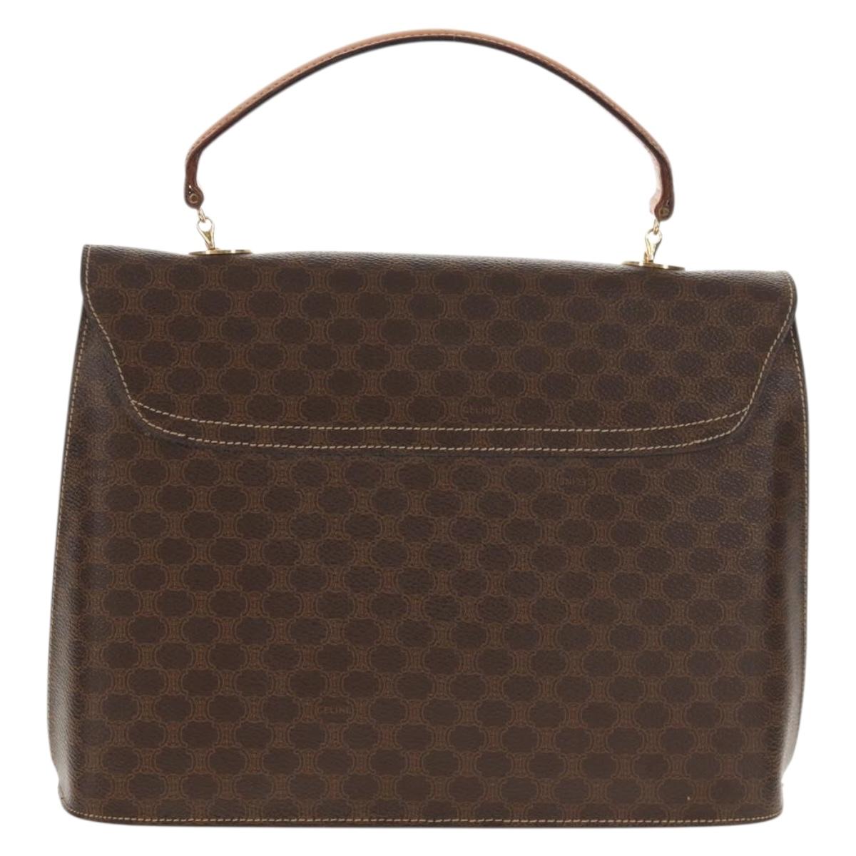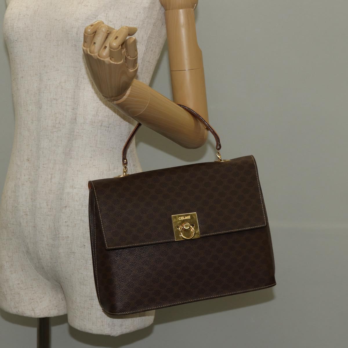 CELINE Macadam Canvas Hand Bag PVC Leather 2way Brown Gold Auth am9343V