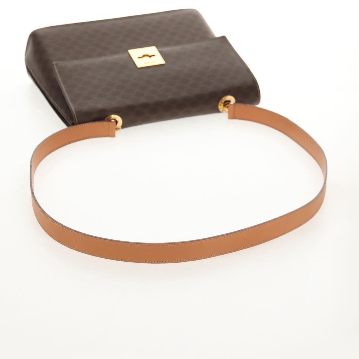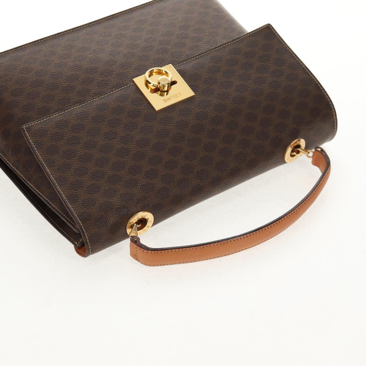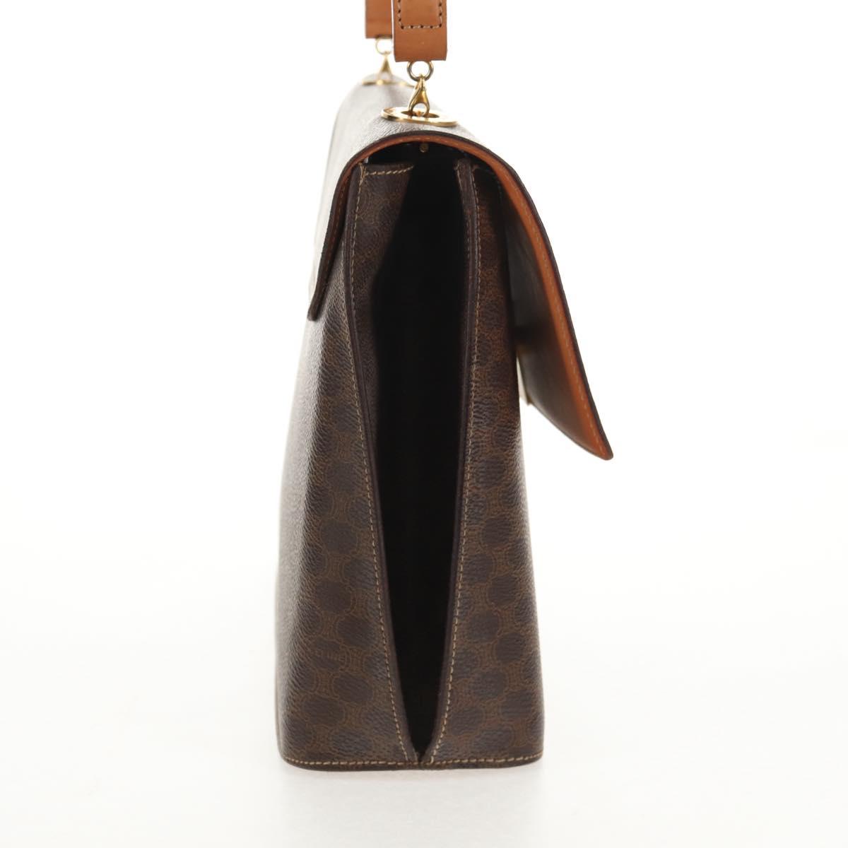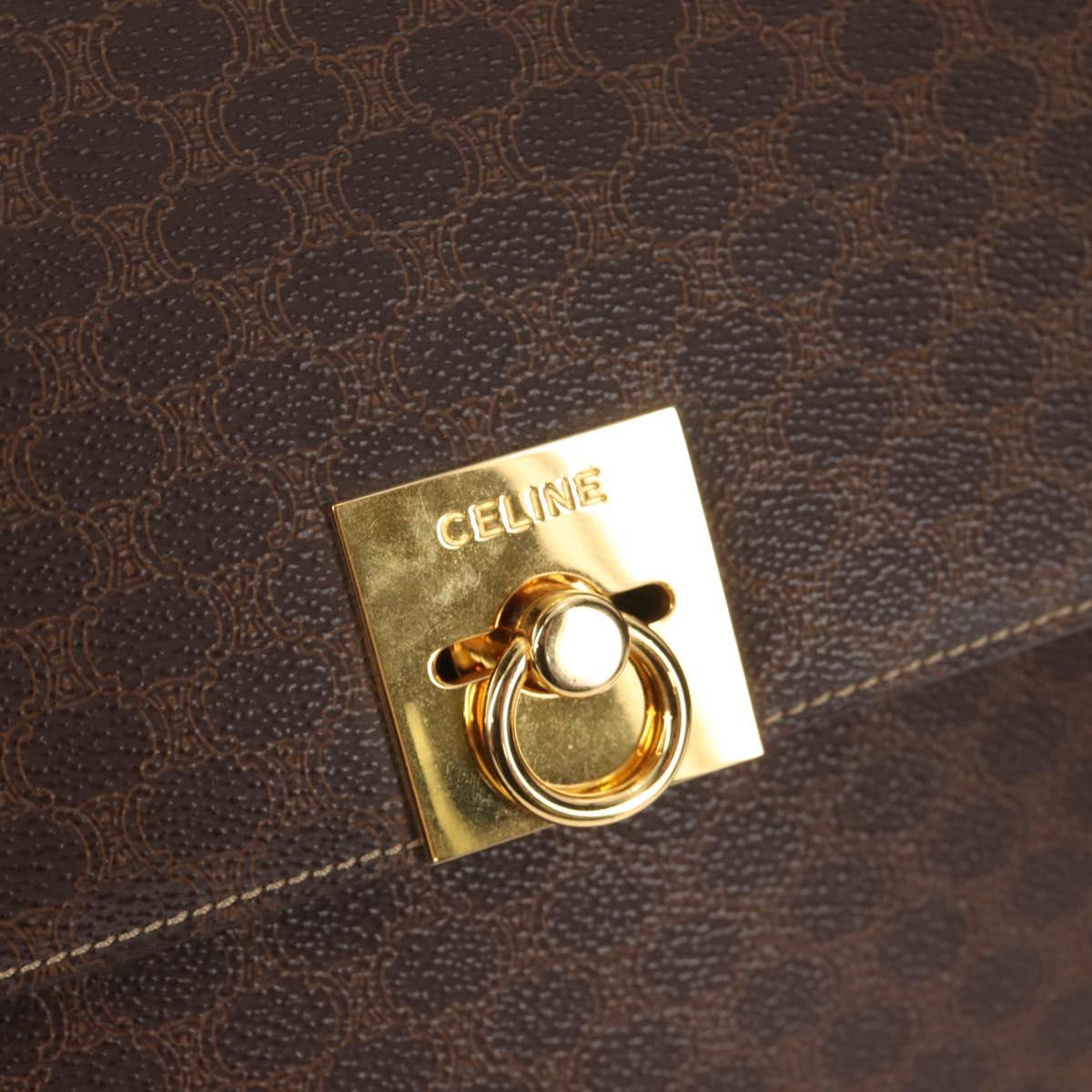 CELINE Macadam Canvas Hand Bag PVC Leather 2way Brown Gold Auth am9343V