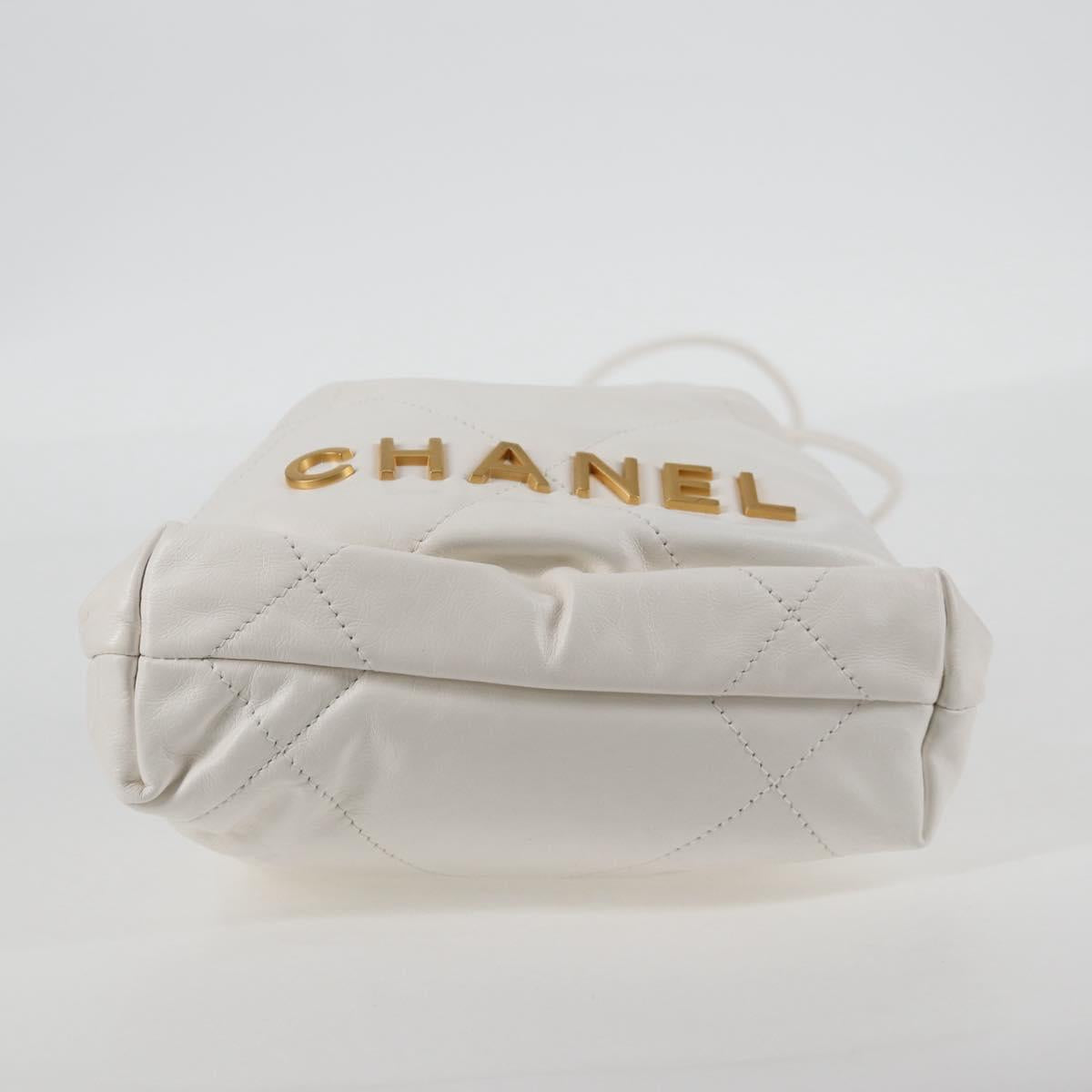 CHANEL Bicolore Chain Chanel 22 Mini Bag Lamb Skin 2way White CC Auth BD2189M