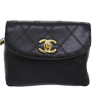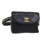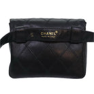 CHANEL Bicolore Chain Waist bag Leather Black Gold CC Auth 90785AM