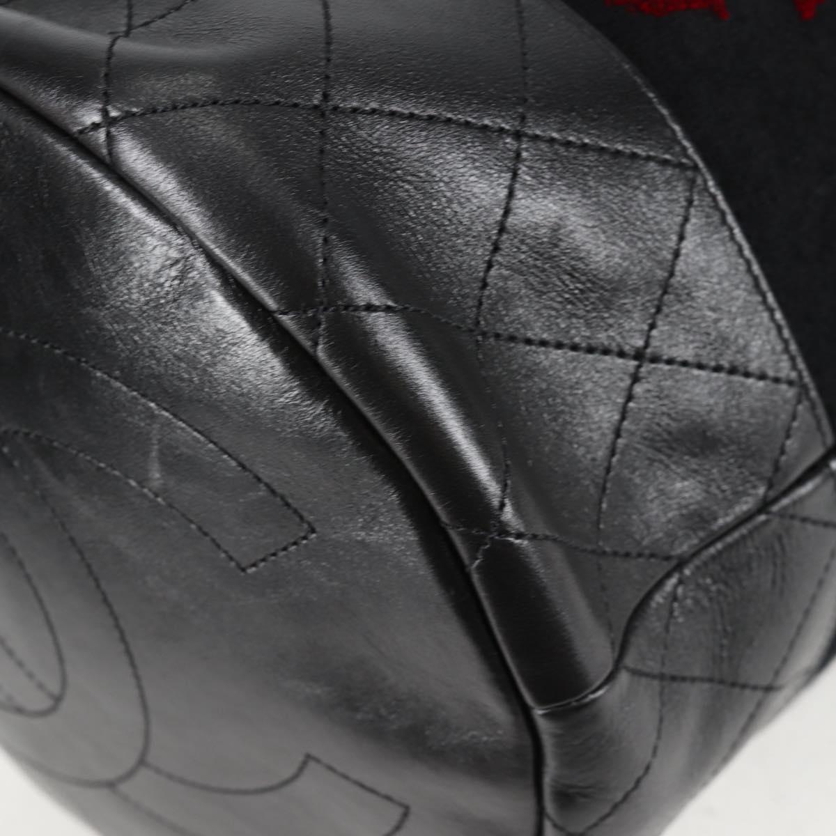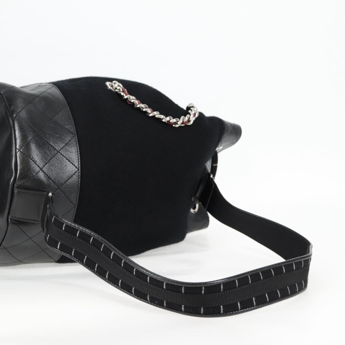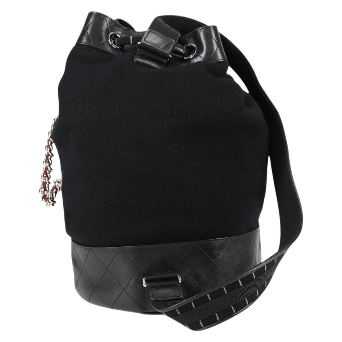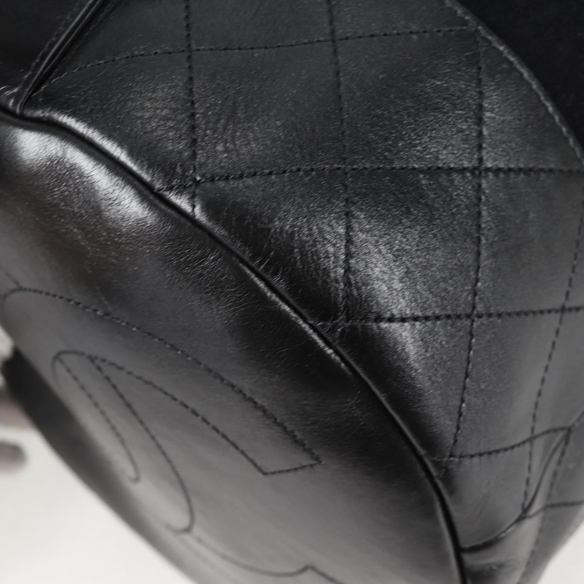 CHANEL Bicolore Shoulder Bag Wool Leather Black CC Auth 130048M