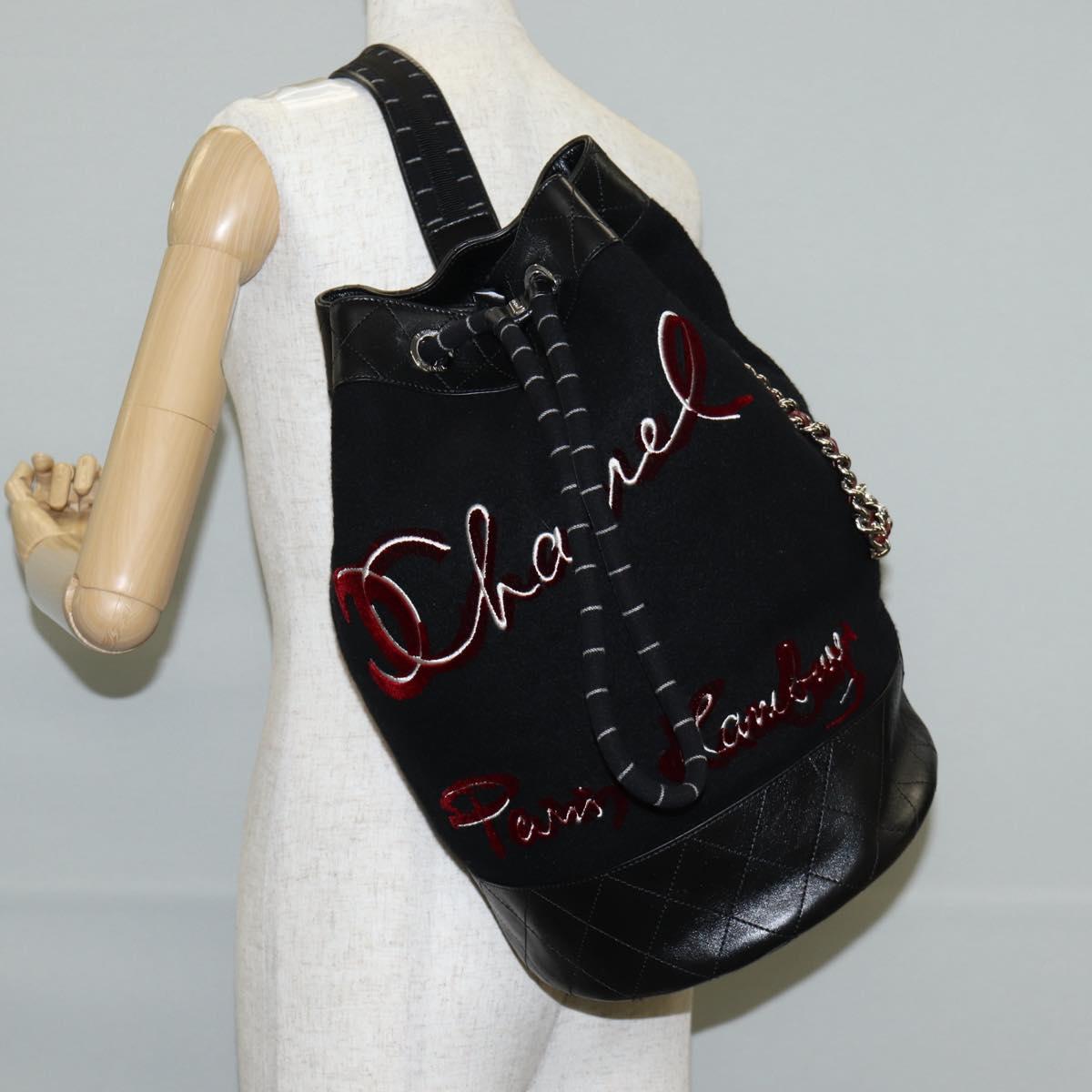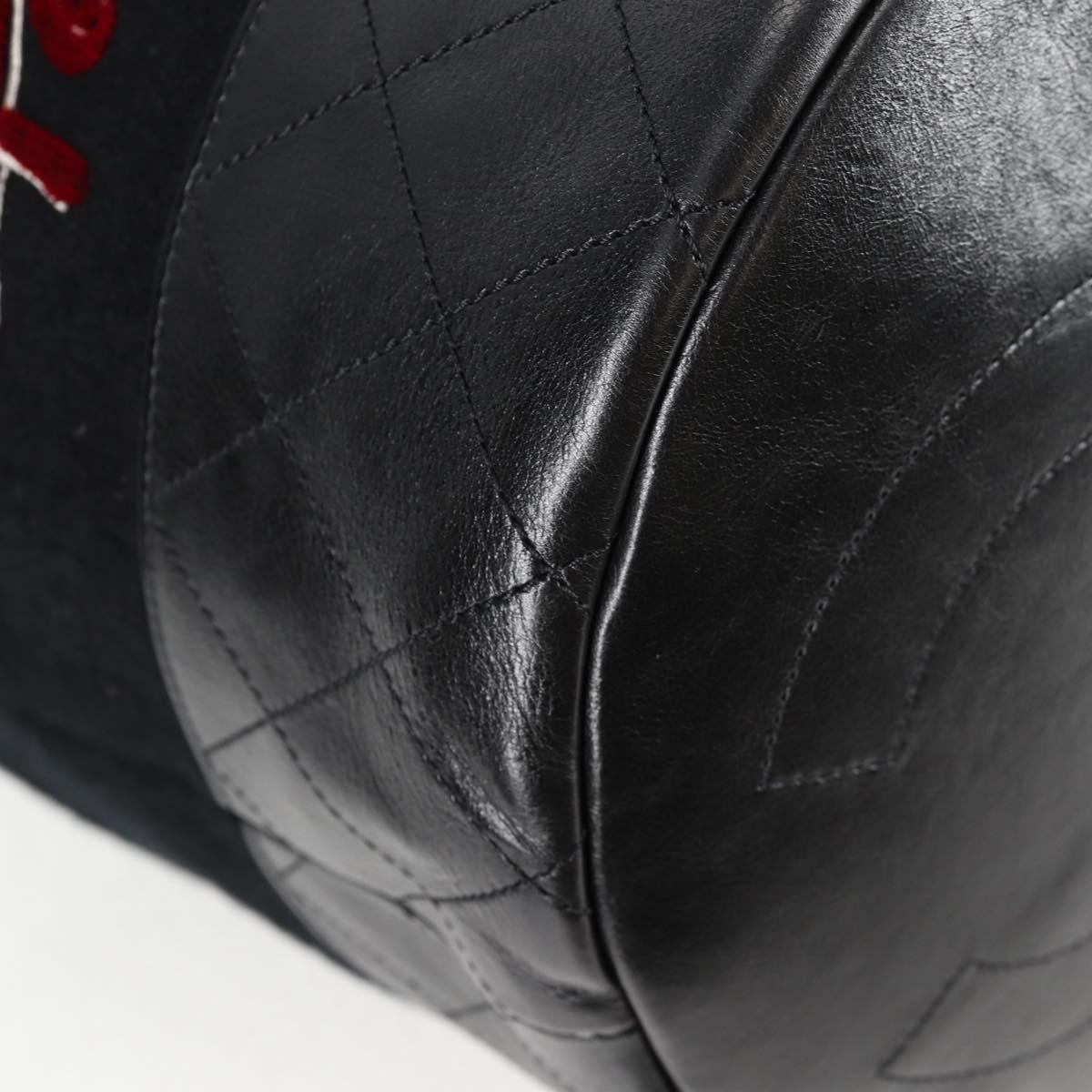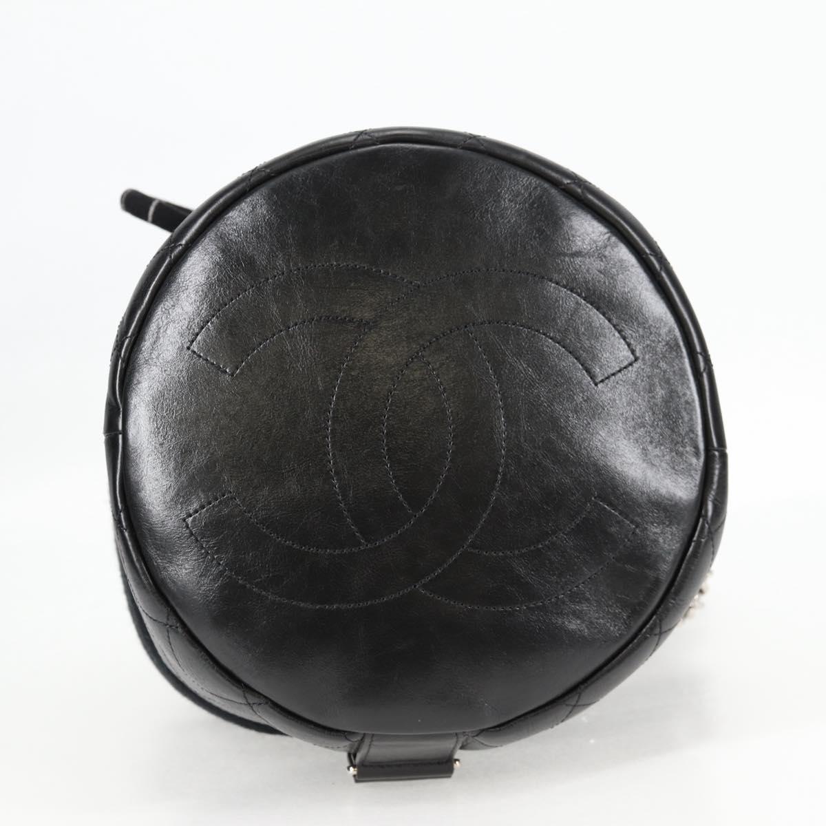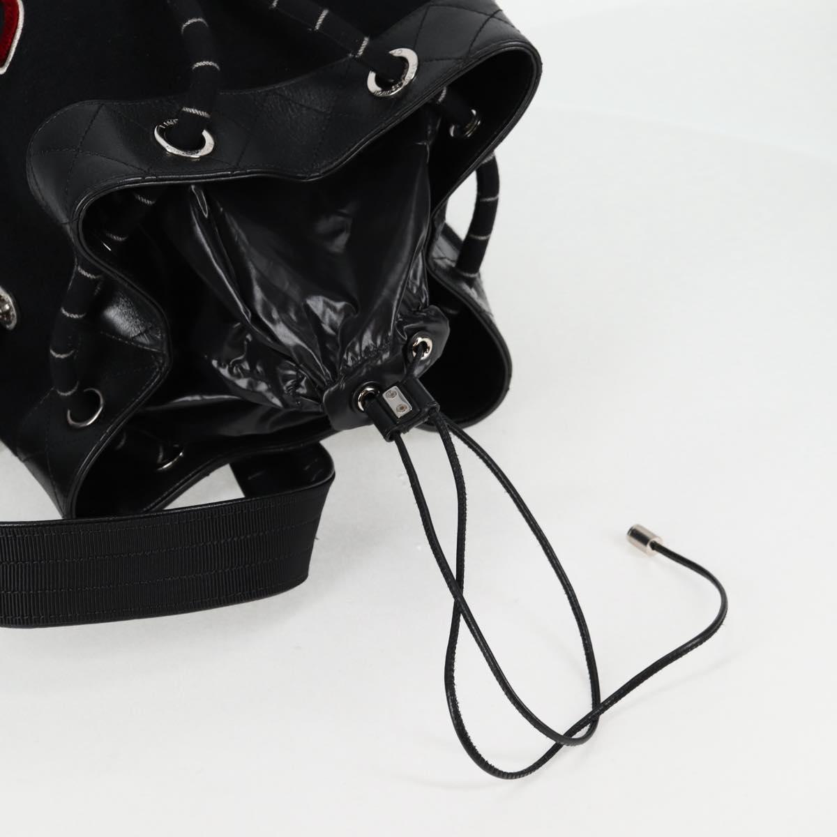 CHANEL Bicolore Shoulder Bag Wool Leather Black CC Auth 130048M