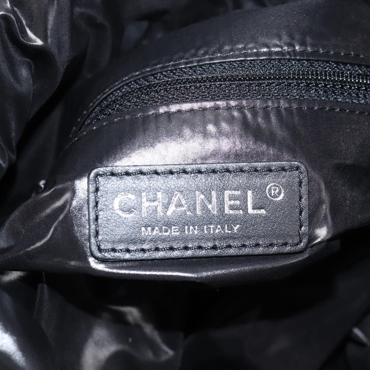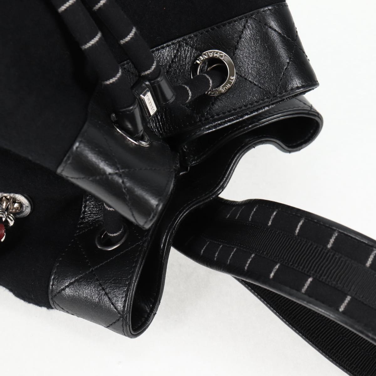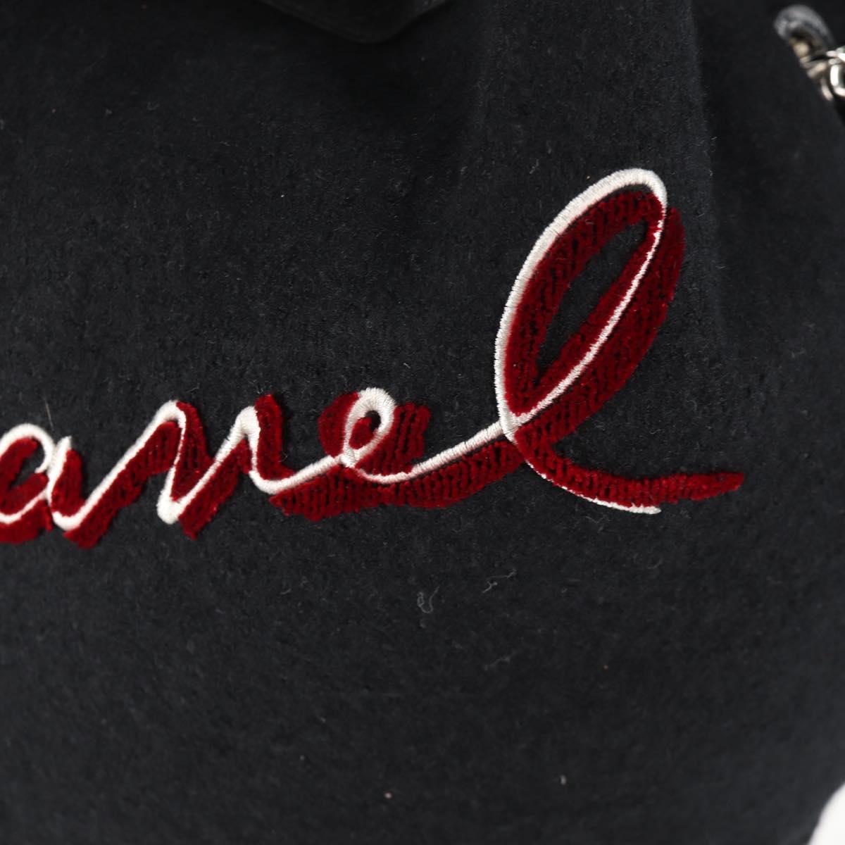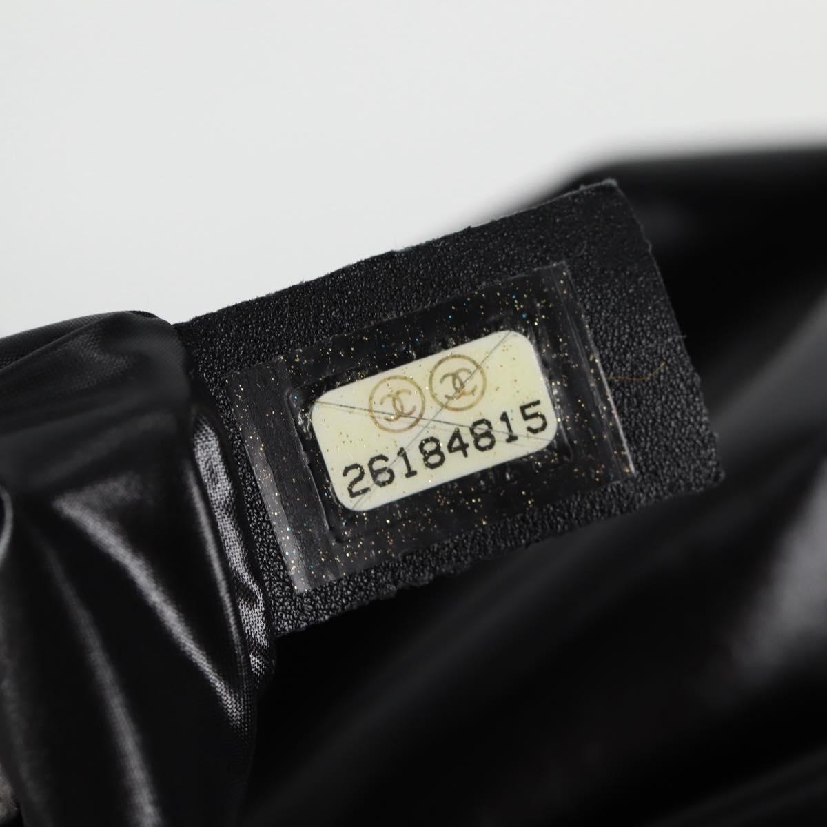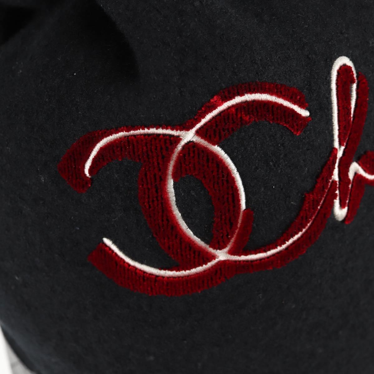 CHANEL Bicolore Shoulder Bag Wool Leather Black CC Auth 130048M