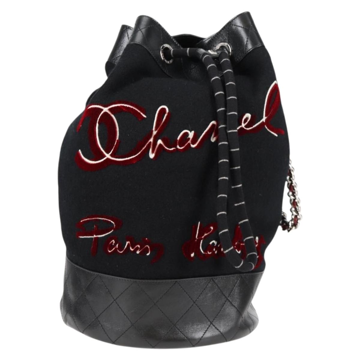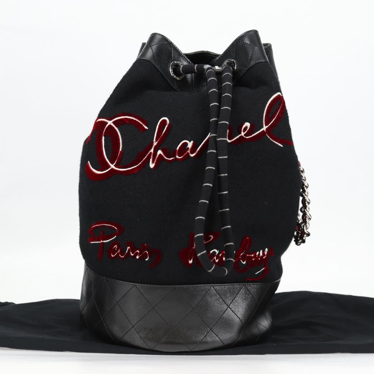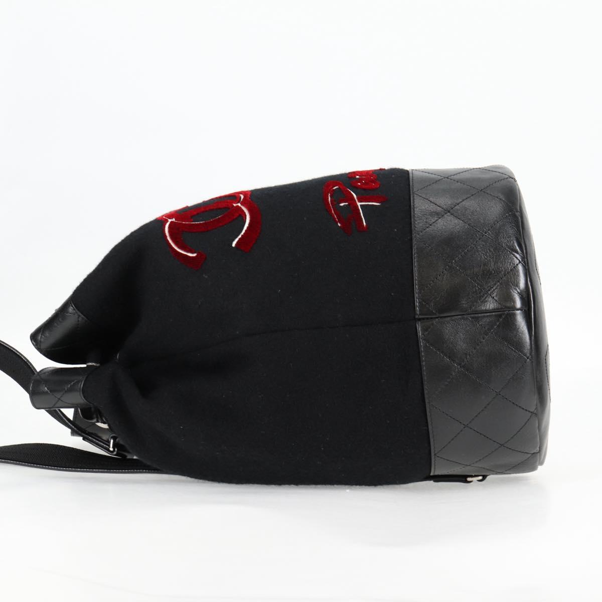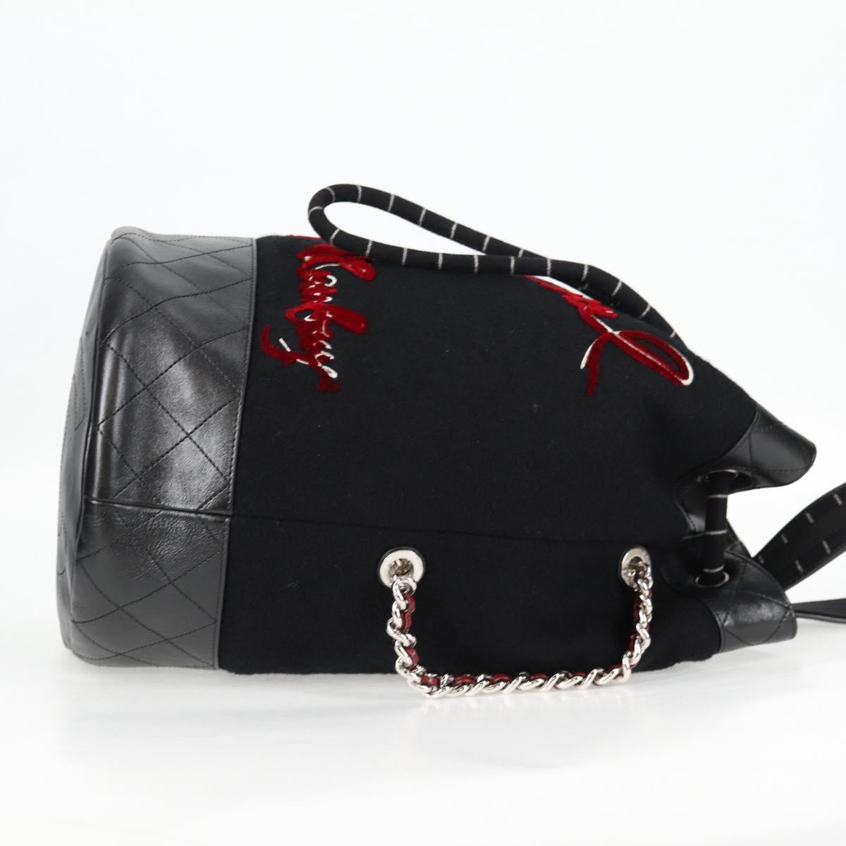 CHANEL Bicolore Shoulder Bag Wool Leather Black CC Auth 130048M