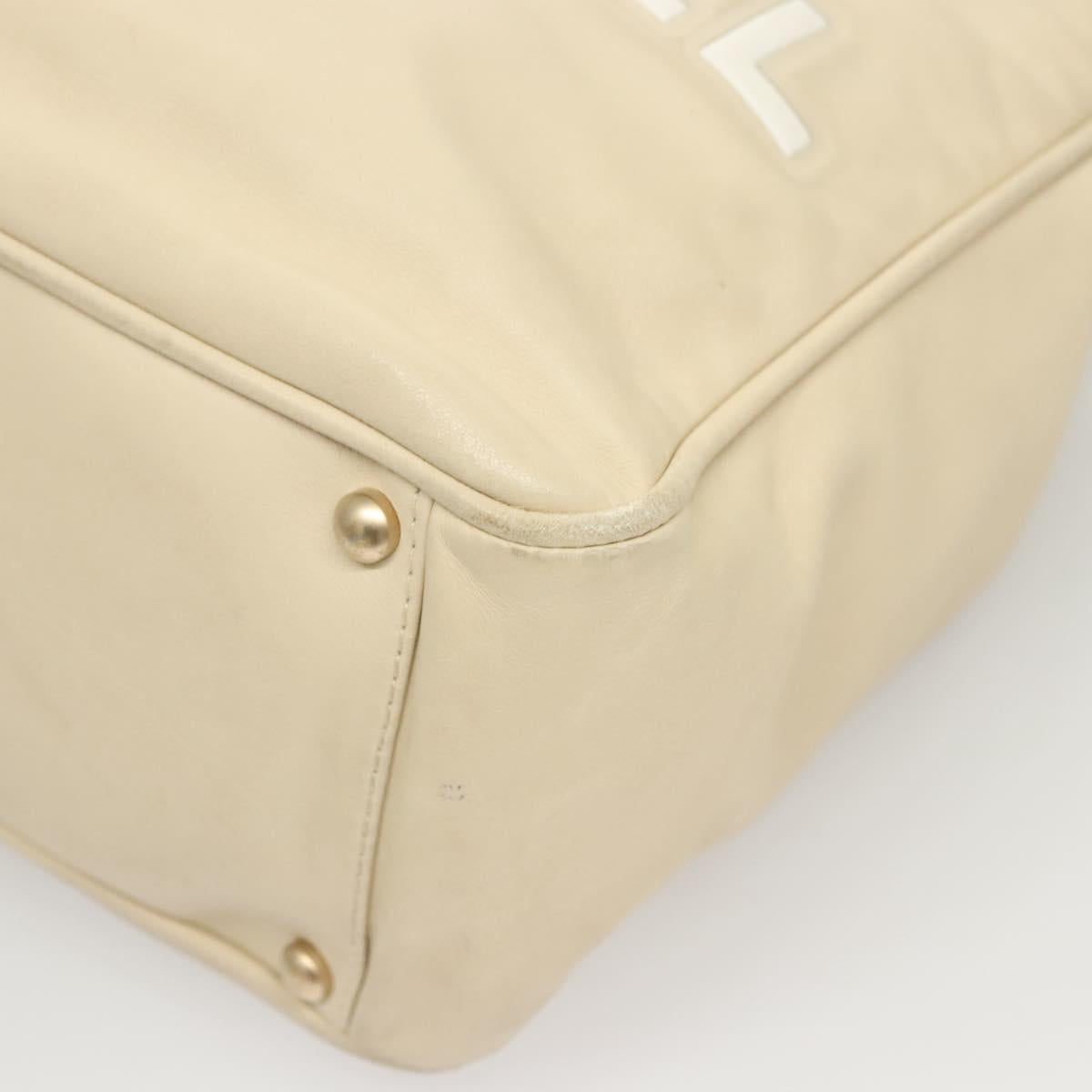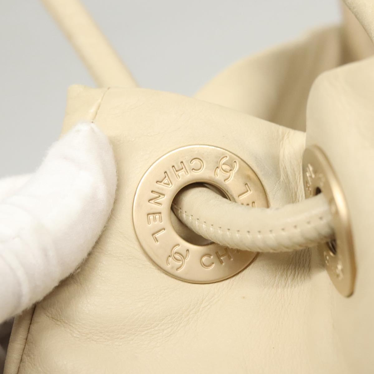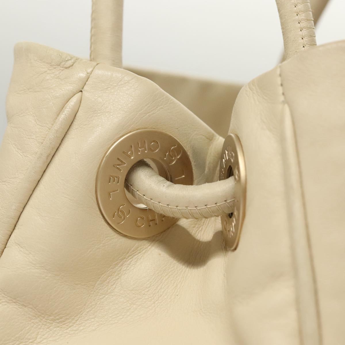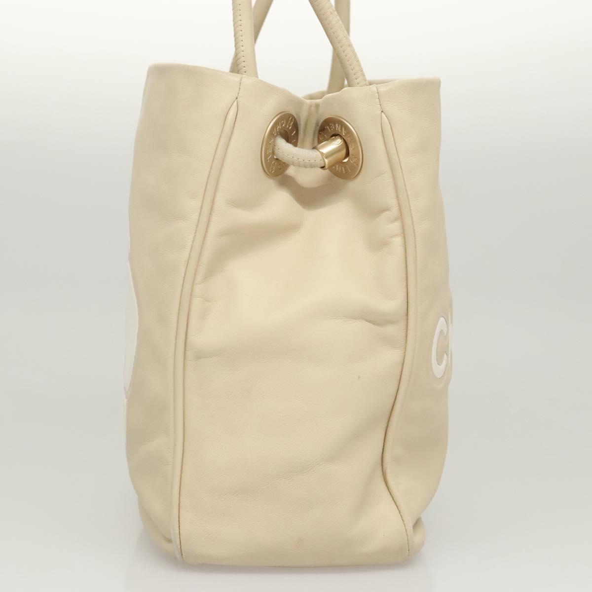 CHANEL Camelia COCO Mark Tote Bag Lamb Skin Beige CC Auth PP568V