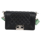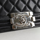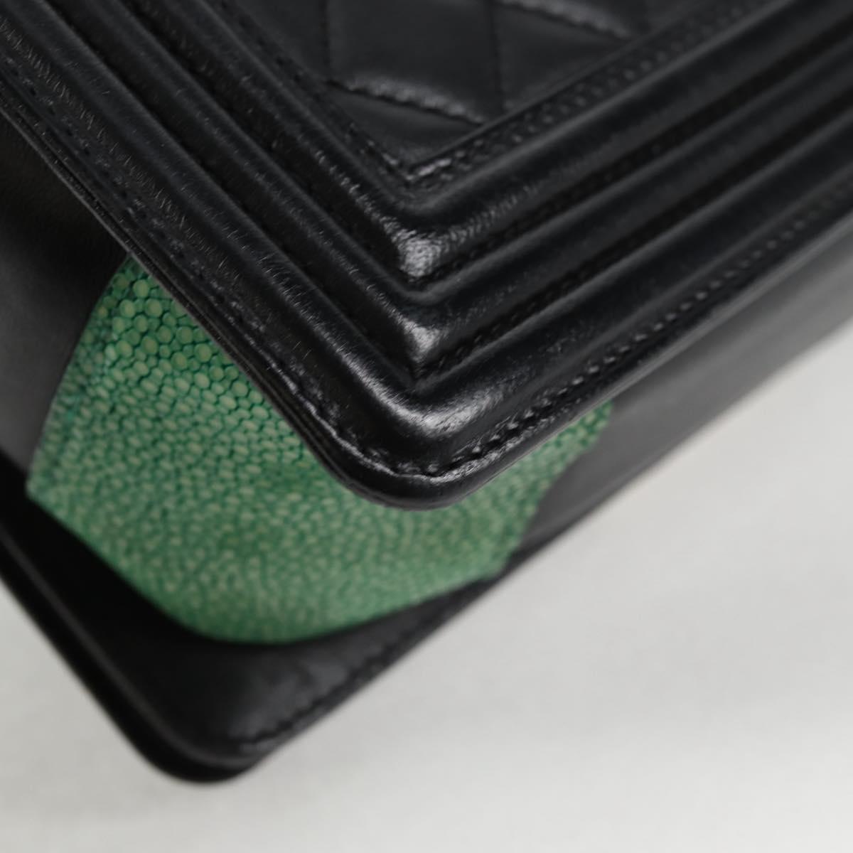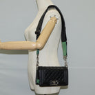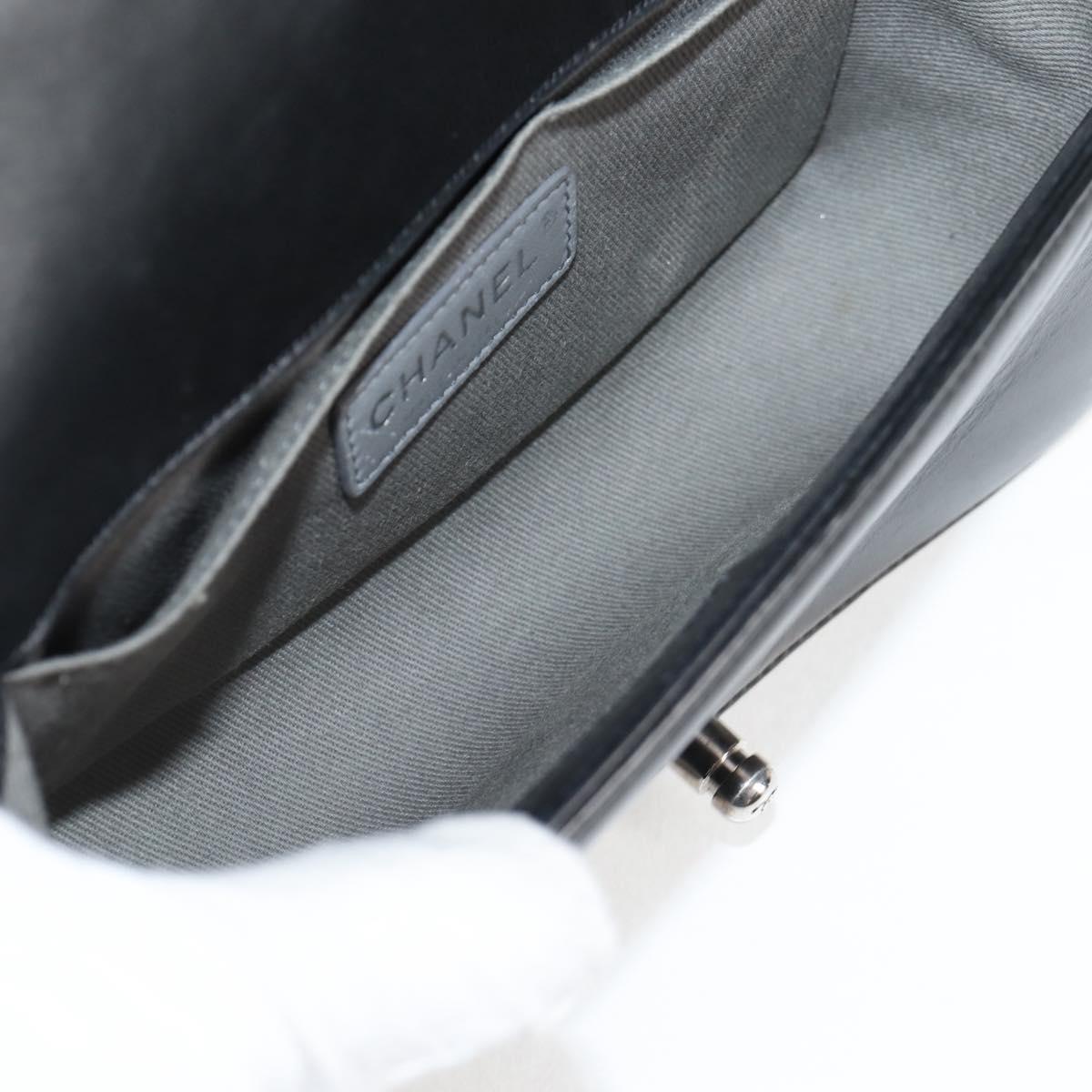 CHANEL Chain Boy Chanel Shoulder Bag Lamb Skin Black Silver CC Auth PP648M