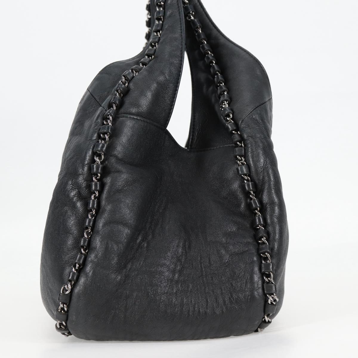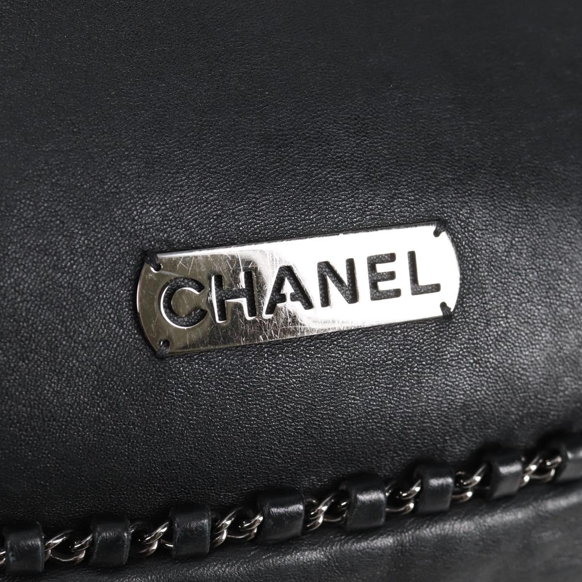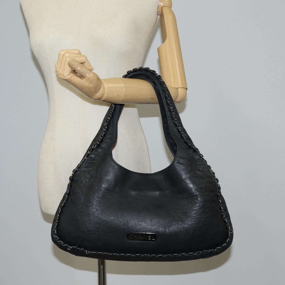CHANEL Chain Hand Bag Lamb Skin Black Gold CC Auth PP536V