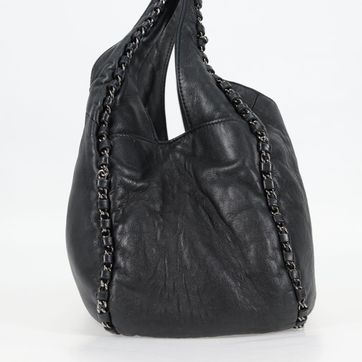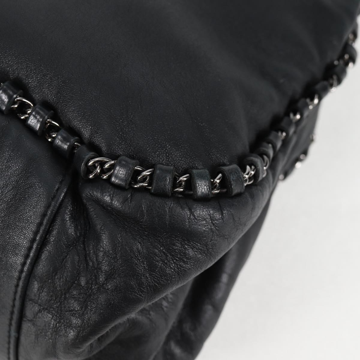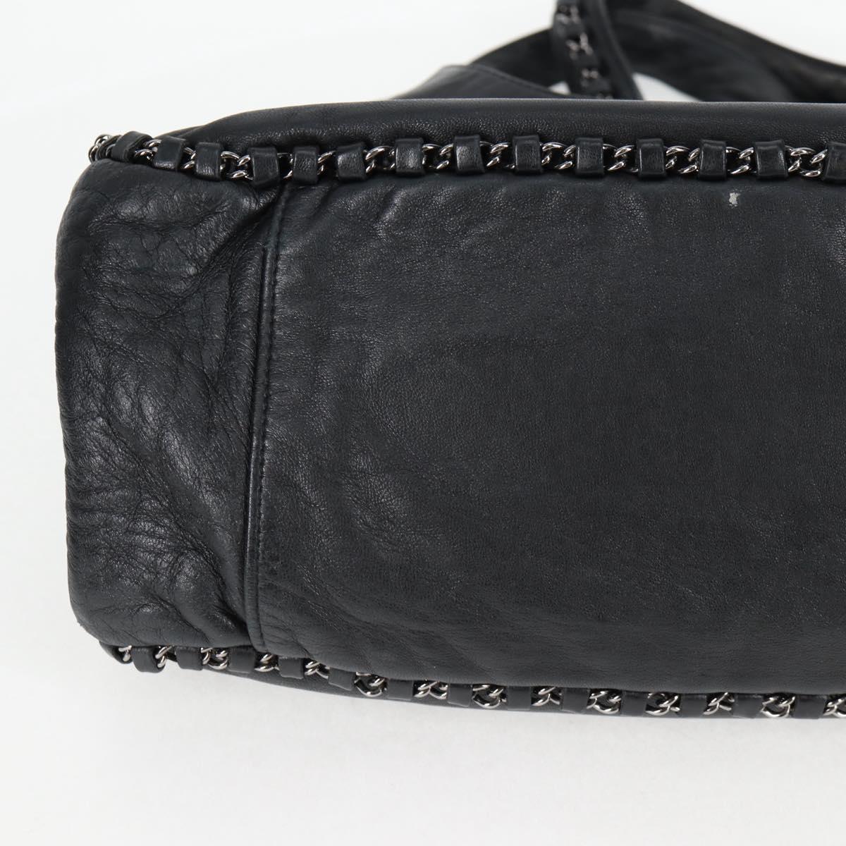 CHANEL Chain Hand Bag Lamb Skin Black Gold CC Auth PP536V