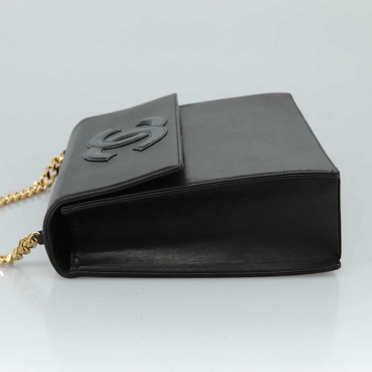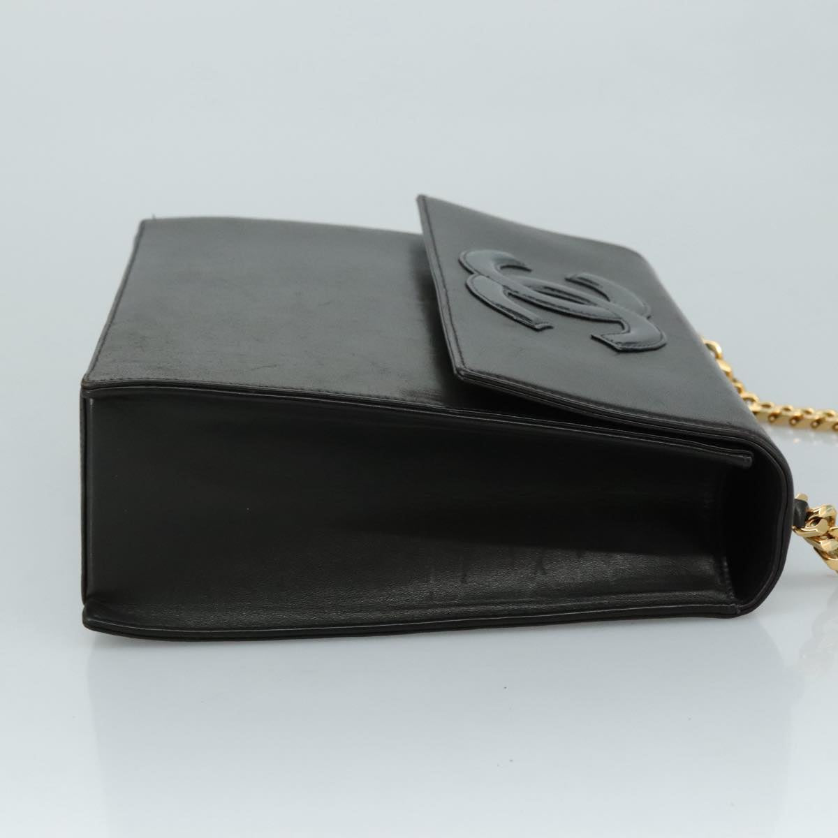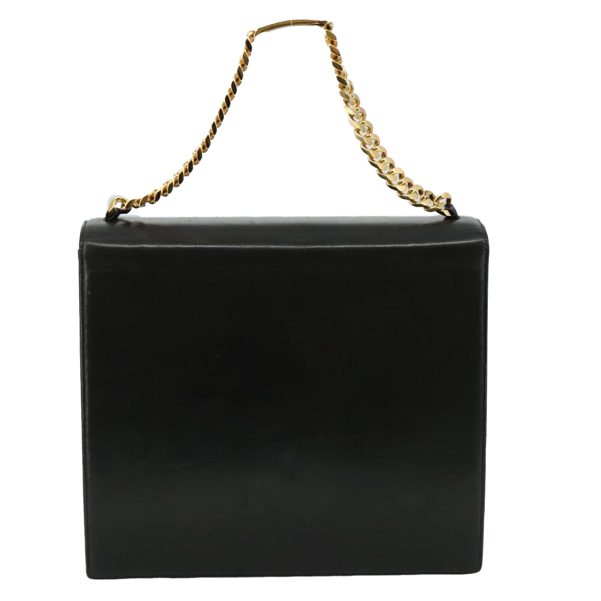 CHANEL Chain Hand Bag Leather Black Gold CC Auth PP125V