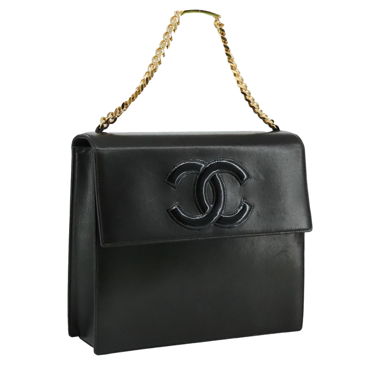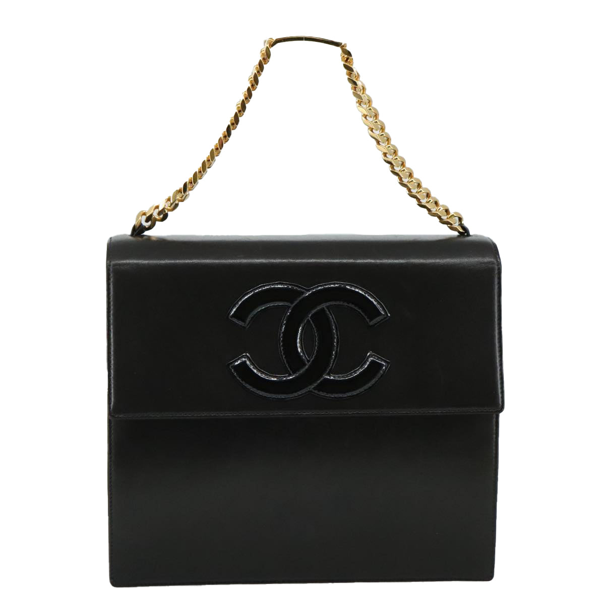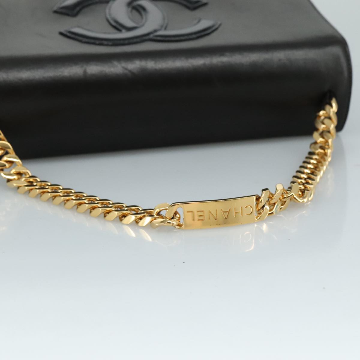 CHANEL Chain Hand Bag Leather Black Gold CC Auth PP125V